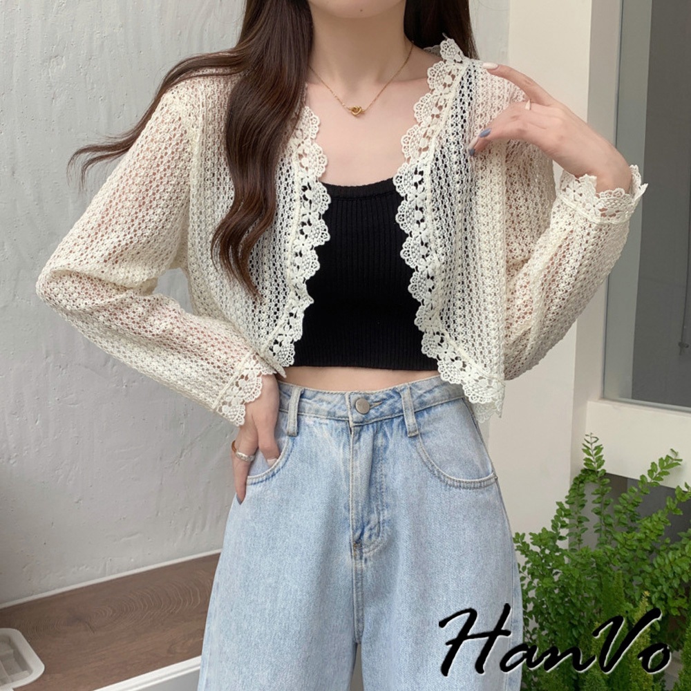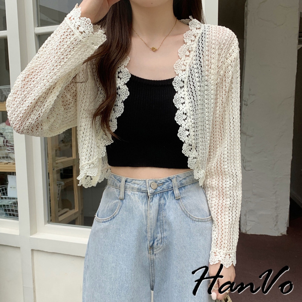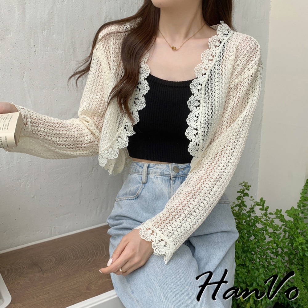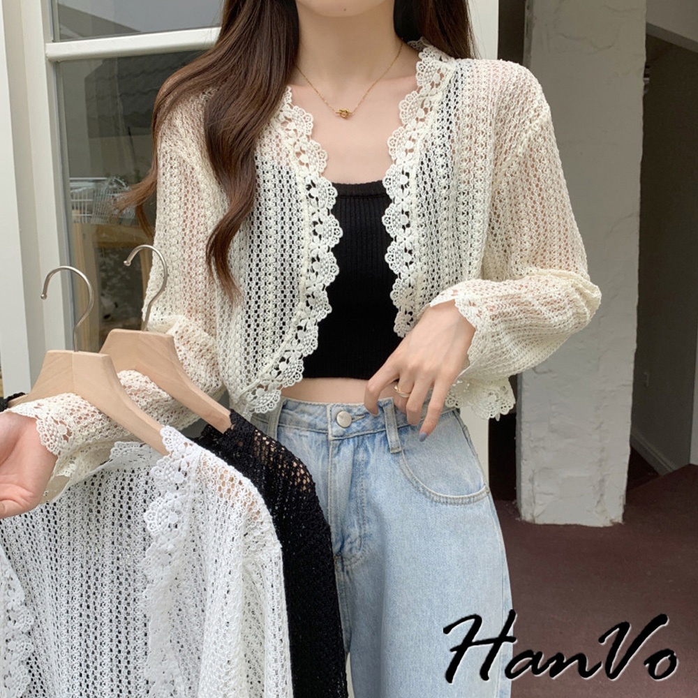 【HanVo】法式蕾絲防曬薄罩衫 氣質甜美溫柔小披肩 韓系女裝 女生衣著 A02-1963白色|米杏|黑色OthersHanVo Wear Collection
