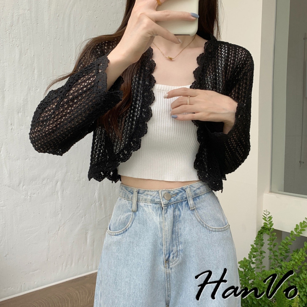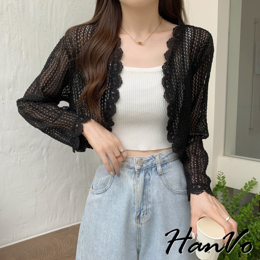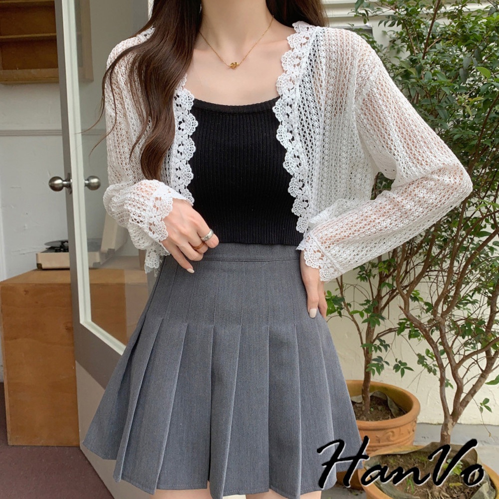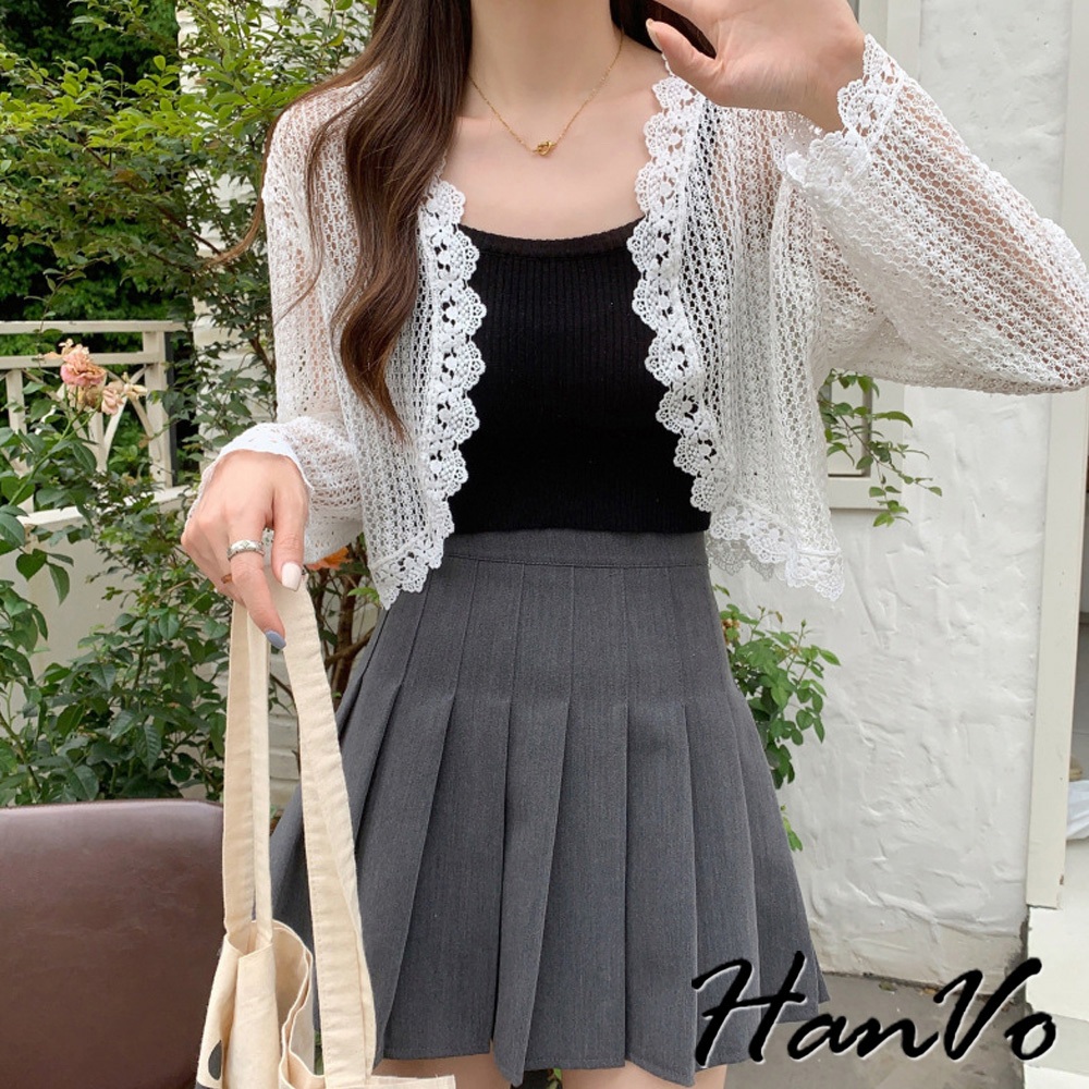 【HanVo】法式蕾絲防曬薄罩衫 氣質甜美溫柔小披肩 韓系女裝 女生衣著 A02-1963白色|米杏|黑色OthersHanVo Wear Collection