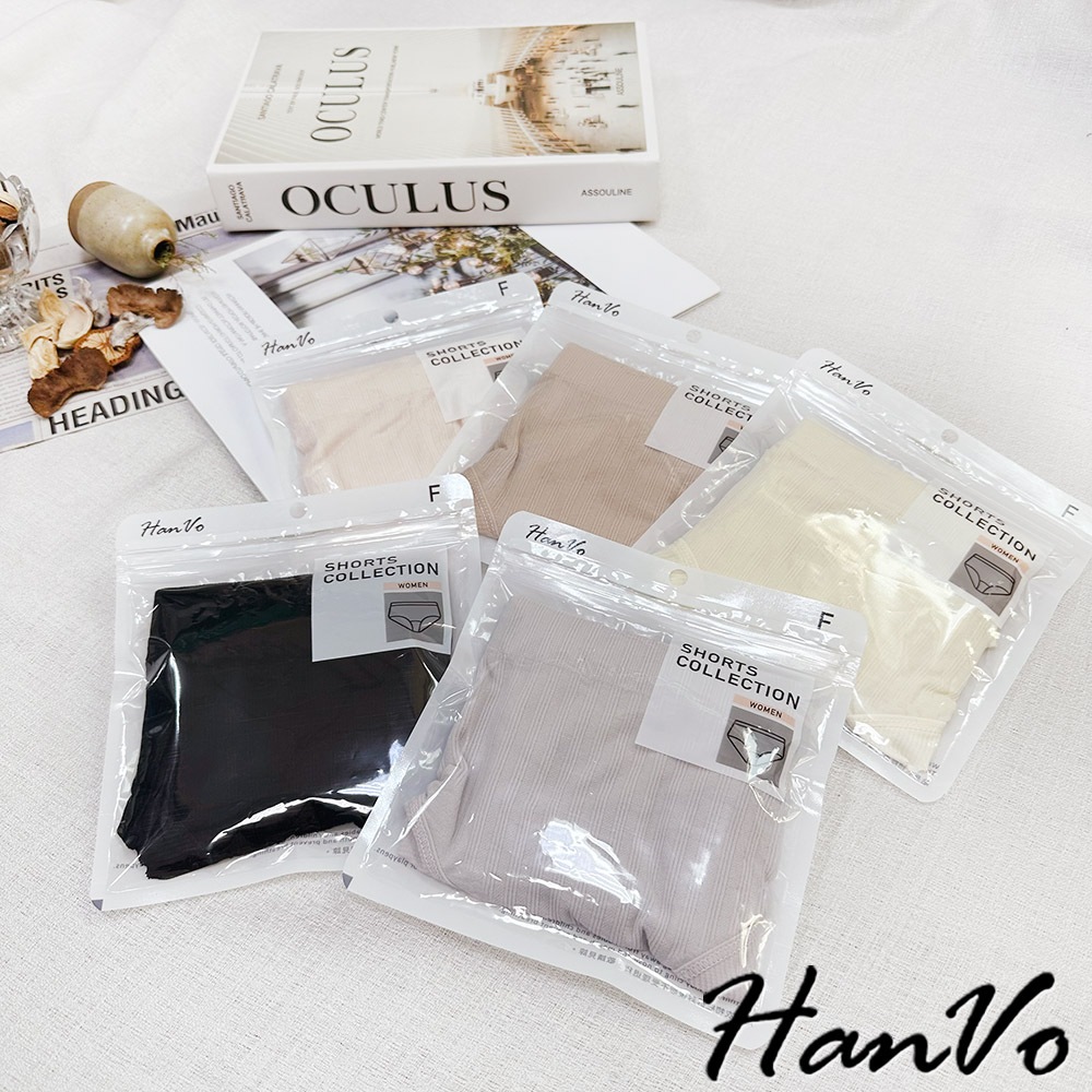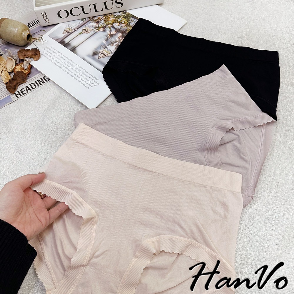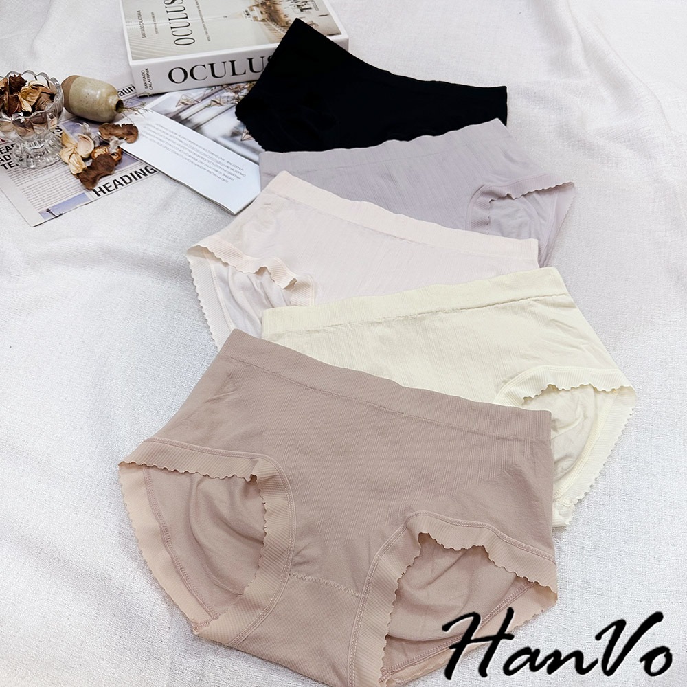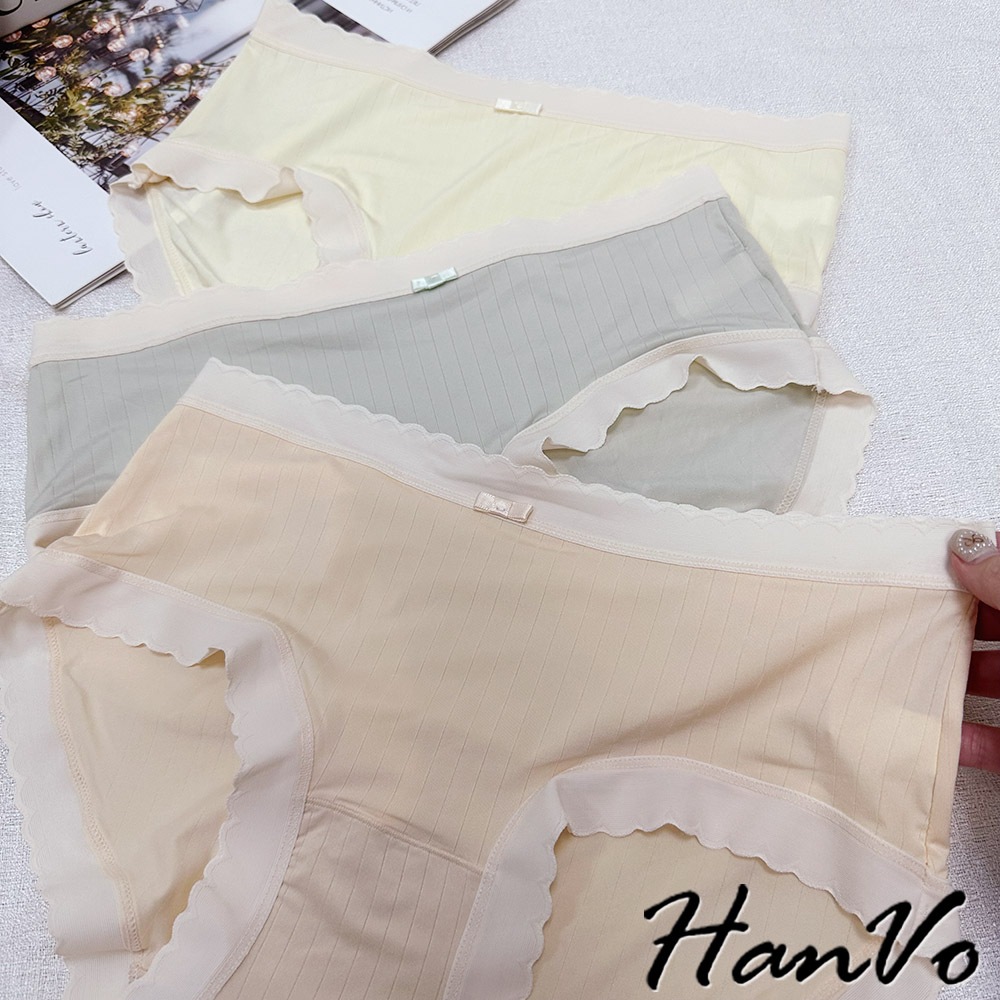 【HanVo】細直坑紋素色中腰內褲 3D臀包覆親膚柔軟舒適 透氣內褲 女生內褲 女內褲 內褲 A11-5836