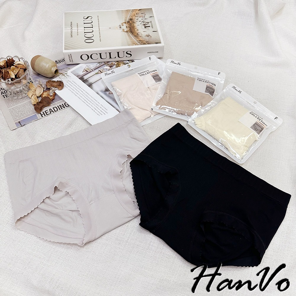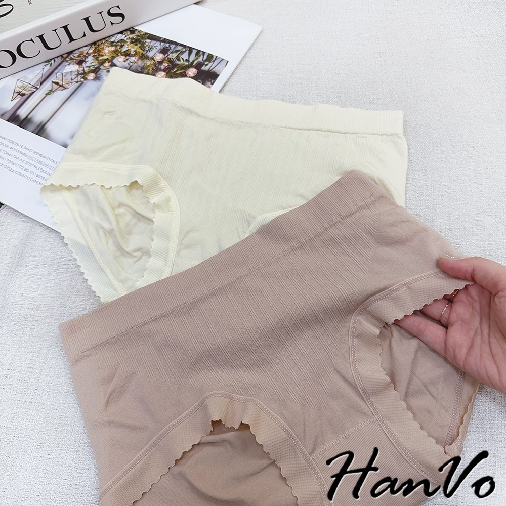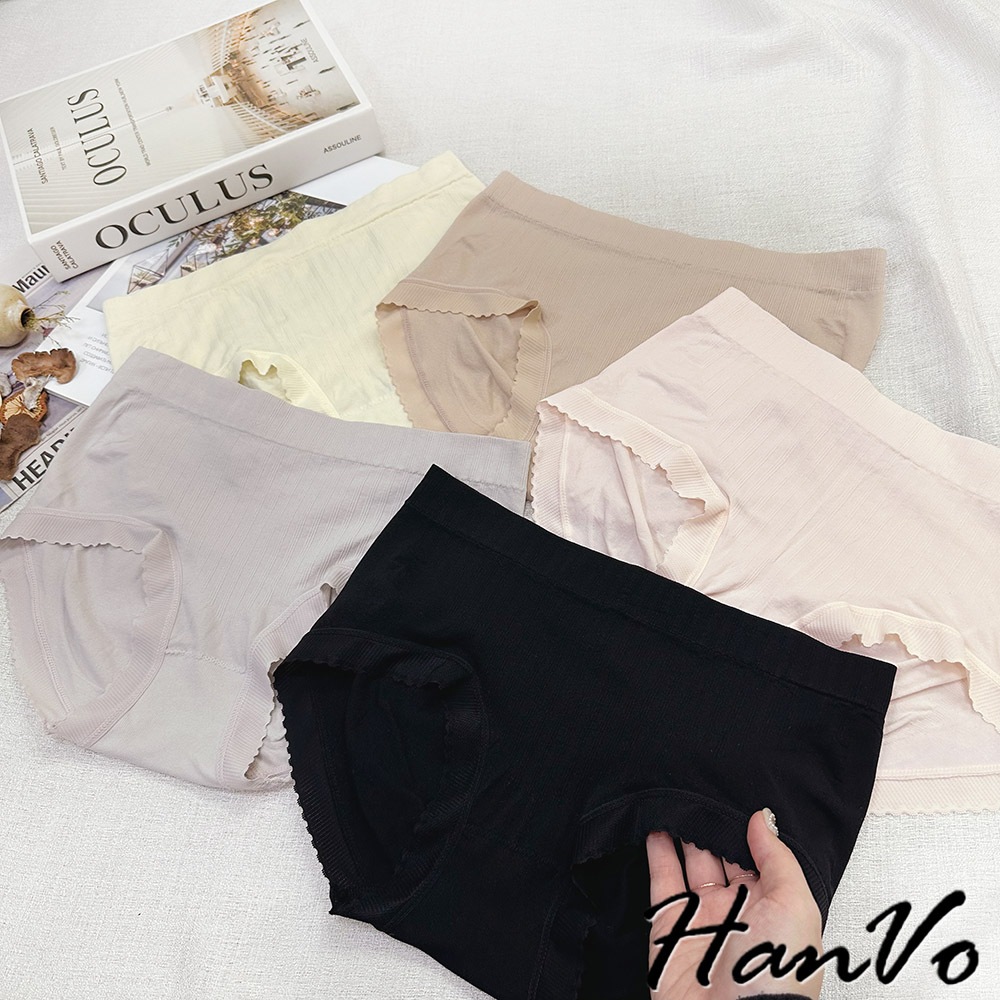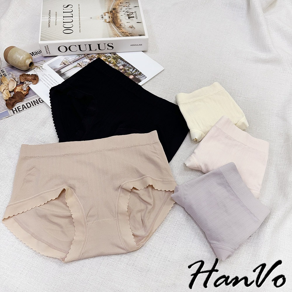 【HanVo】細直坑紋素色中腰內褲 3D臀包覆親膚柔軟舒適 透氣內褲 女生內褲 女內褲 內褲 A11-5836
