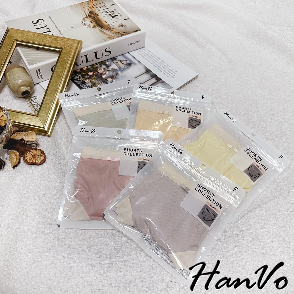【HanVo】細直坑紋素色中腰內褲 3D臀包覆親膚柔軟舒適 透氣內褲 女生內褲 女內褲 內褲 A11-5836霧粉橘|甜淡粉|森林黑|霧灰紫|奶油黃PantiesHanVo Wear Collection
