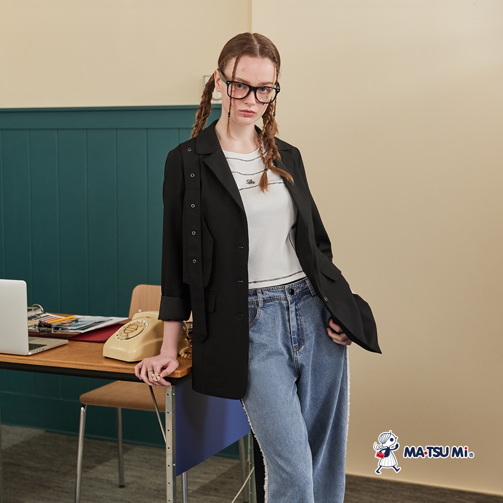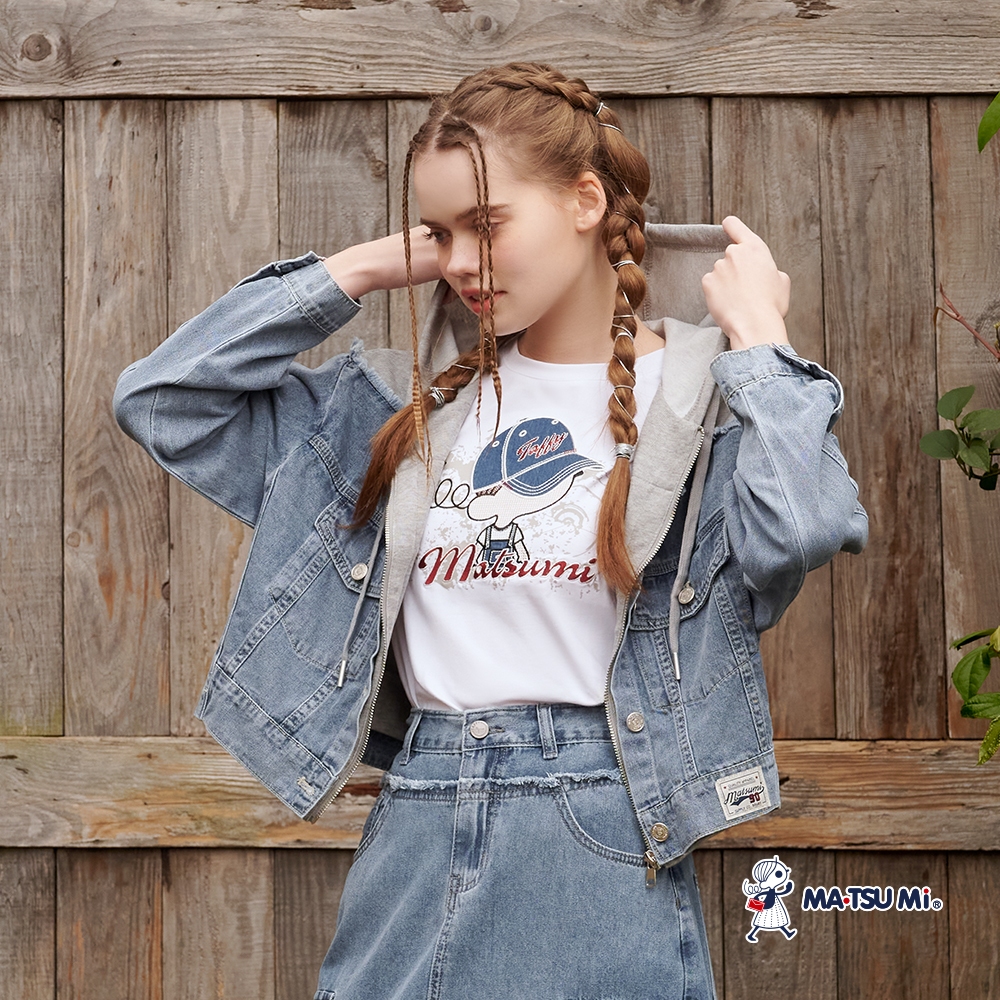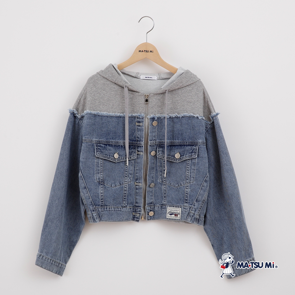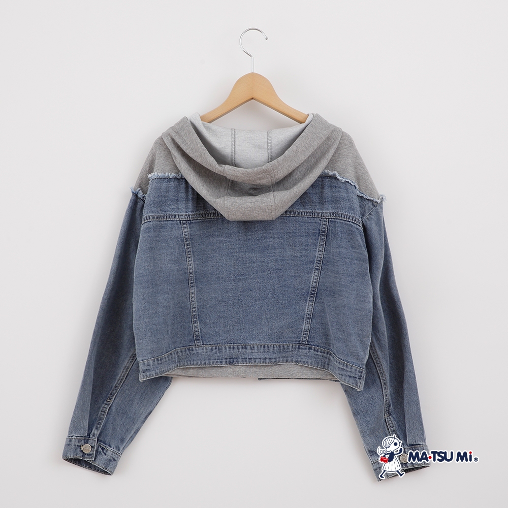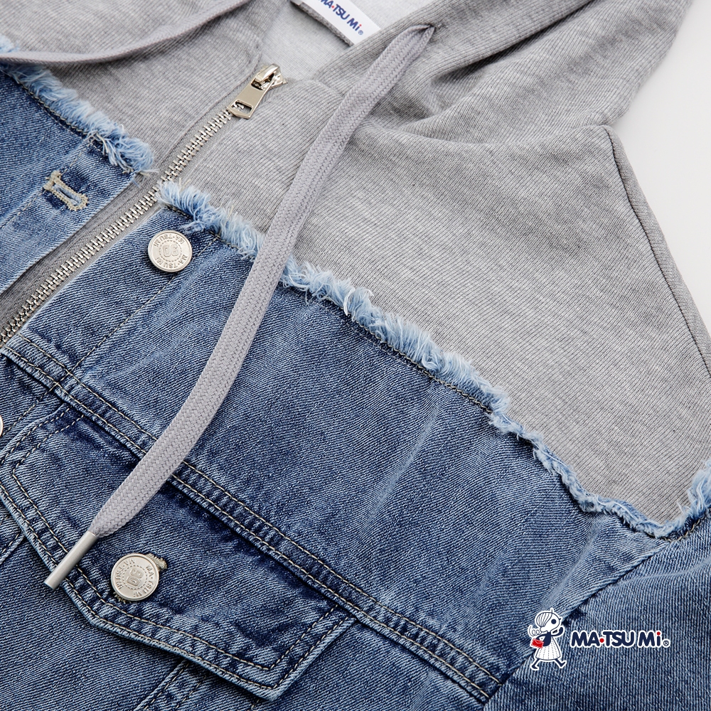 MA‧TSU Mi 連帽撞色拼接抽鬚牛仔外套(水藍)水藍,Free SizeJacketsMA•TSU Mi瑪之蜜官方旗艦店