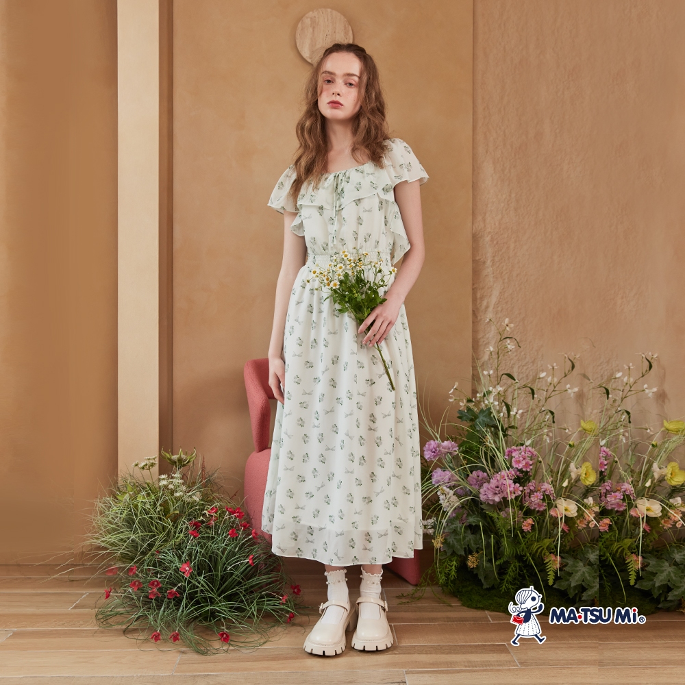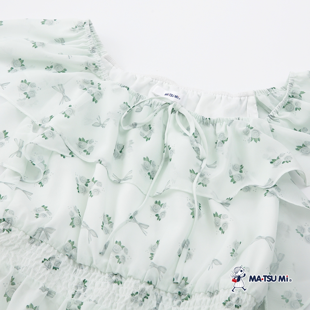 MA‧TSU Mi 浪漫感花束與蝴蝶結雪紡荷葉洋裝(草綠)草綠,S|草綠,M|草綠,LMA•TSU Mi瑪之蜜官方旗艦店