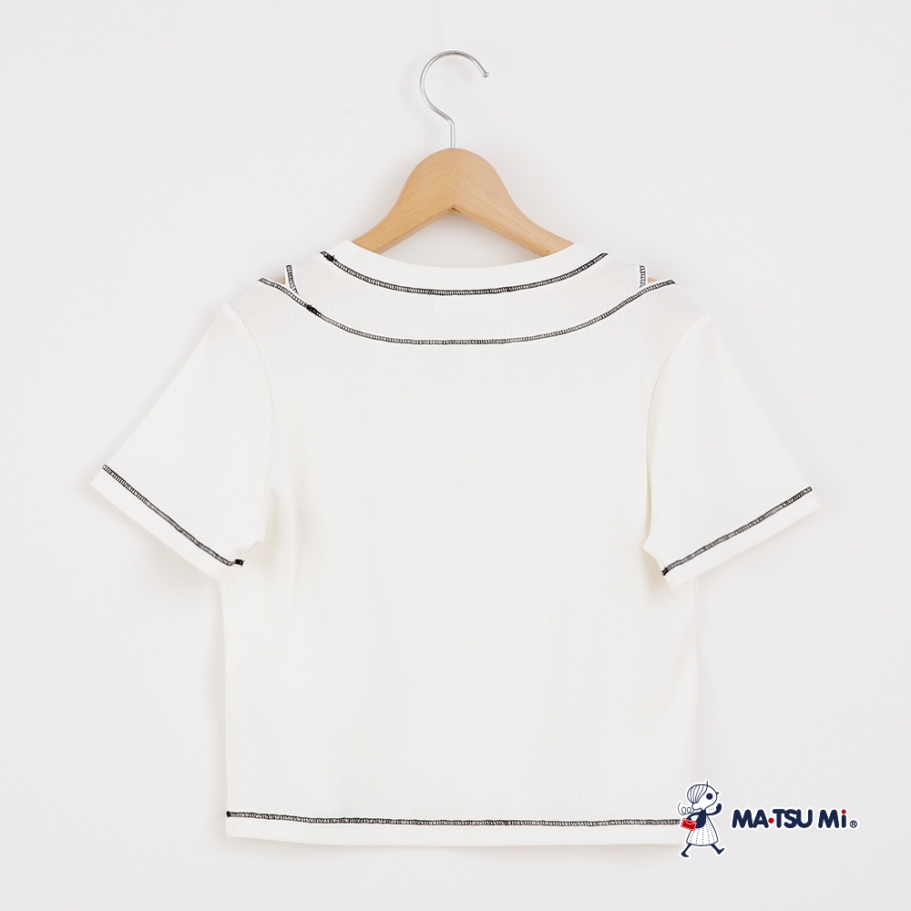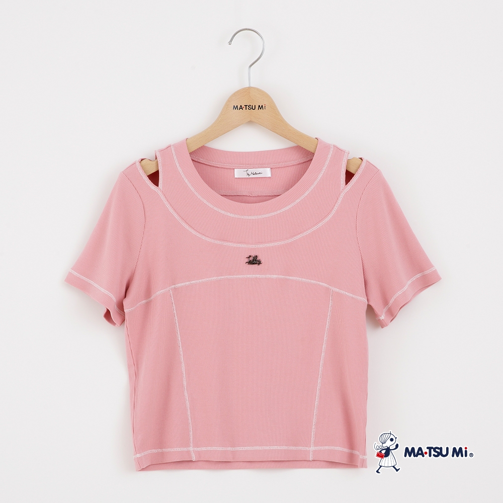 MA‧TSU Mi 品牌logo挖洞明線設計短袖上衣(白.粉紅)白,S|白,M|白,L|粉紅,S|粉紅,M|粉紅,LT-shirtsMA•TSU Mi瑪之蜜官方旗艦店