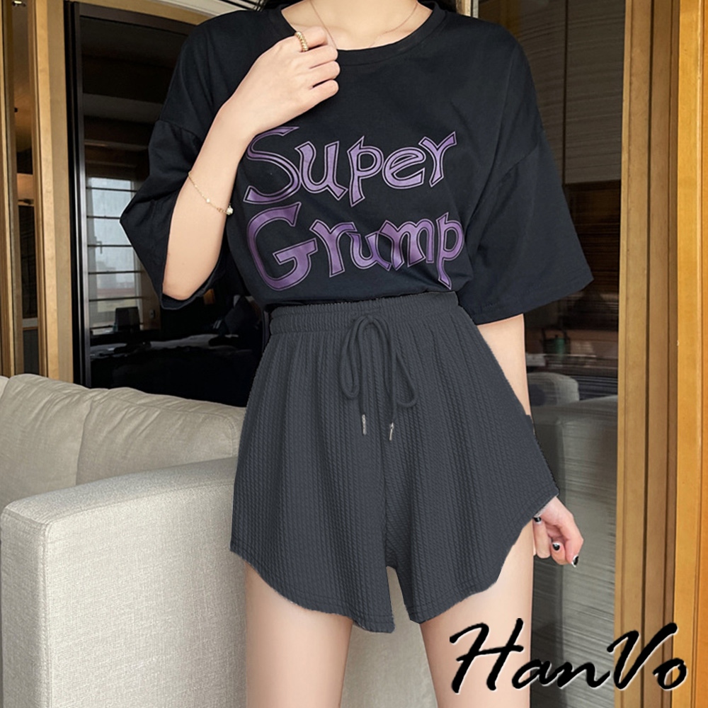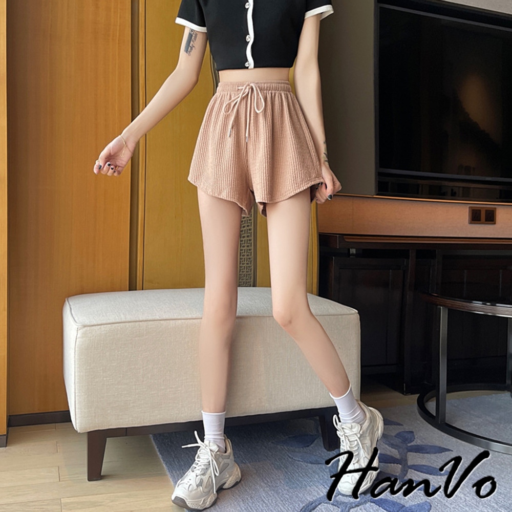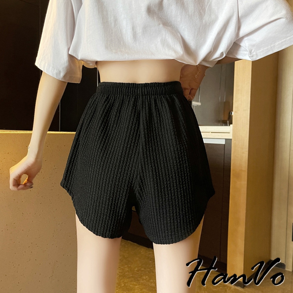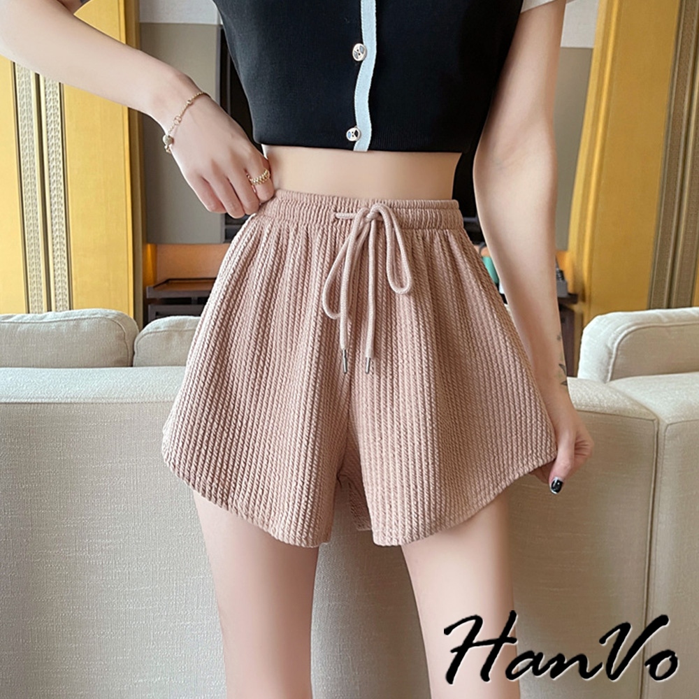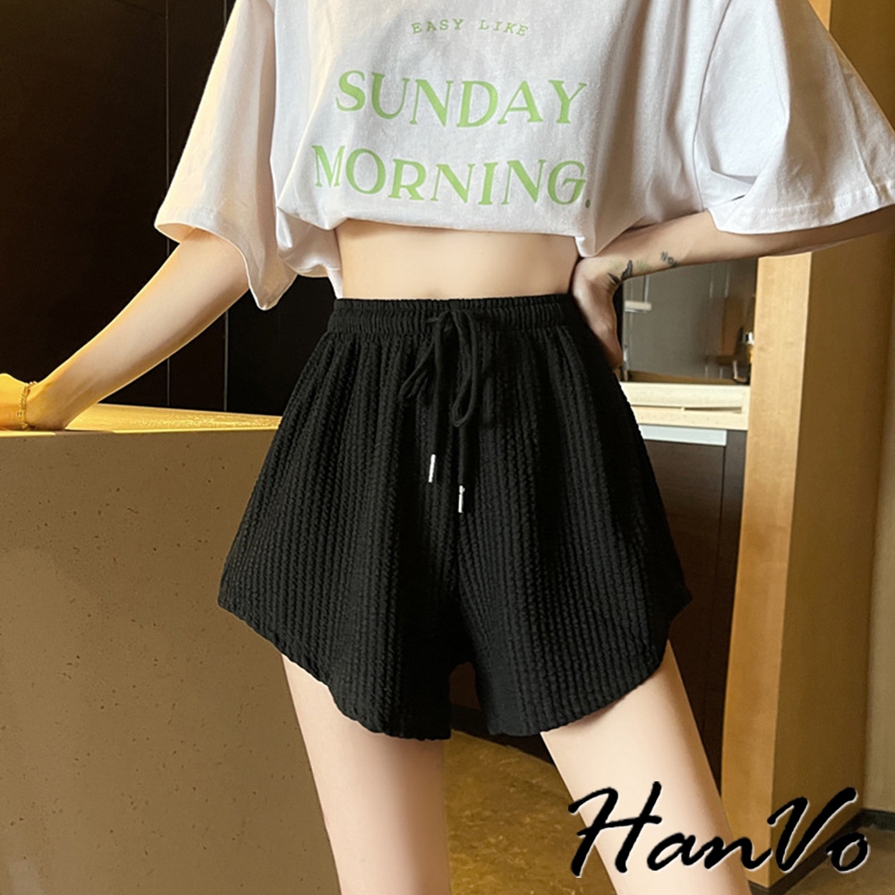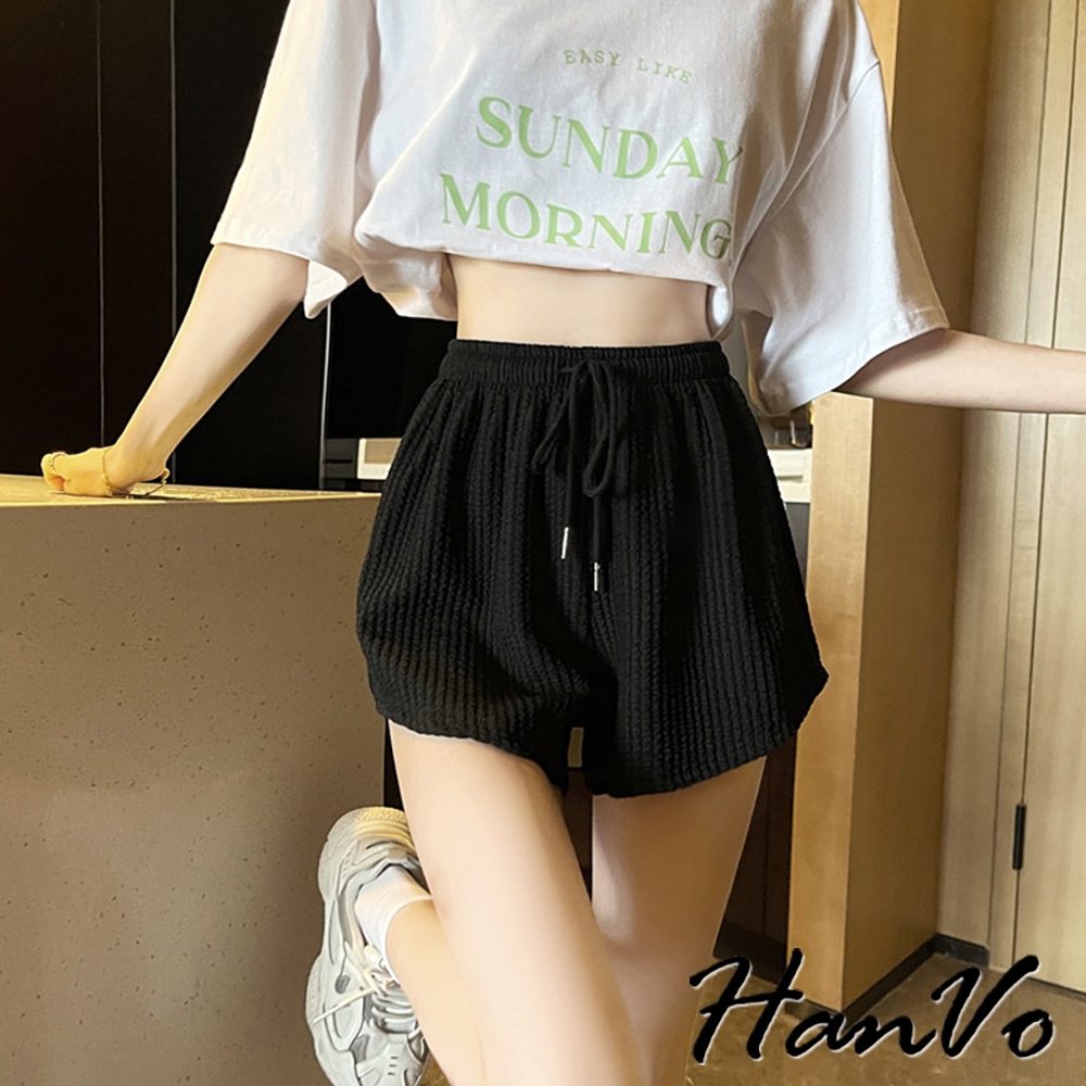 【HanVo】華夫格抽繩A字休閒短褲 透氣簡約百搭夏季短褲 韓系女裝 女生下著 A03-2087灰色,M|灰色,L|灰色,XL|粉膚,M|粉膚,L|粉膚,XL|黑色,M|黑色,L|黑色,XLShortsHanVo Wear Collection