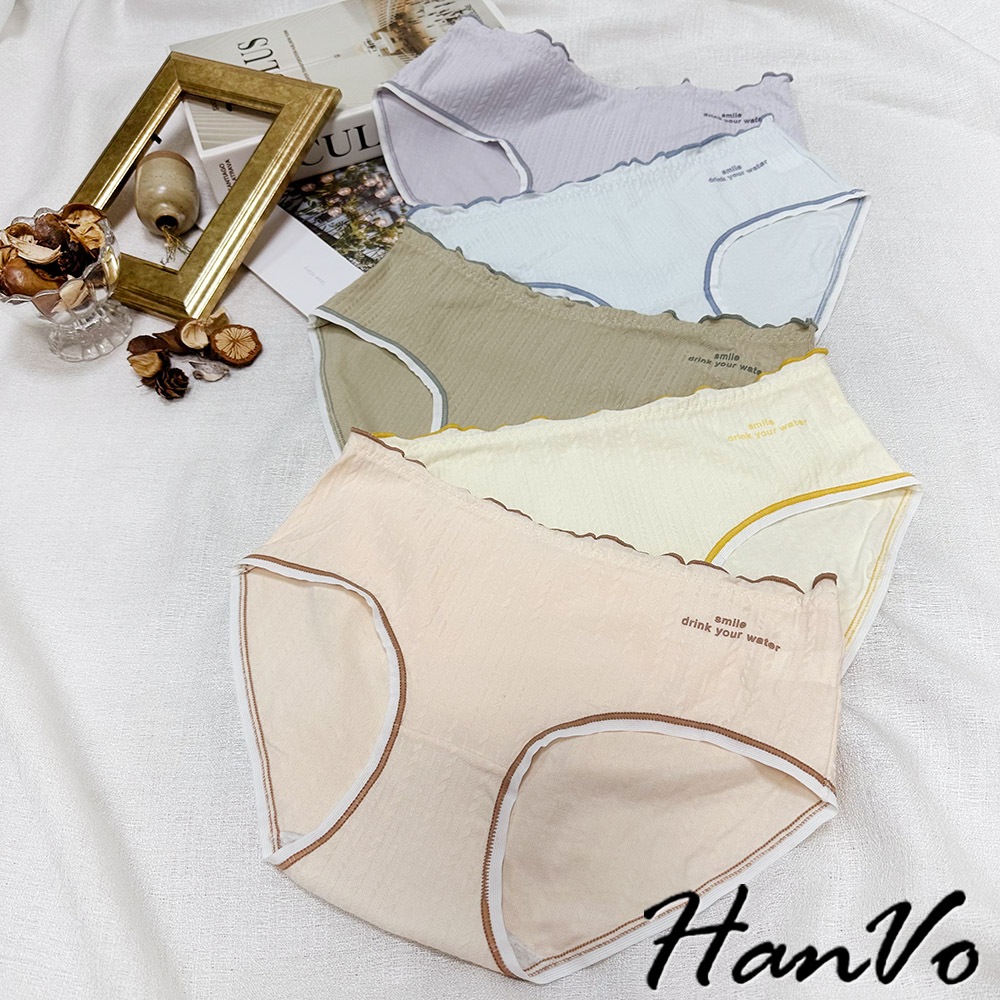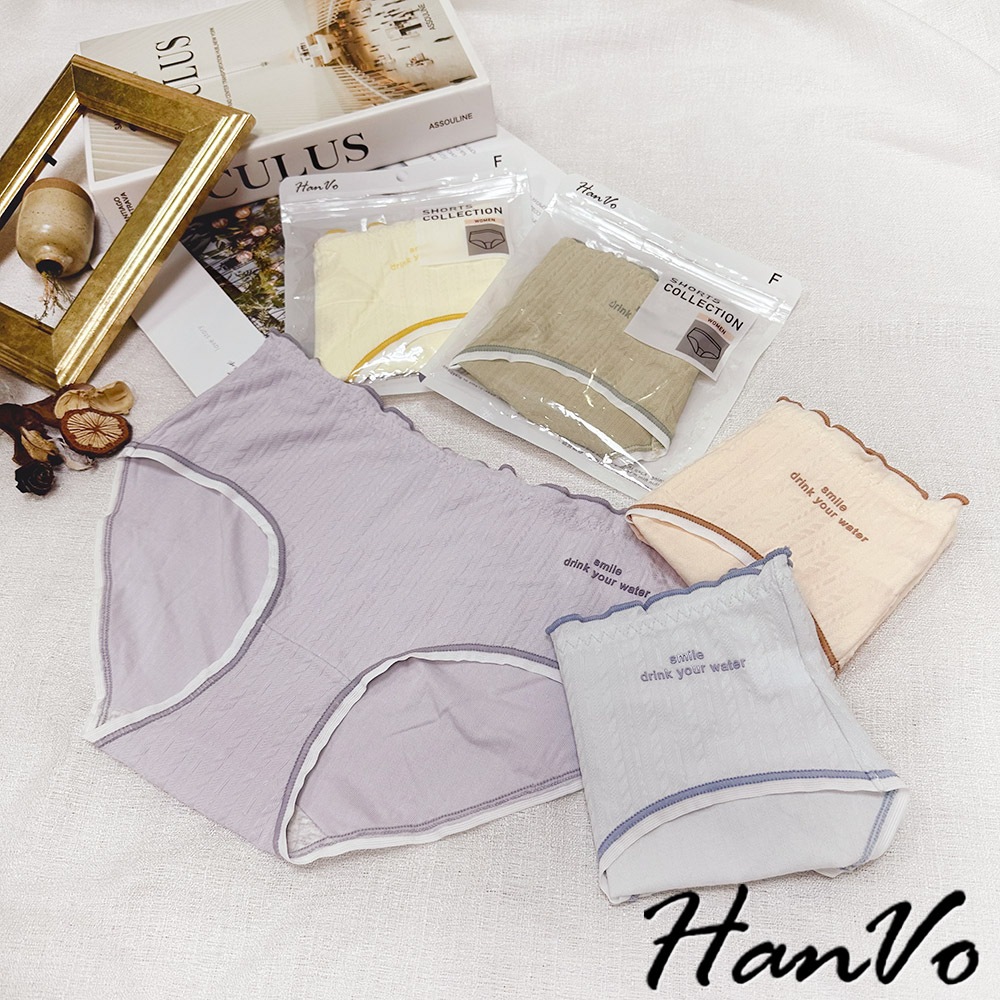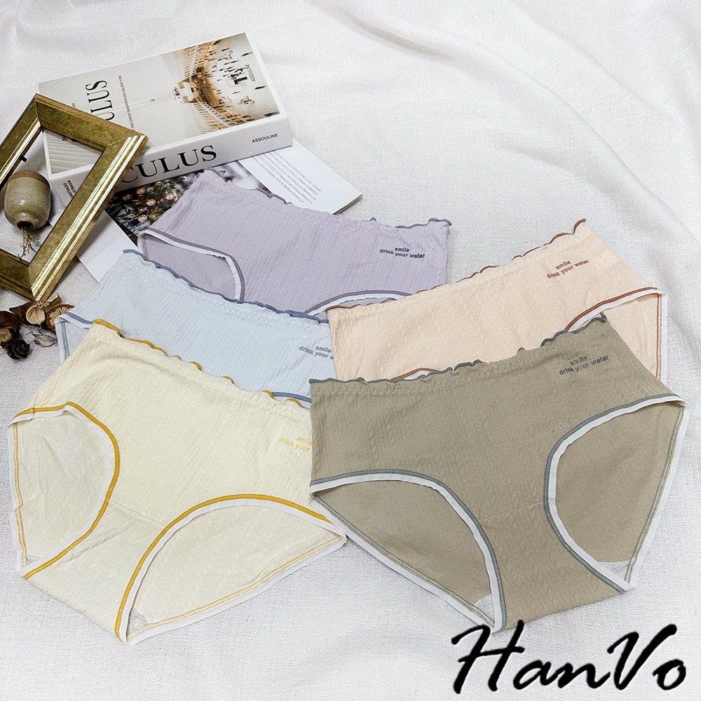 【HanVo】側邊字母木耳邊壓紋內褲 獨立包裝 中腰 親膚柔軟舒適透氣 流行少女內褲 內著 A11-5848天空藍|豆沙綠|甜粉橘|丁香紫|蜂蜜黃PantiesHanVo Wear Collection