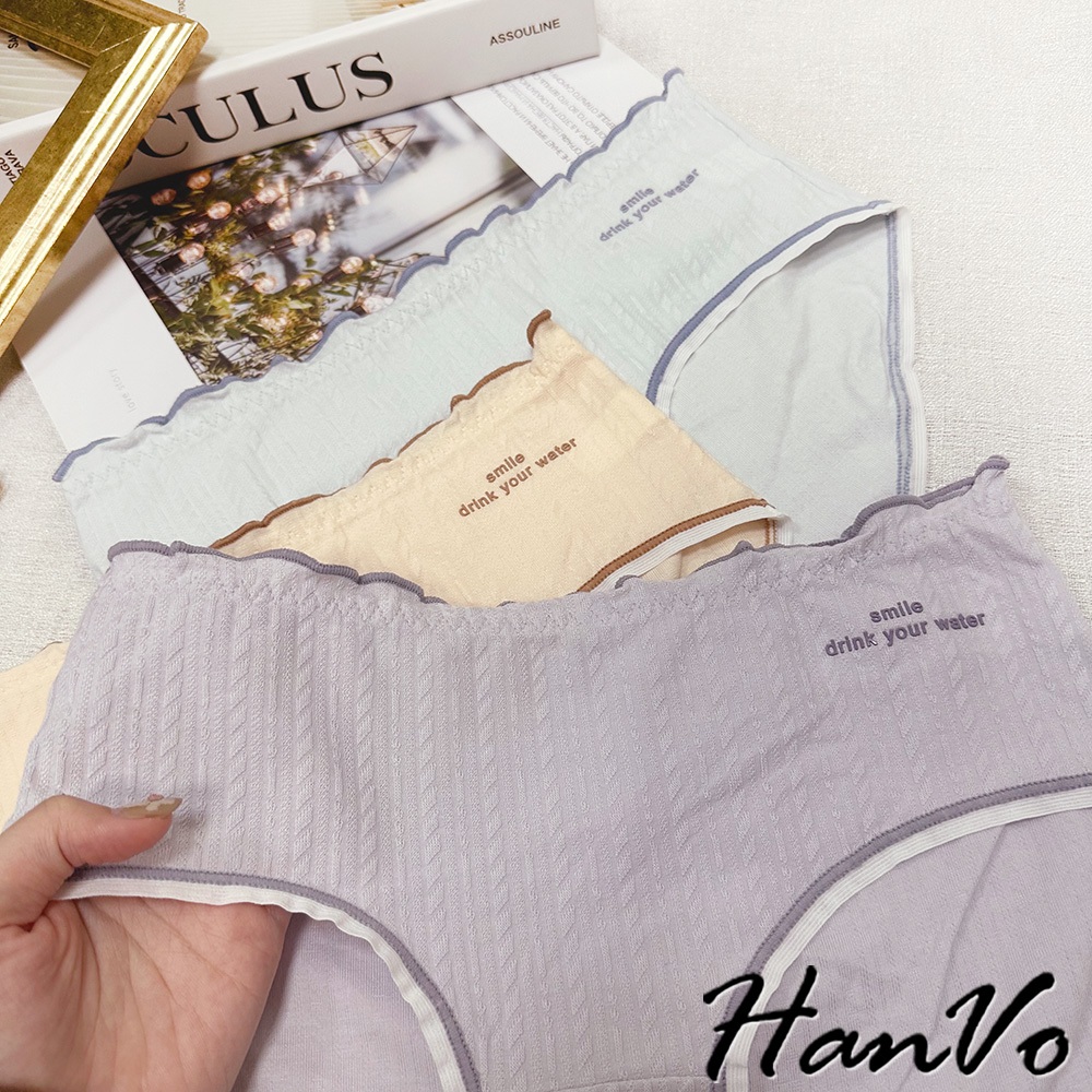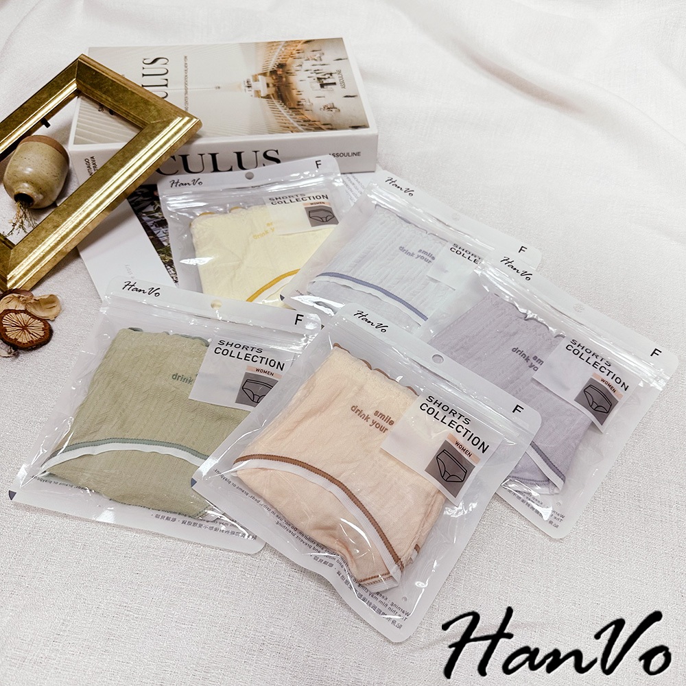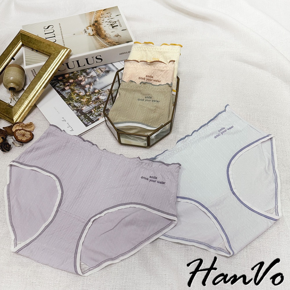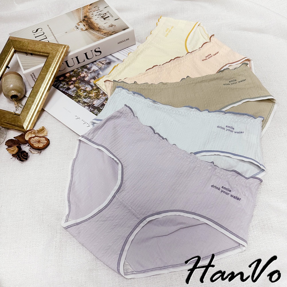 【HanVo】側邊字母木耳邊壓紋內褲 獨立包裝 中腰 親膚柔軟舒適透氣 流行少女內褲 內著 A11-5848天空藍|豆沙綠|甜粉橘|丁香紫|蜂蜜黃PantiesHanVo Wear Collection