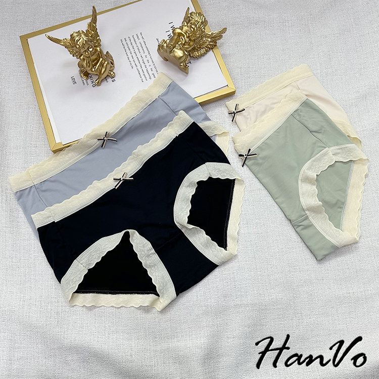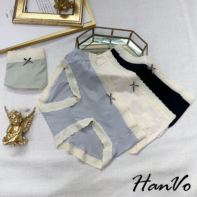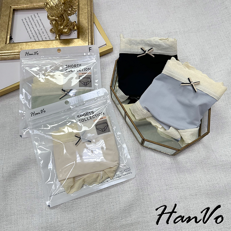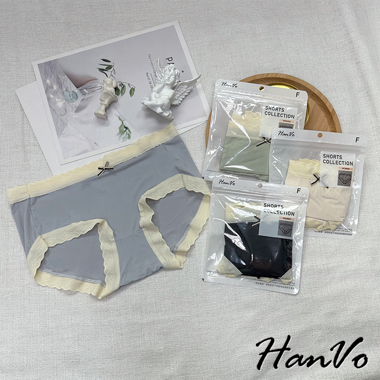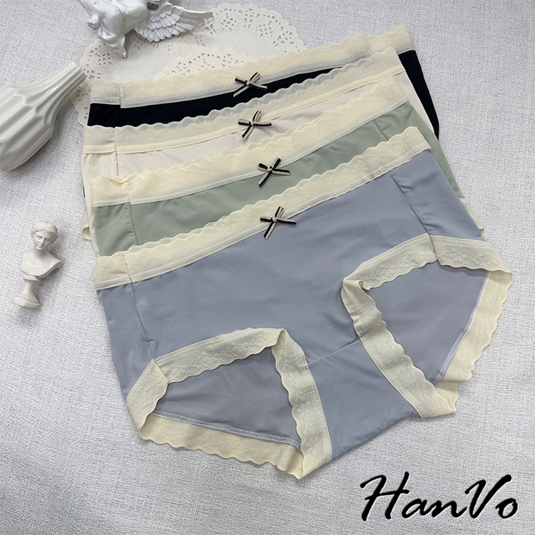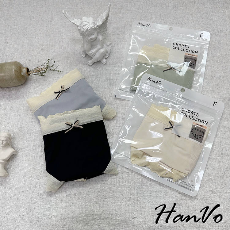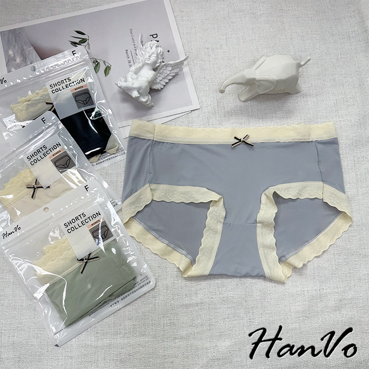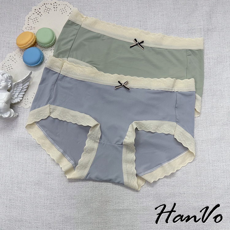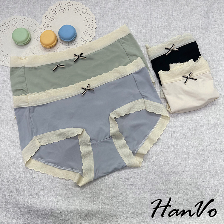 【HanVo】莫蘭迪色調涼感透氣內褲 舒適柔軟親膚冰絲三角褲 中腰 獨立包裝 流行少女內褲 內著 A11-5686米膚PantiesHanVo Wear Collection