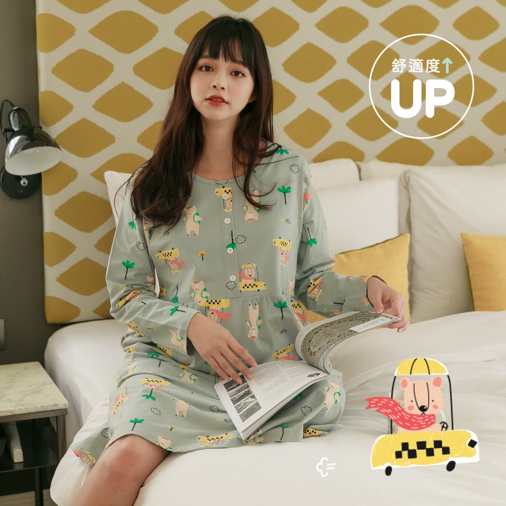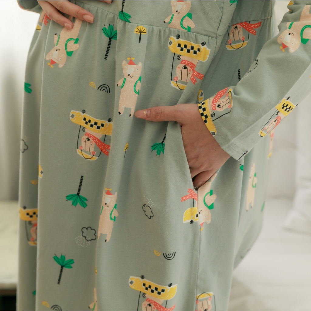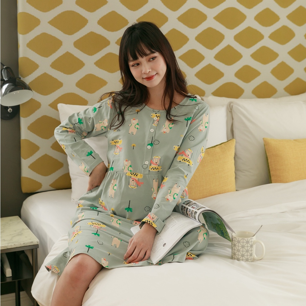 Mamamia孕婦裝 旅行熊熊哺乳睡衣 M~XL 哺乳洋裝 連衣裙 短袖 哺乳衣 月子服 孕婦裝 [A1656]M|L|XLBreastfeeding WearMamamia孕婦裝