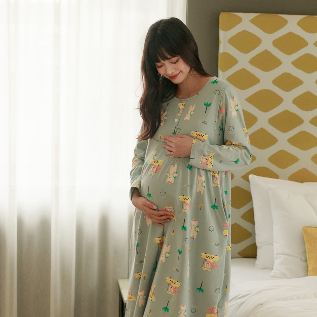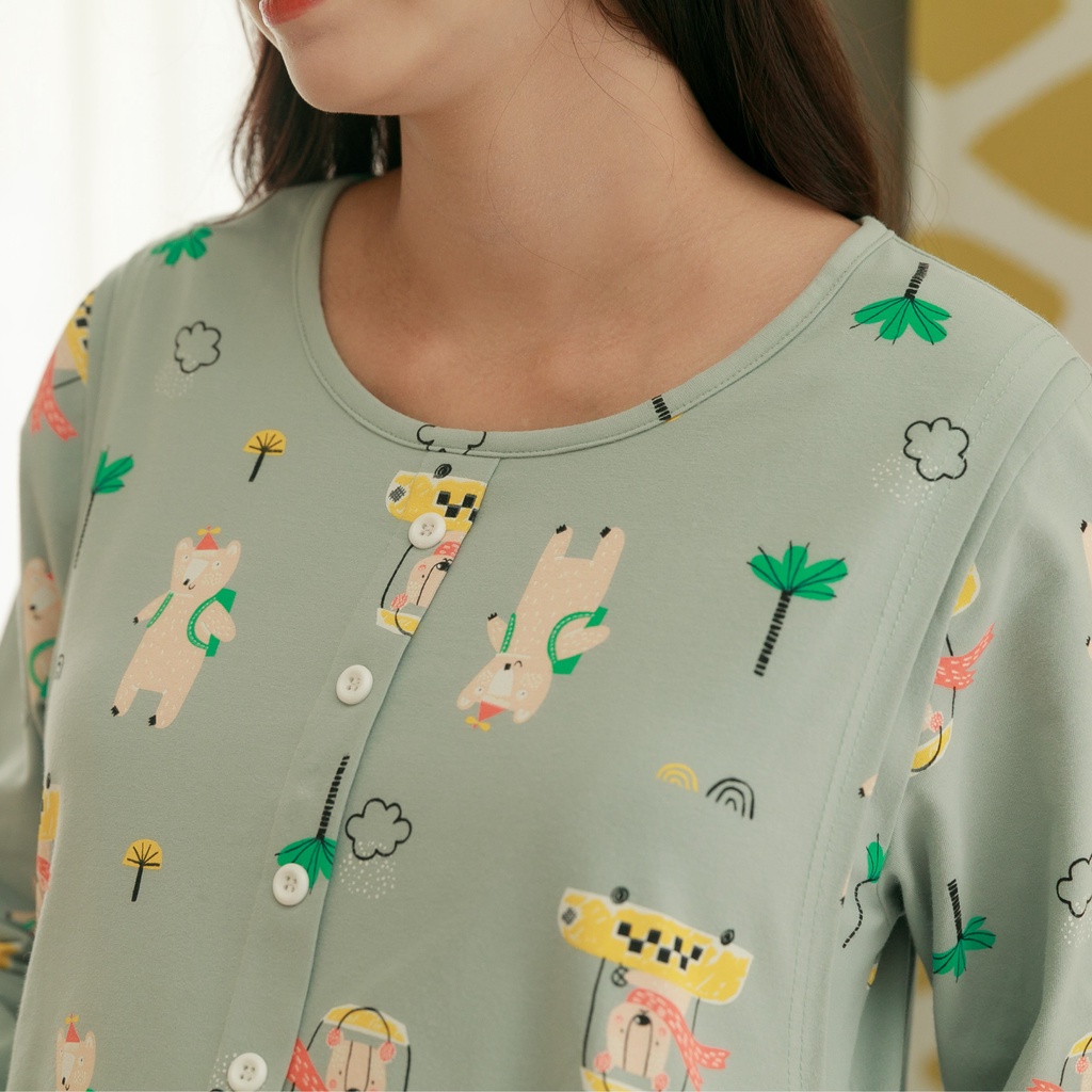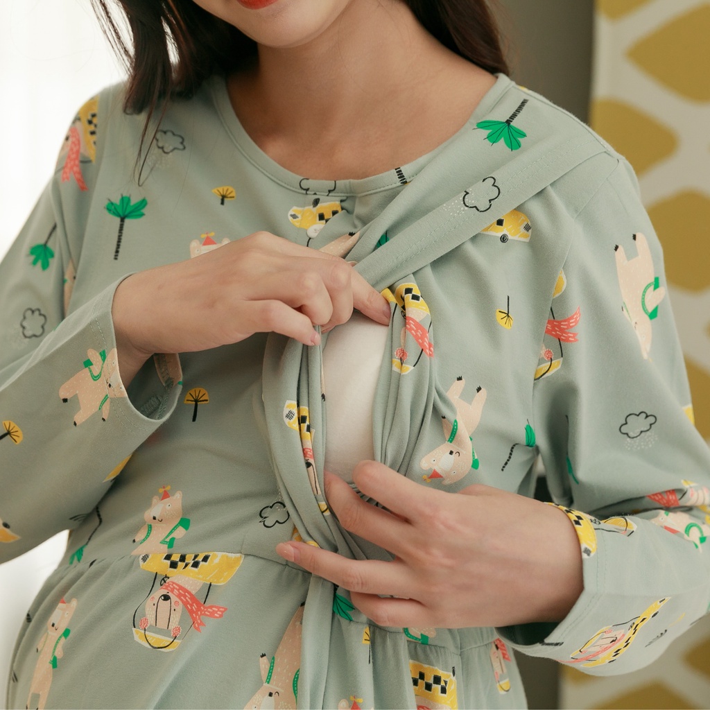 Mamamia孕婦裝 旅行熊熊哺乳睡衣 M~XL 哺乳洋裝 連衣裙 短袖 哺乳衣 月子服 孕婦裝 [A1656]M|L|XLBreastfeeding WearMamamia孕婦裝