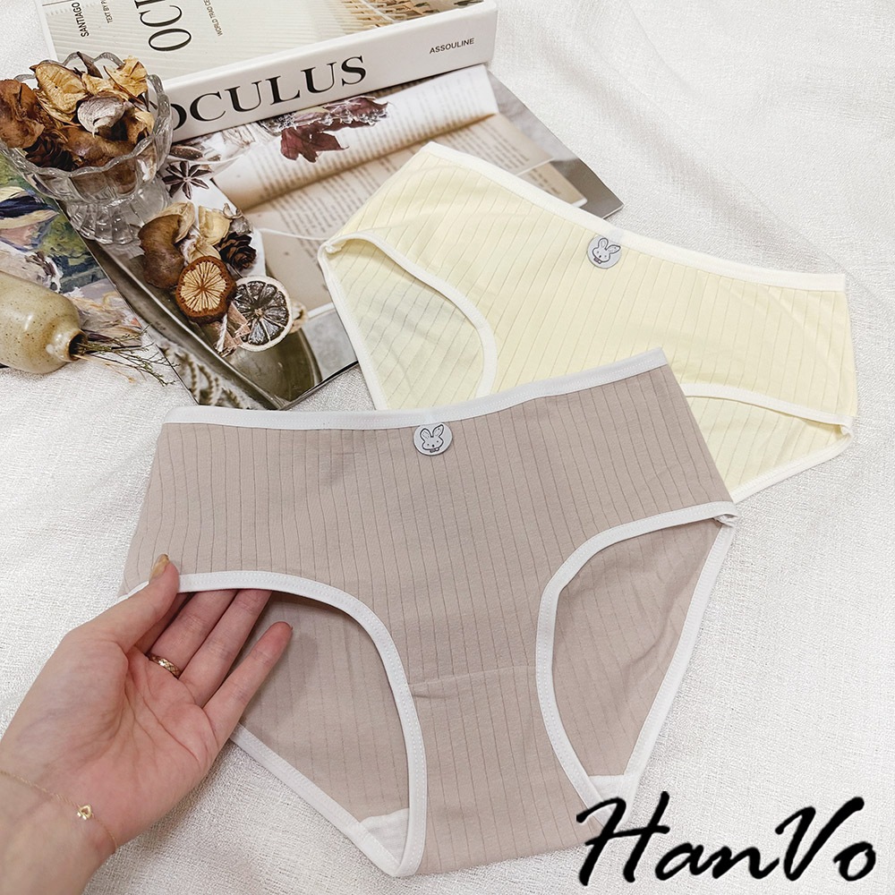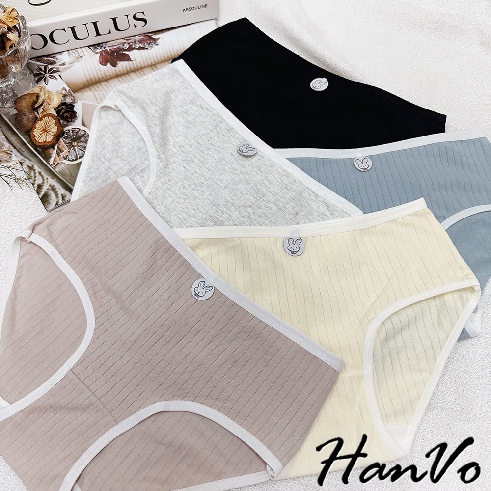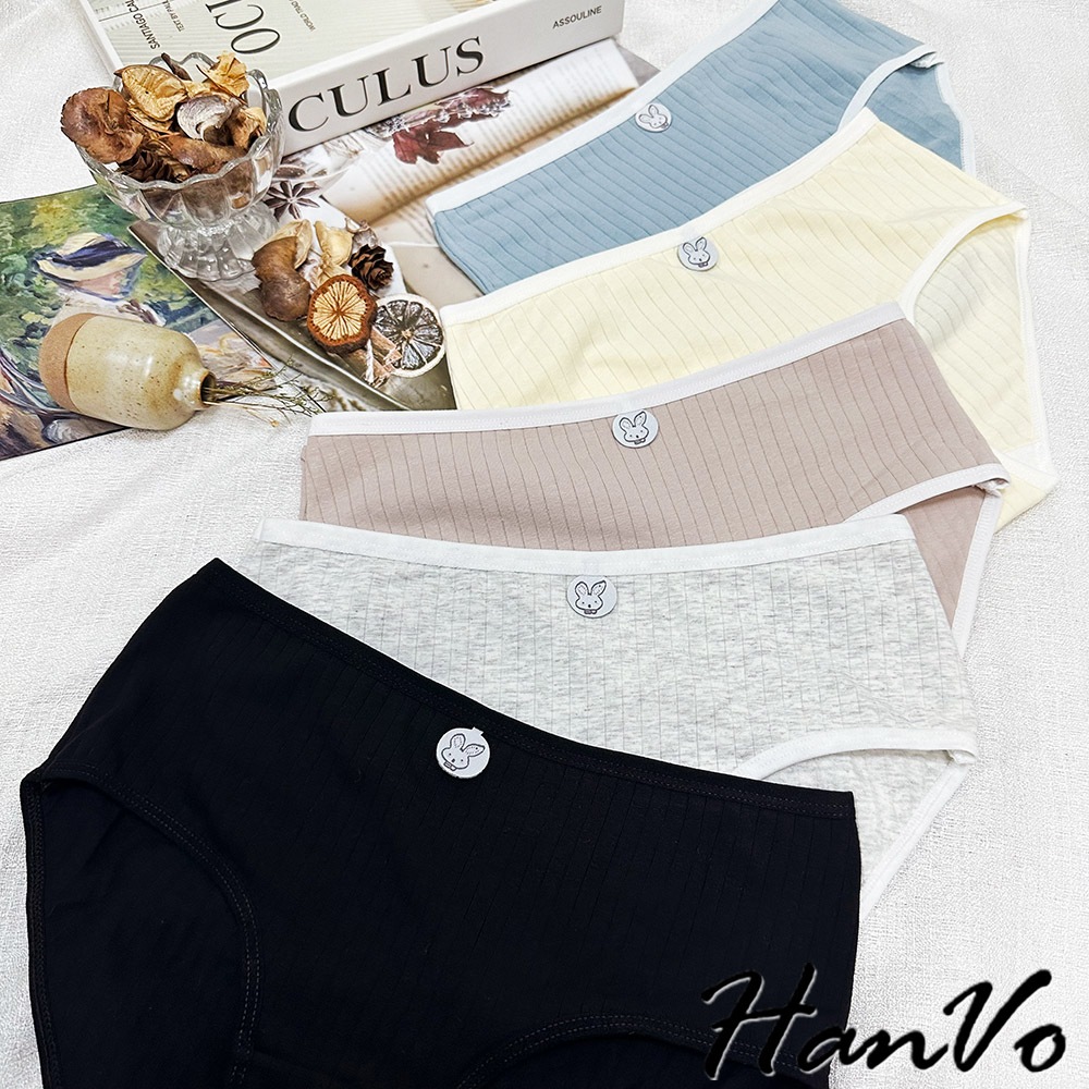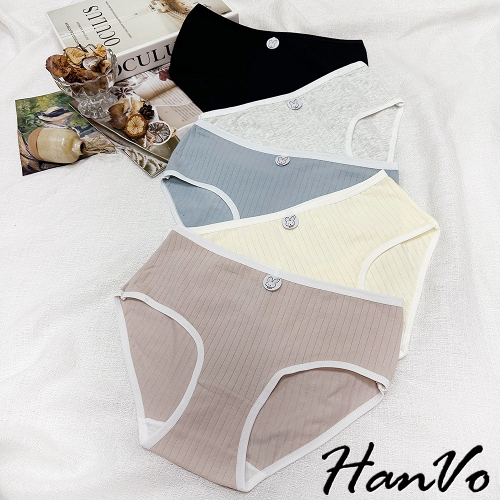 【HanVo】可愛兔子標籤直紋內褲 吸濕透氣排汗棉質三角褲 中腰 獨立包裝 內著 A11-5880湖水藍|靜謐黑|萊姆黃|雲彩灰|蜜茶棕PantiesHanVo Wear Collection