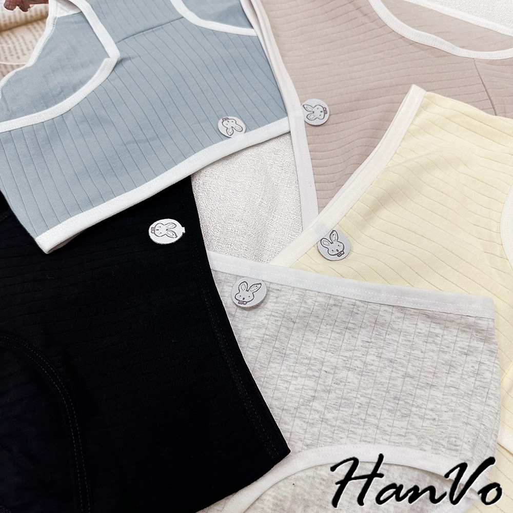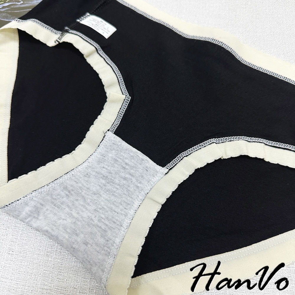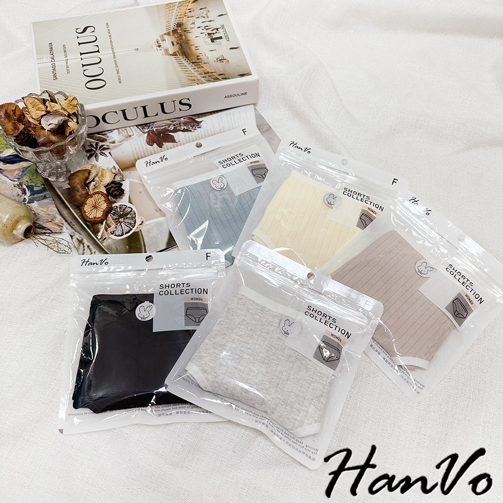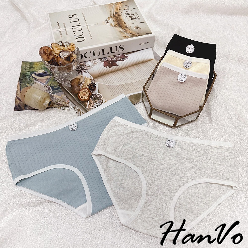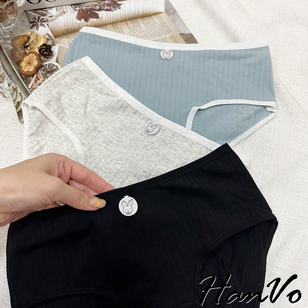 【HanVo】可愛兔子標籤直紋內褲 吸濕透氣排汗棉質三角褲 中腰 獨立包裝 內著 A11-5880湖水藍|靜謐黑|萊姆黃|雲彩灰|蜜茶棕PantiesHanVo Wear Collection