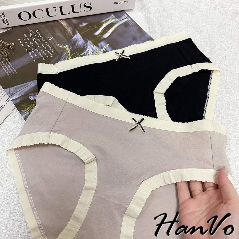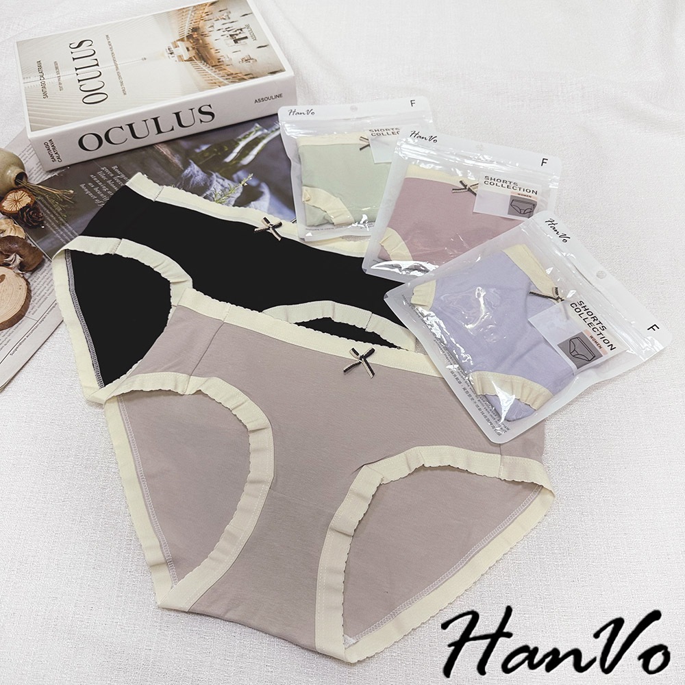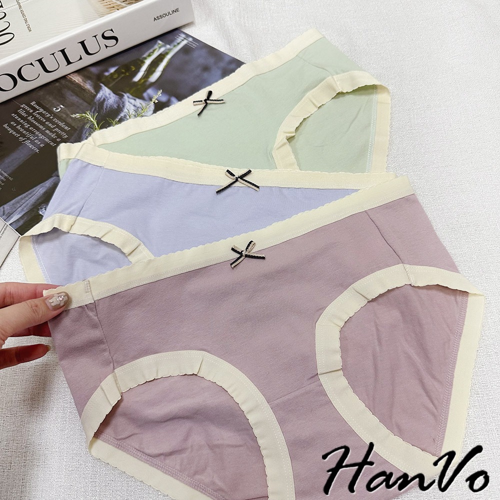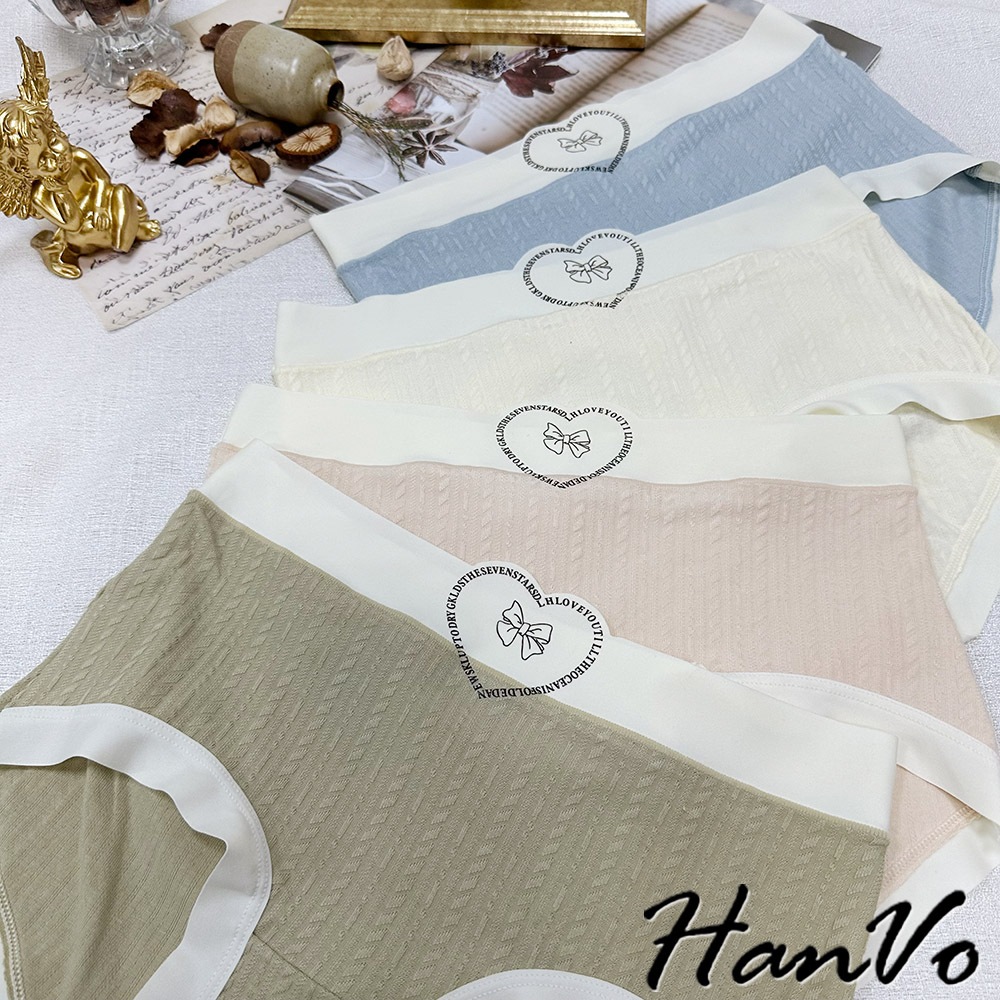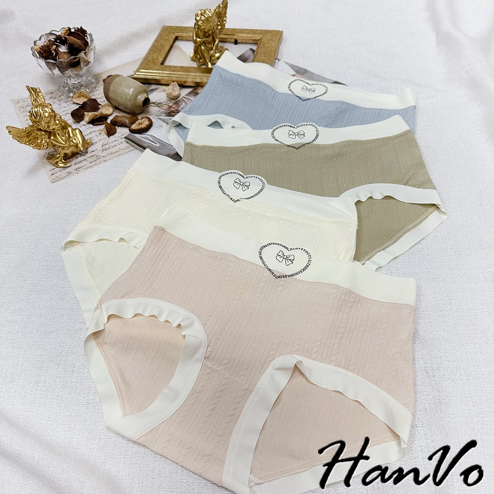 【HanVo】愛心蝴蝶結親膚棉質內褲 獨立包裝 甜美彈性佳中腰三角褲 女生內褲 內著 A11-5857淡柔粉|北歐藍|豆沙綠|米粿杏PantiesHanVo Wear Collection