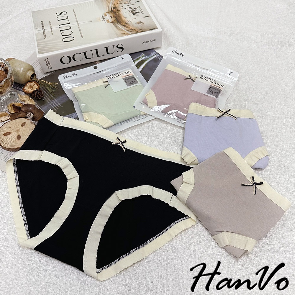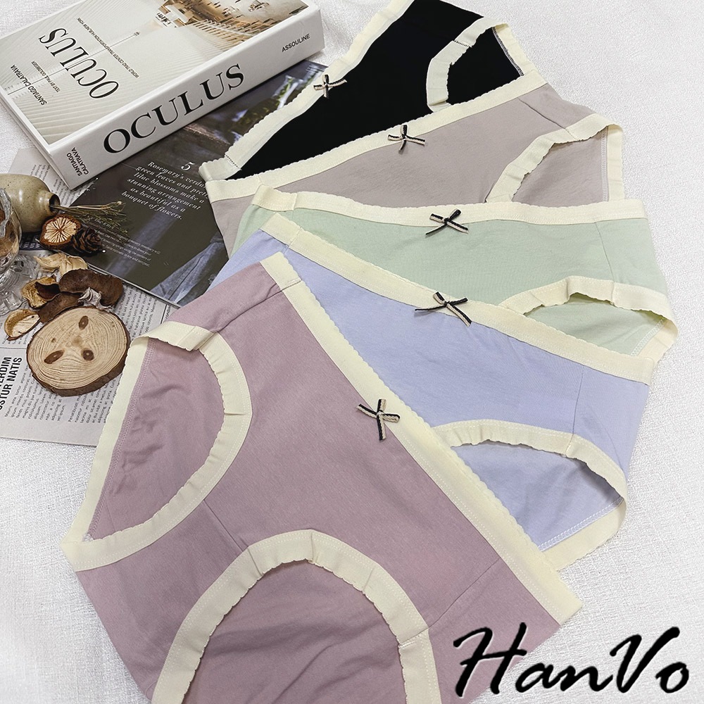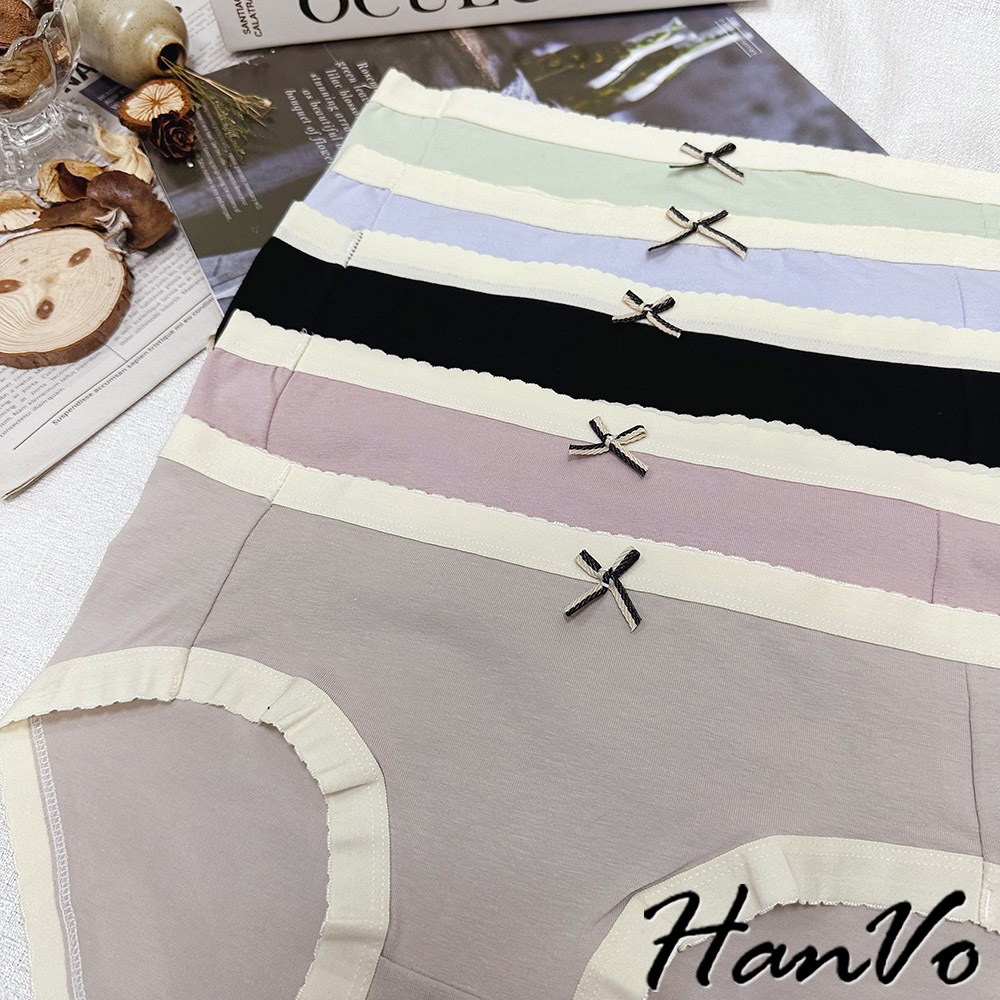 【HanVo】精緻蝶結好感甜美色系內褲 3D臀包覆親膚柔軟舒適 獨立包裝 中腰 流行少女內褲 內著 A11-5851夜空黑|丁香紫|青草綠|海鹽灰|晴空藍PantiesHanVo Wear Collection