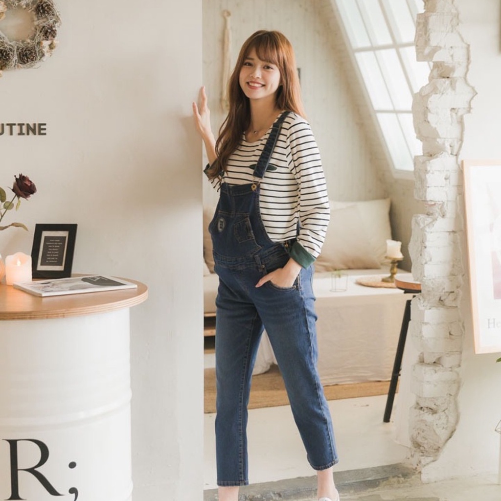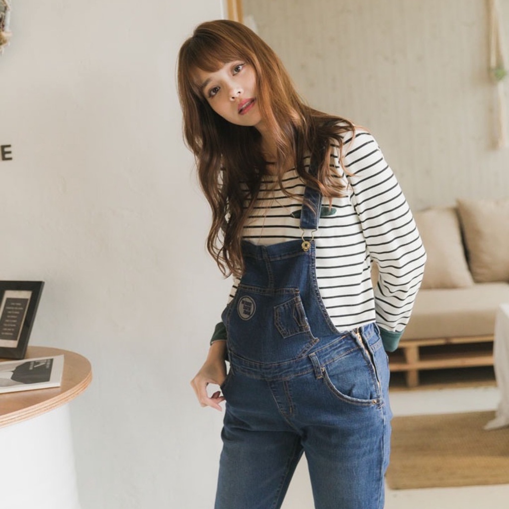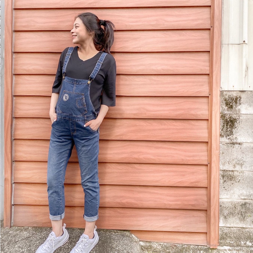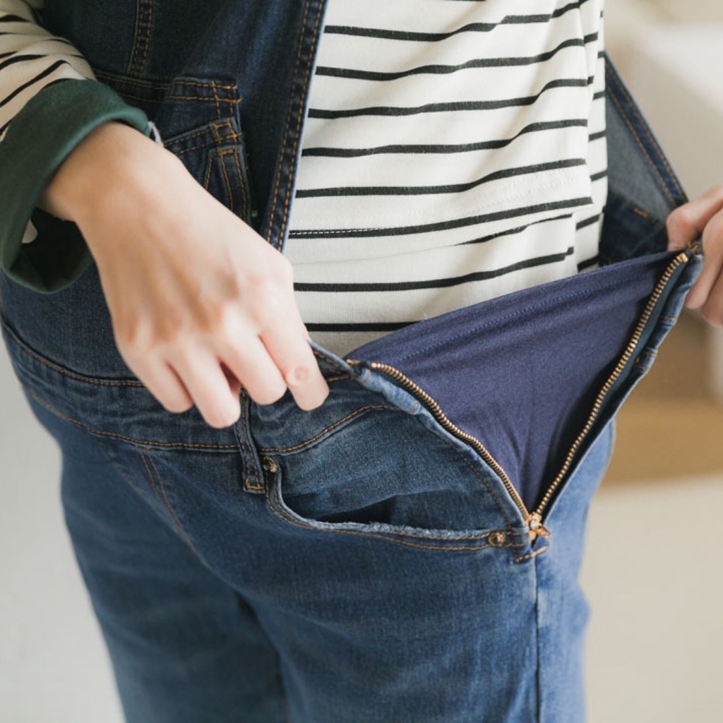 Mamamia孕婦裝 彈性貼標牛仔吊帶孕婦褲 吊帶褲 牛仔褲 孕婦牛仔褲 孕婦裝 孕婦吊帶 M~XL [B6255]L|XL|MMaternity BottomsMamamia孕婦裝
