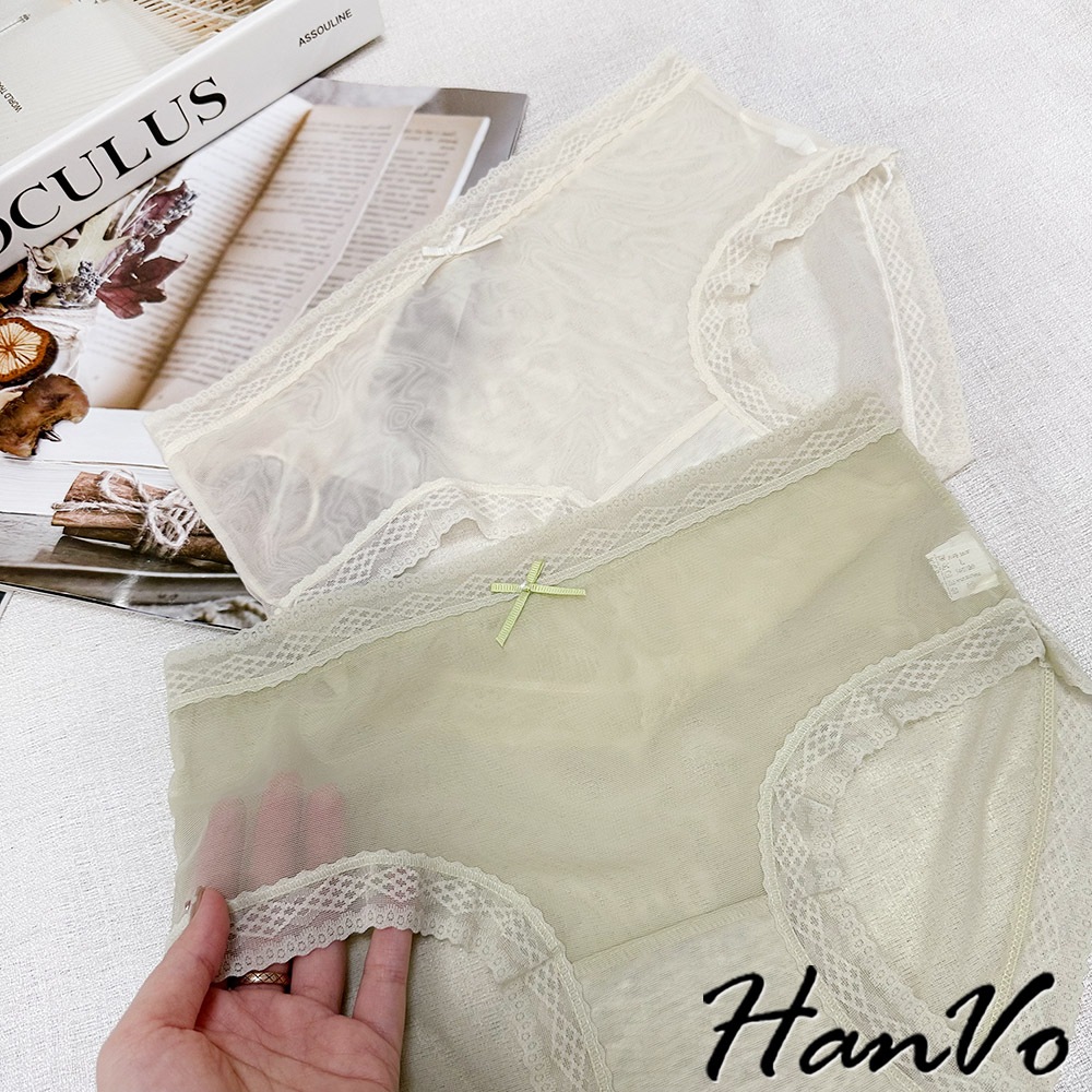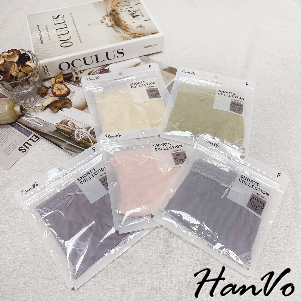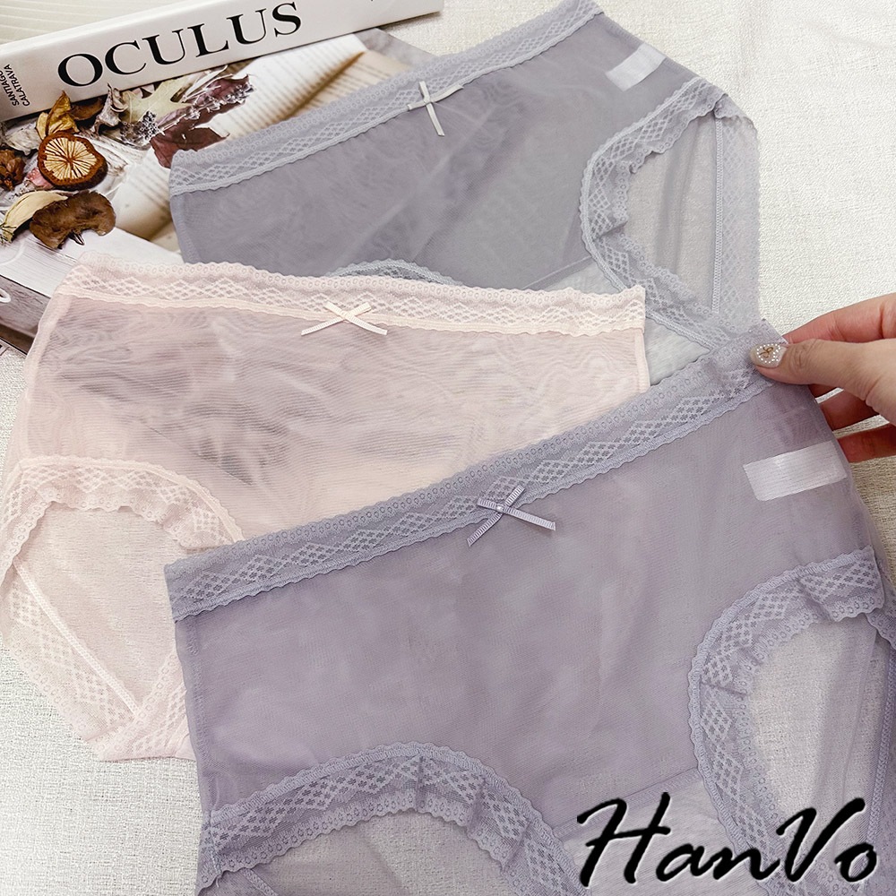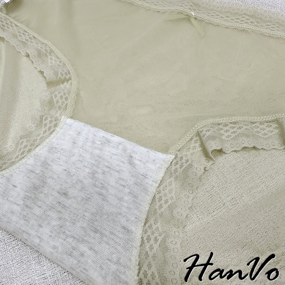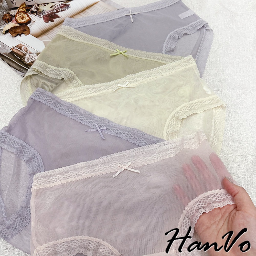【HanVo】法式優雅網紗蕾絲邊內褲 獨立包裝 零束縛包臀中腰內褲 吸濕排汗底襠 流行少女內褲 內著 A11-5834柔灰藍|青草綠|奶油黃|羅蘭紫|花瓣粉PantiesHanVo Wear Collection