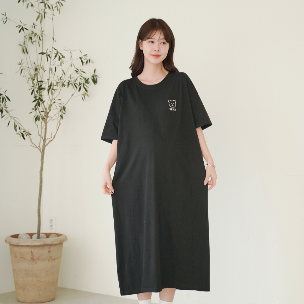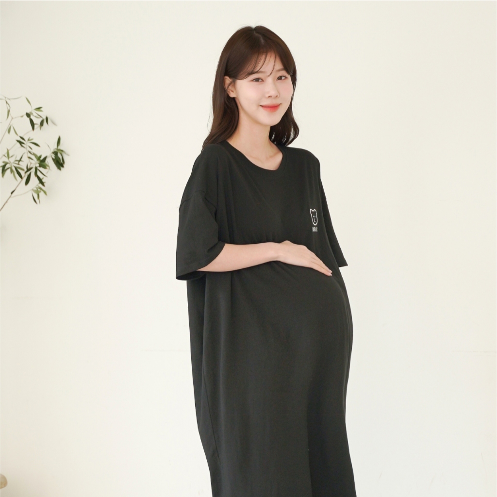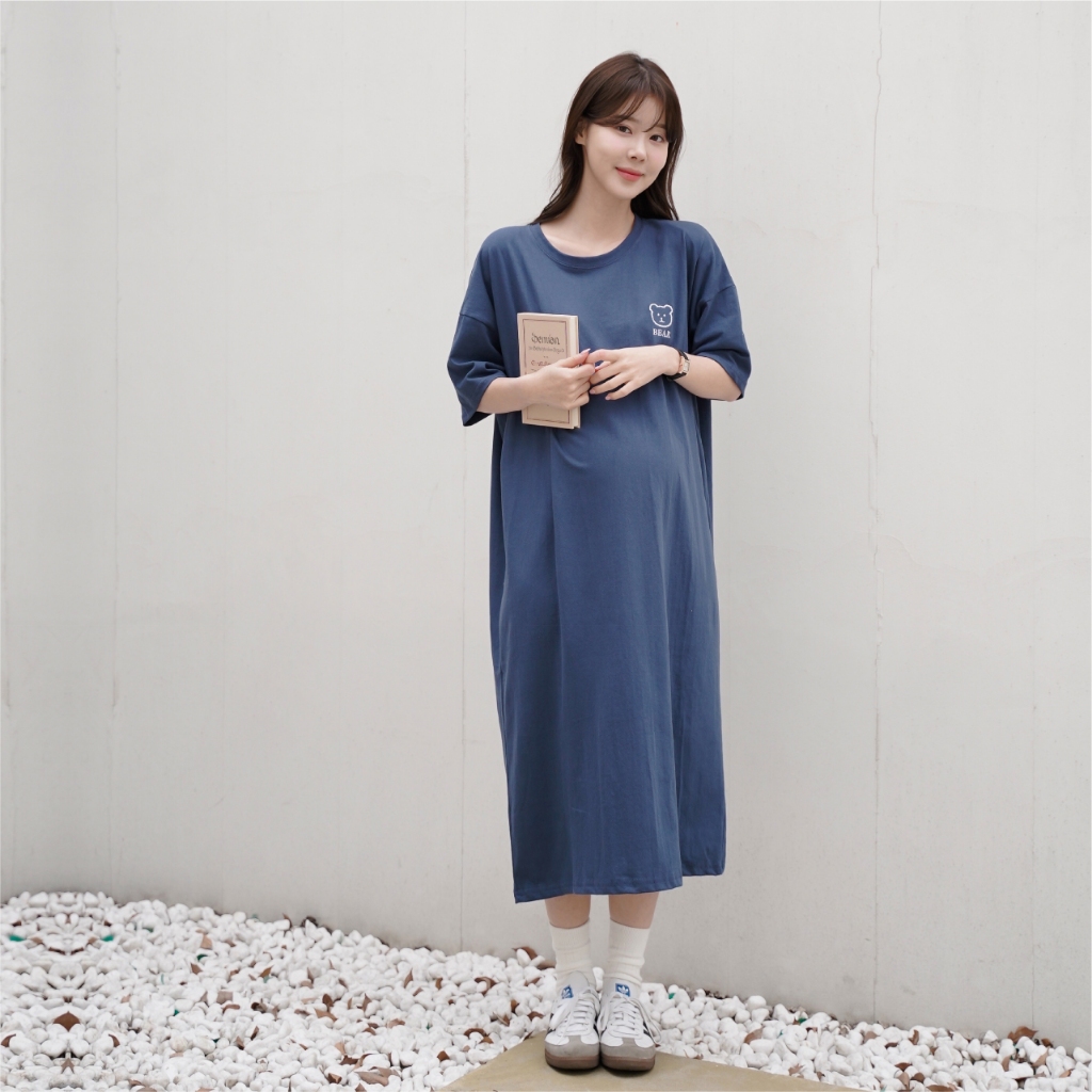 Mamamia孕婦裝 快速出門刺繡小熊孕婦洋 正韓製 孕婦裙 孕婦洋裝 短袖 孕婦穿搭 [D7571]黑|深藍|紫Maternity DressesMamamia孕婦裝