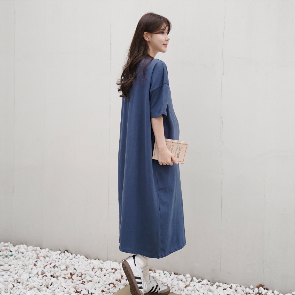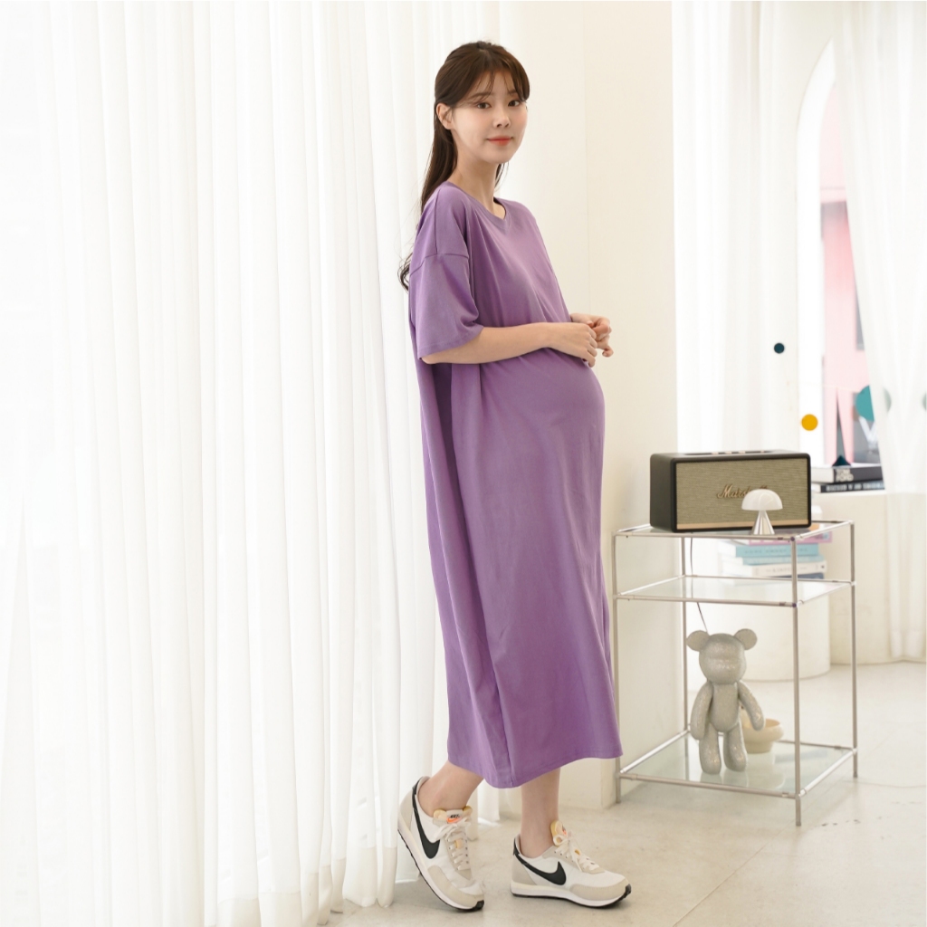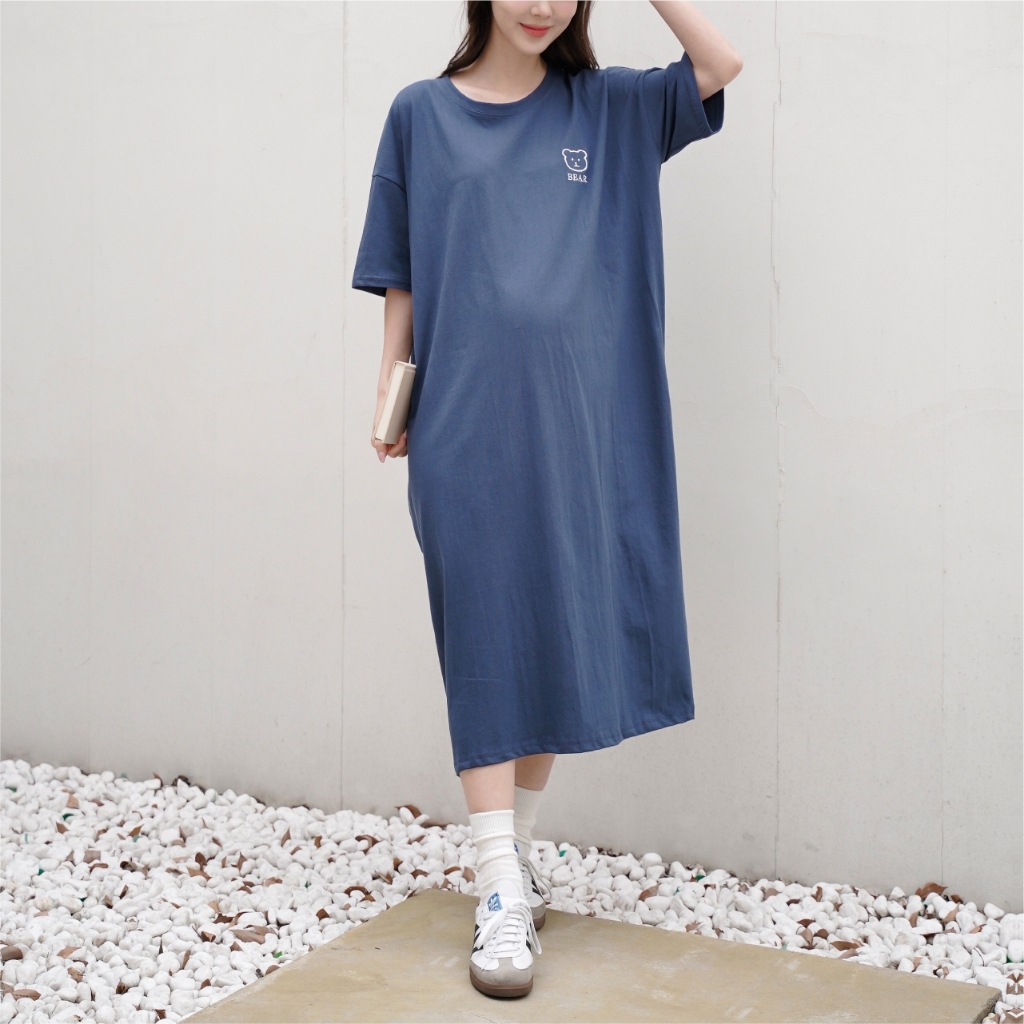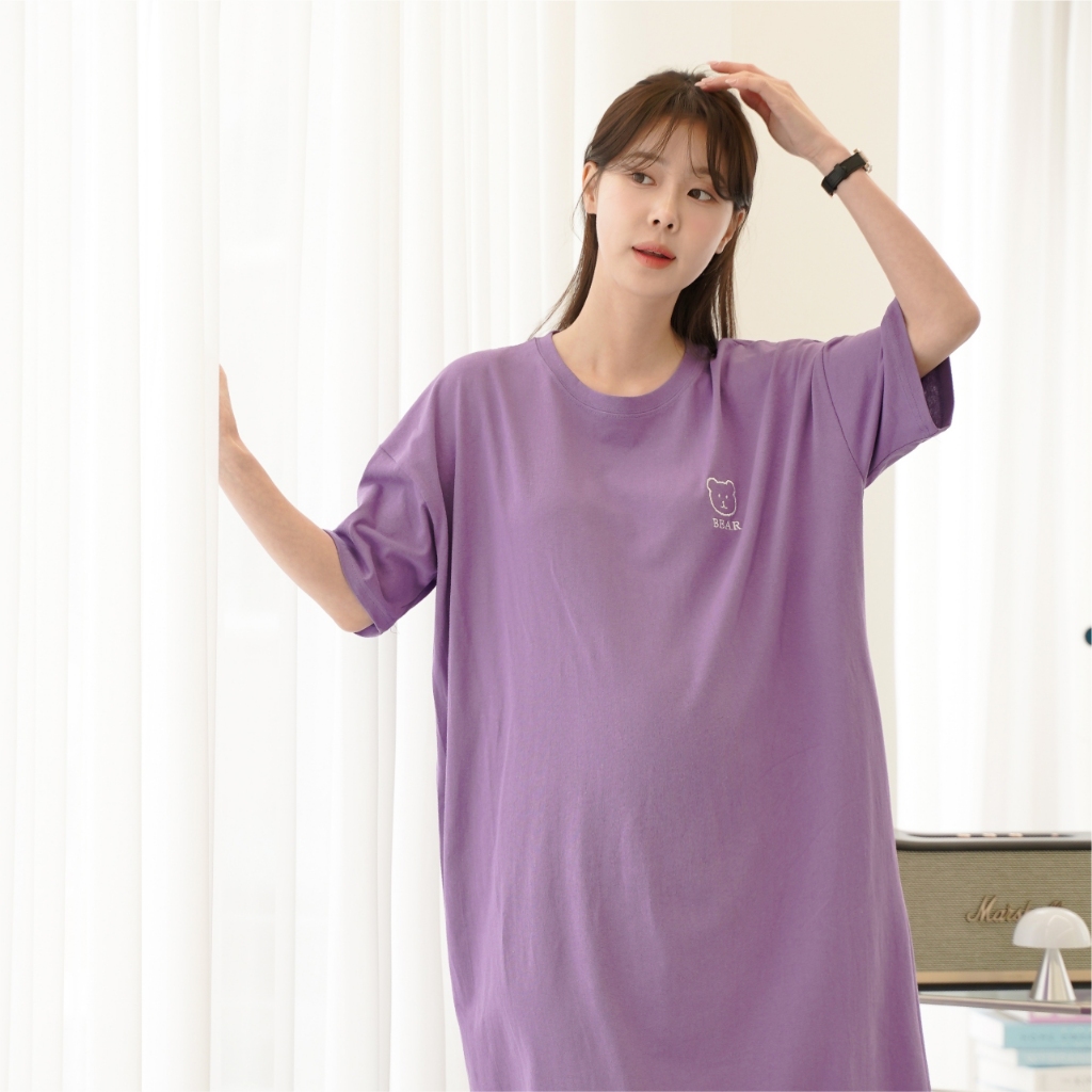 Mamamia孕婦裝 快速出門刺繡小熊孕婦洋 正韓製 孕婦裙 孕婦洋裝 短袖 孕婦穿搭 [D7571]黑|深藍|紫Maternity DressesMamamia孕婦裝