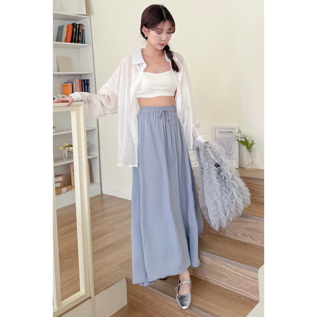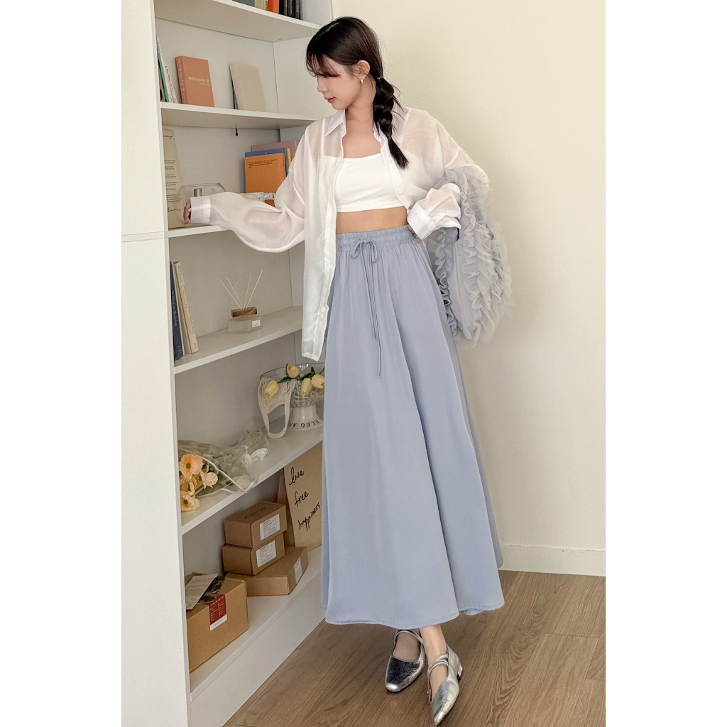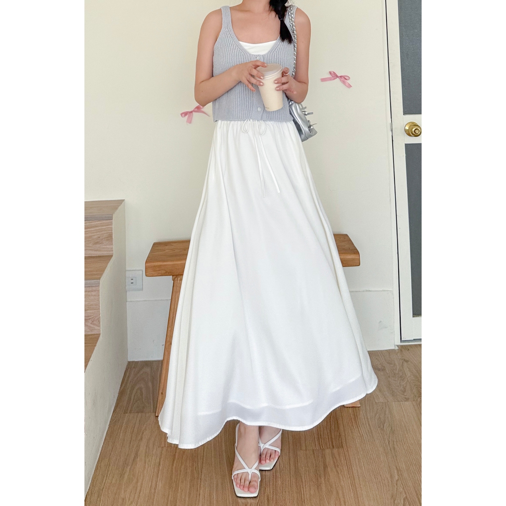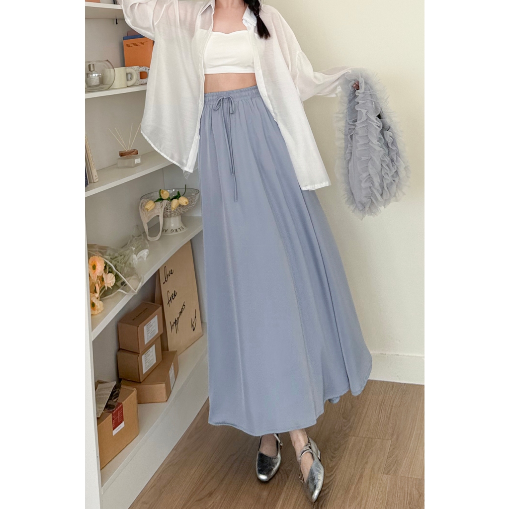 【HARPER】品牌自訂腰抽繩光澤長裙 有內裏 | 現貨 中長裙 裙子 光澤裙【SKA23717J】白,F|藍,FHARPER