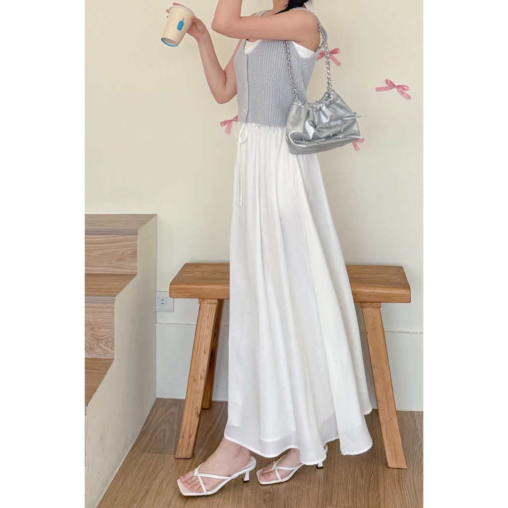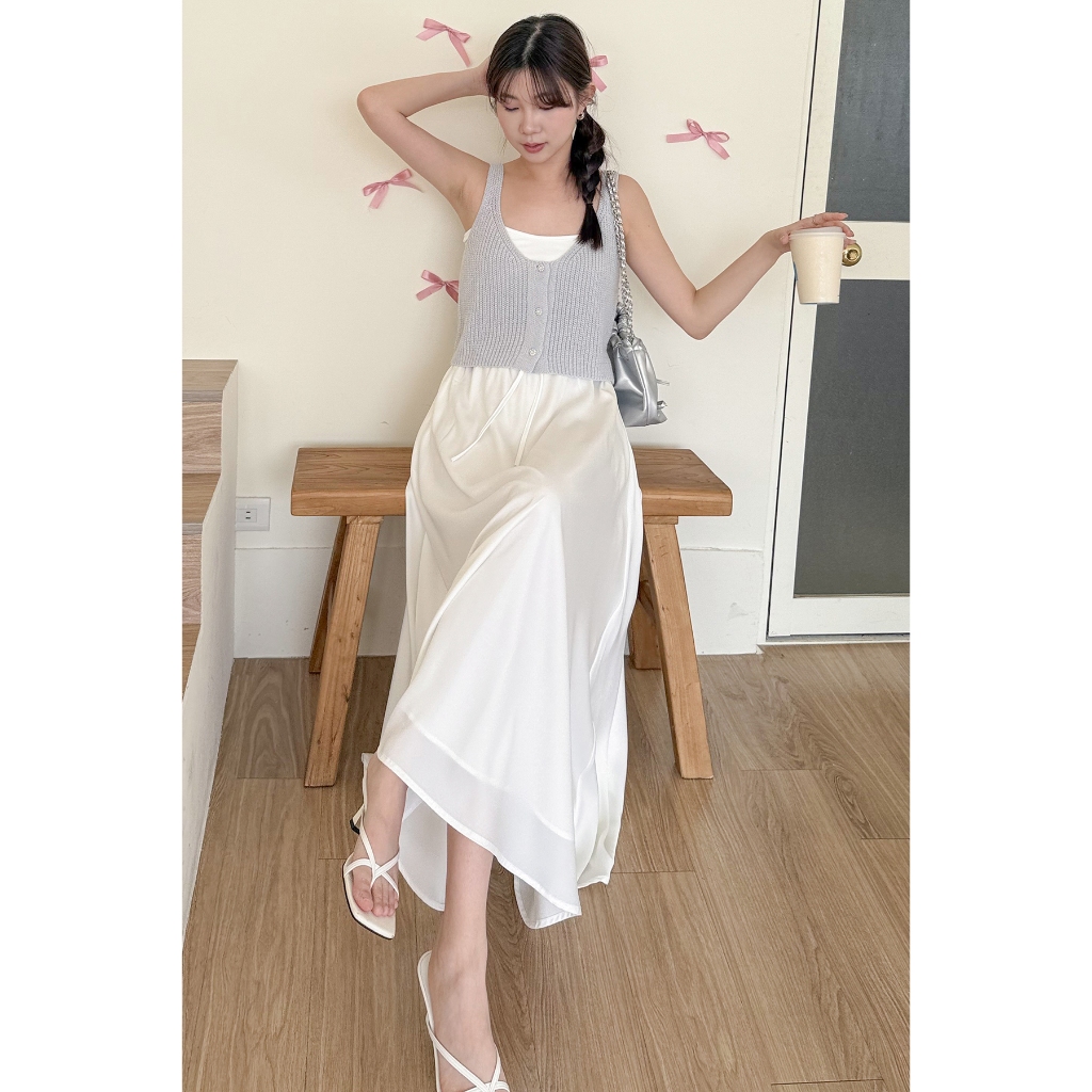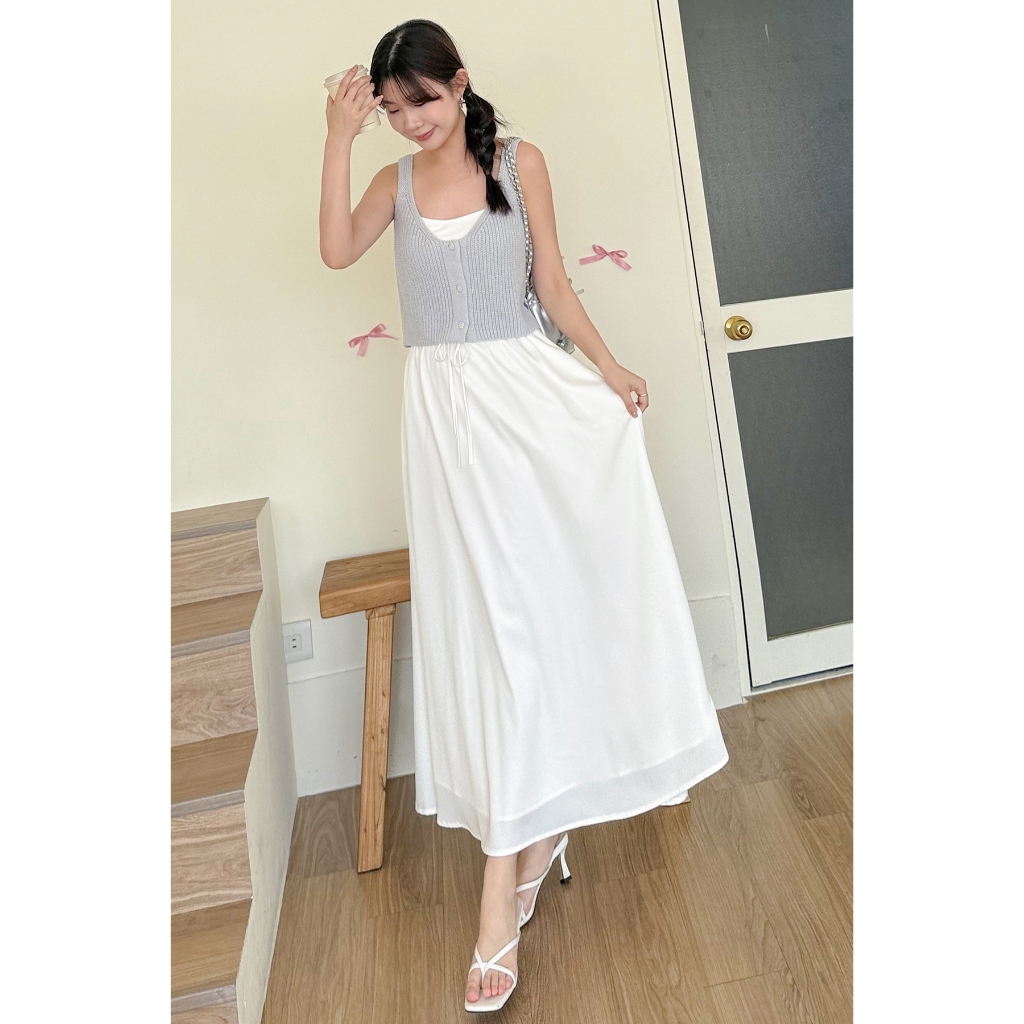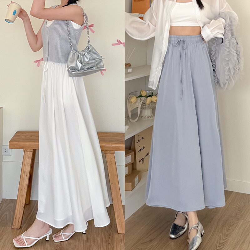 【HARPER】品牌自訂腰抽繩光澤長裙 有內裏 | 現貨 中長裙 裙子 光澤裙【SKA23717J】白,F|藍,FHARPER