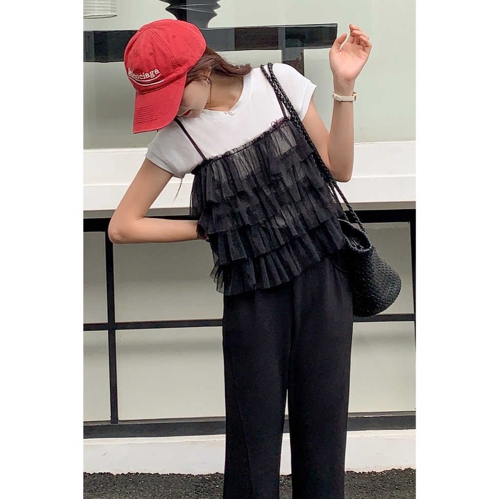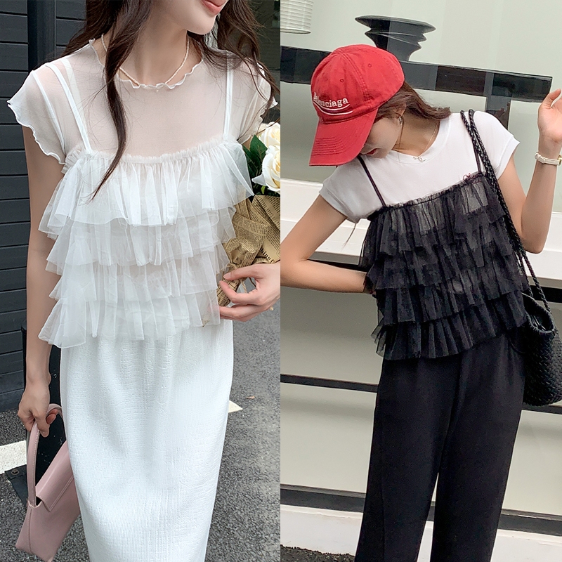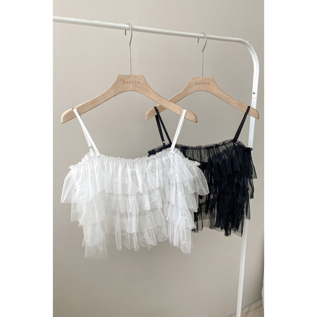 【HARPER】法式薄紗蛋糕背心 | 現貨 無袖 背心 蛋糕背心 外搭【CLD29617J】黑,F|白,FTanks & CamisolesHARPER