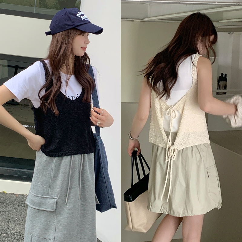 【HARPER】兩面穿綁帶針織背心 | 現貨 無袖 背心 兩穿【CLE25812J】杏,F|黑,FTanks & CamisolesHARPER