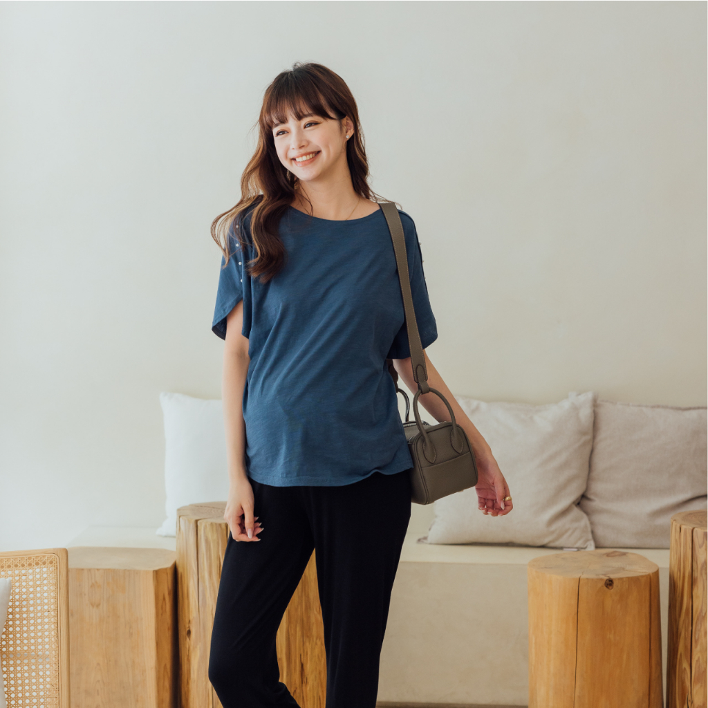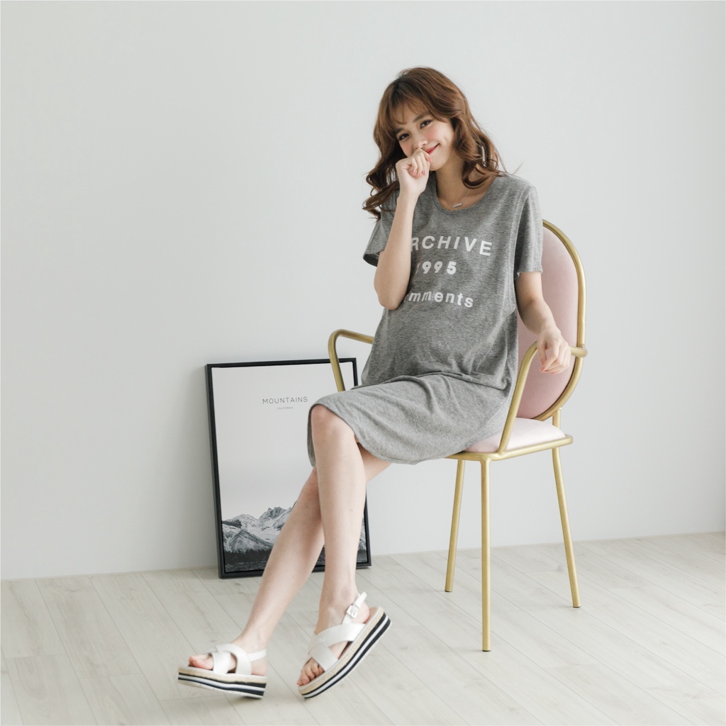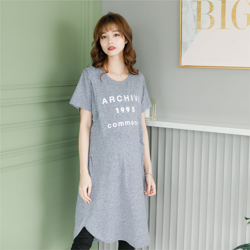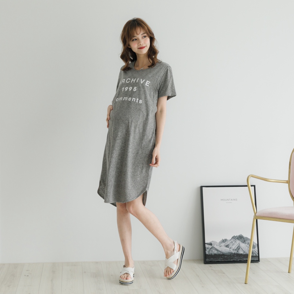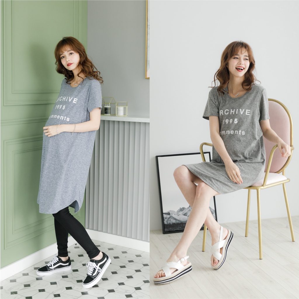 Mamamia孕婦裝 花灰字母長版哺乳衣 短袖 孕婦裝 孕婦裙 連身裙 長版上衣 [A1254]藍灰|深灰Breastfeeding WearMamamia孕婦裝