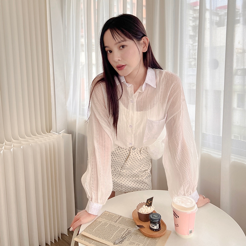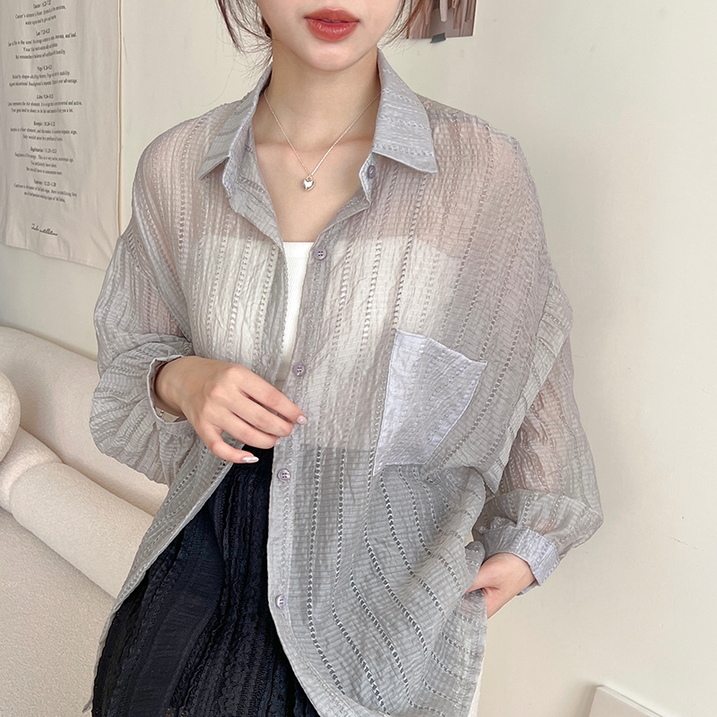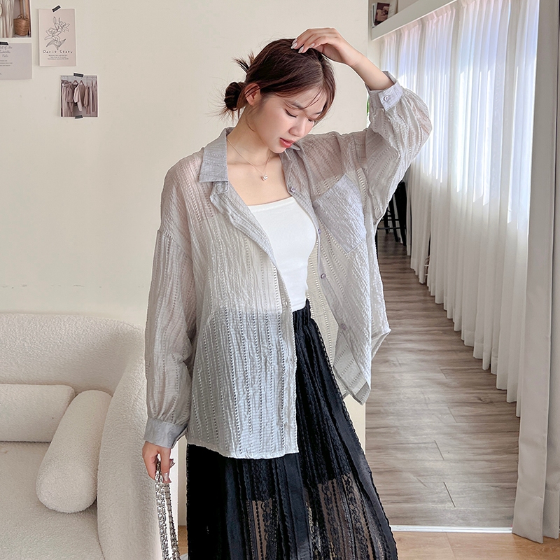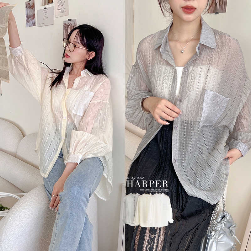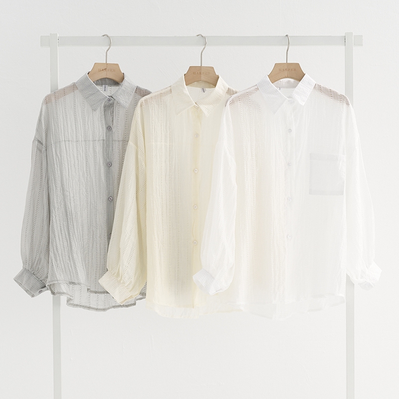 【HARPER】直紋透肌感襯衫 | 現貨 長袖 襯衫 透膚 防曬【CLB64931H】灰,F|白,F|杏,FShirts & BlousesHARPER