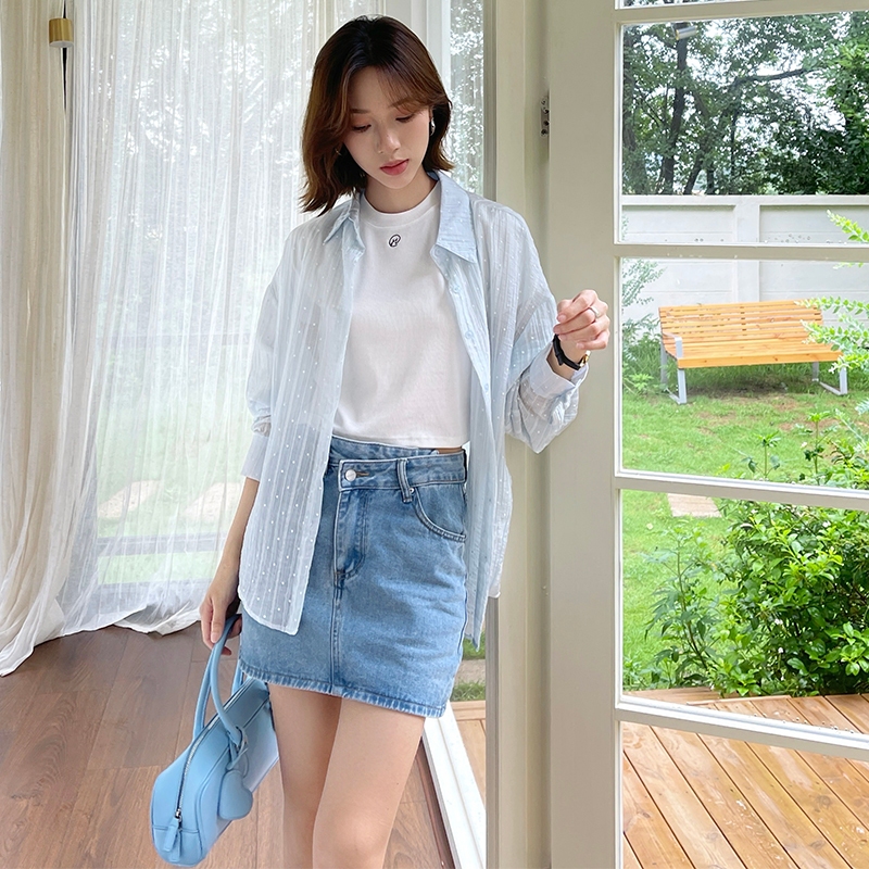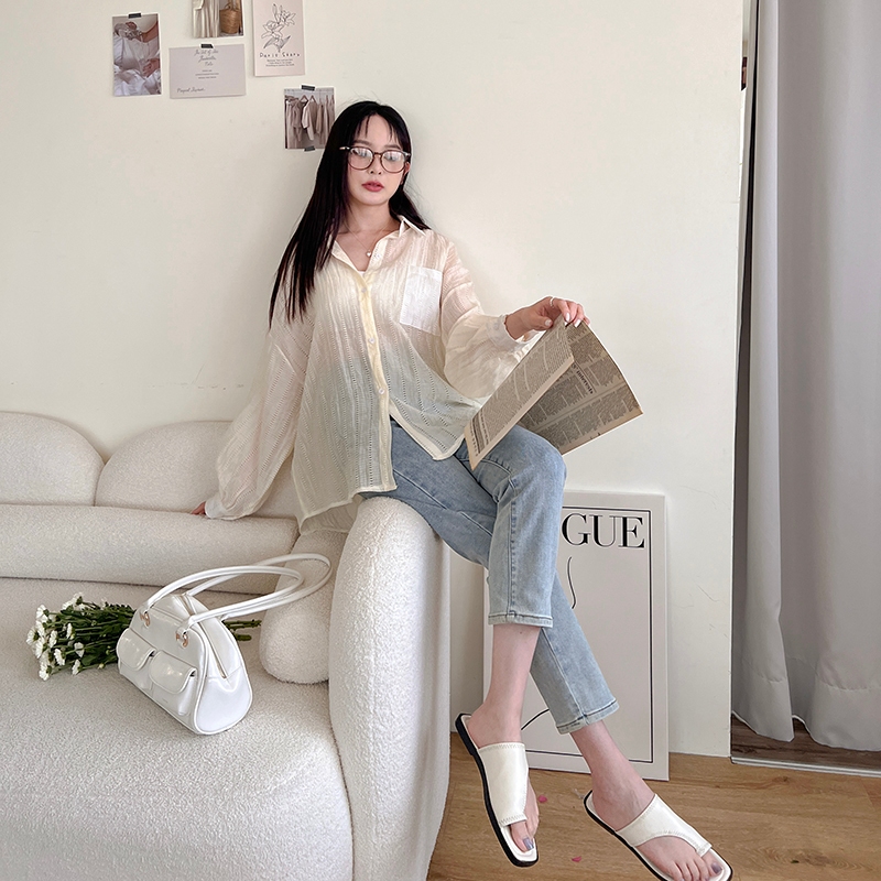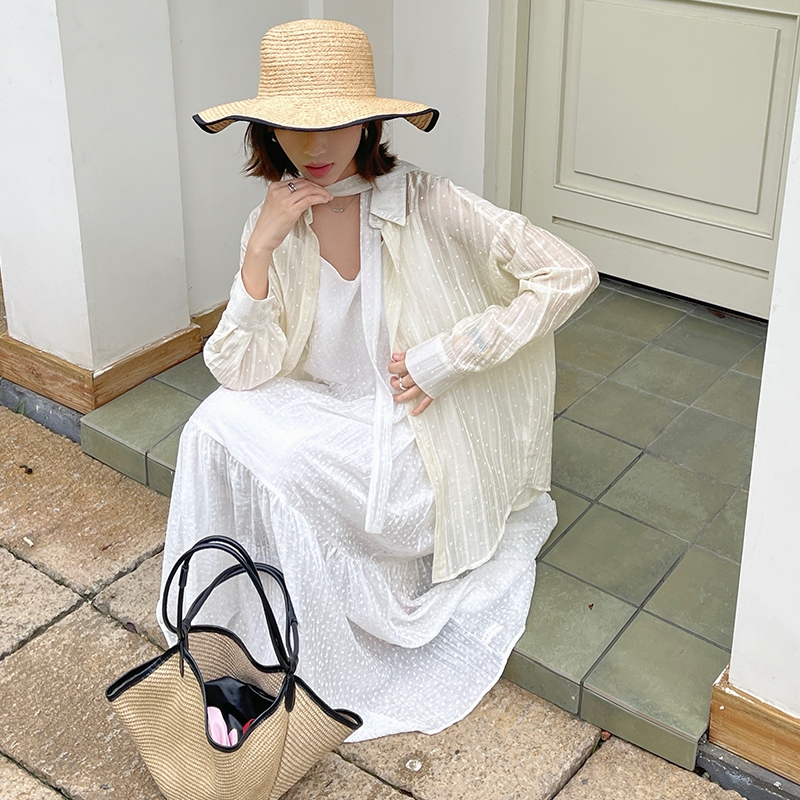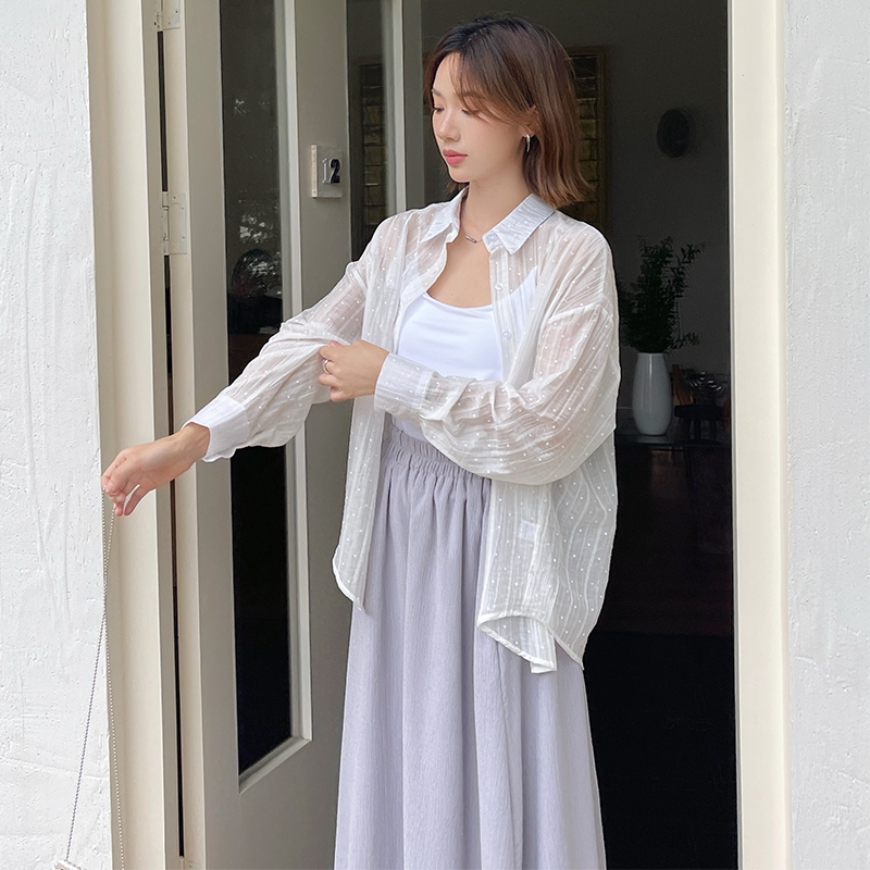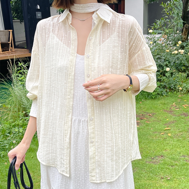 【HARPER】直紋透肌感襯衫 | 現貨 長袖 襯衫 透膚 防曬【CLB64931H】灰,F|白,F|杏,FShirts & BlousesHARPER