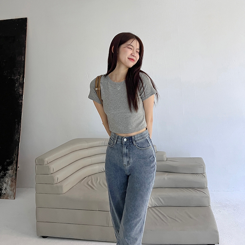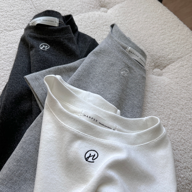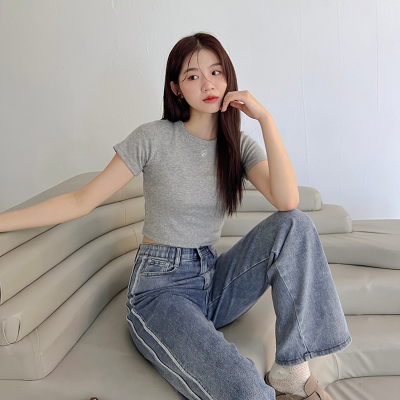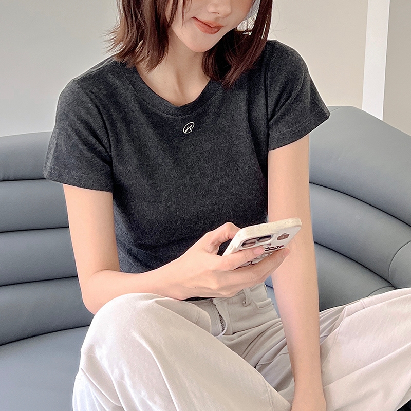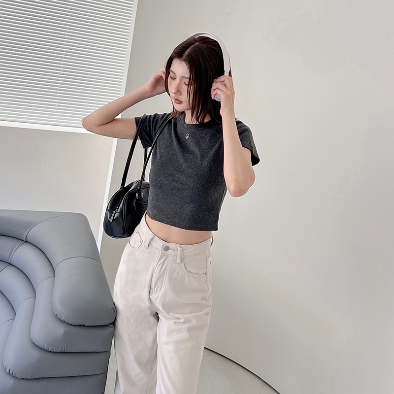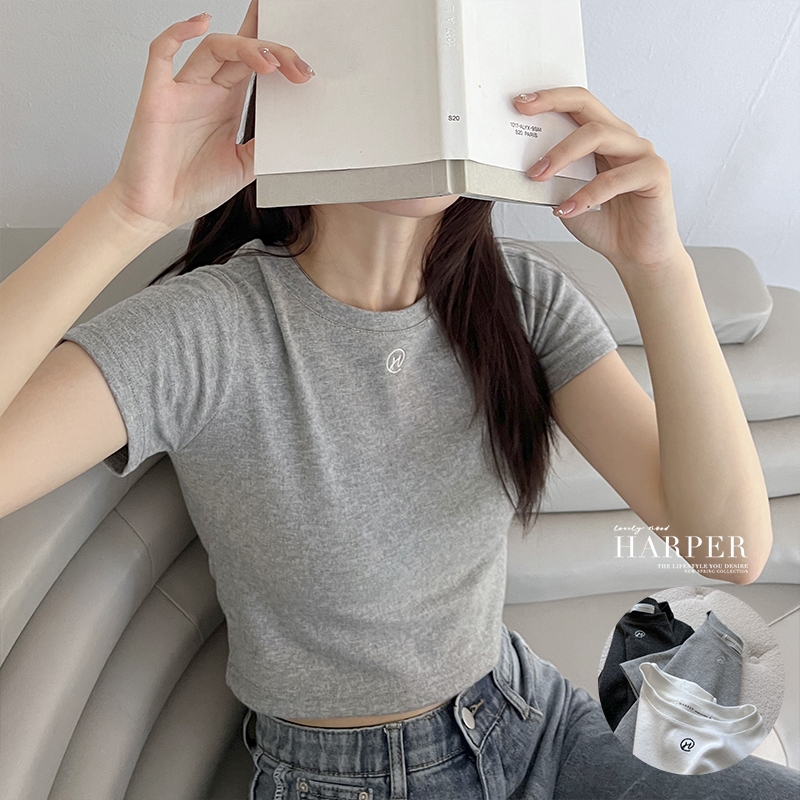 【HARPER】自訂刺繡微短版上衣 | 現貨 短袖上衣 短版 百搭 T恤【CLF13338H】深灰,M|深灰,XL|灰,S|深灰,S|白,L|白,XL|灰,M|灰,L|灰,XL|深灰,L|白,S|白,MT-shirtsHARPER