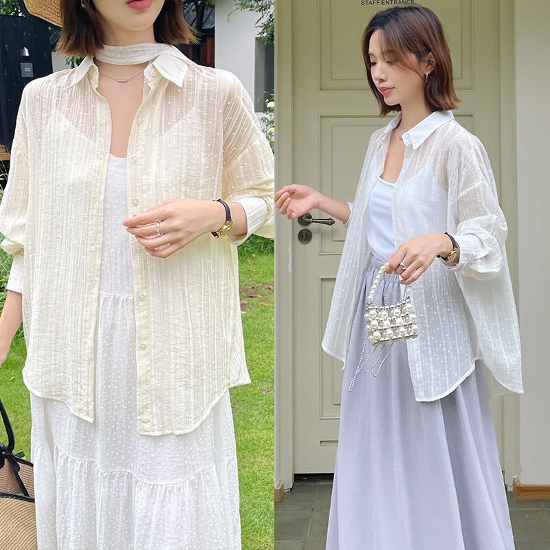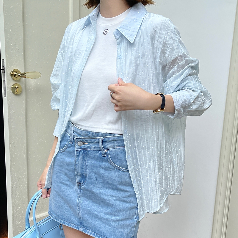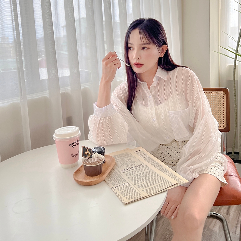 【HARPER】糖果色系波點襯衫 |現貨 長袖上衣 襯衫 透膚【CLA26727J】白,F|黃,F|藍,FShirts & BlousesHARPER