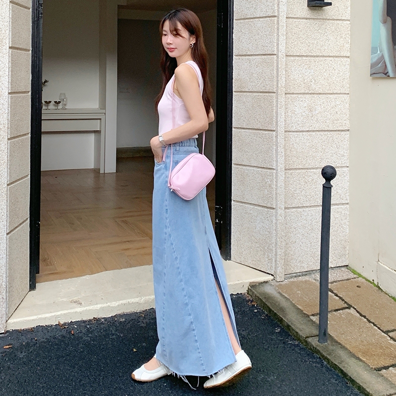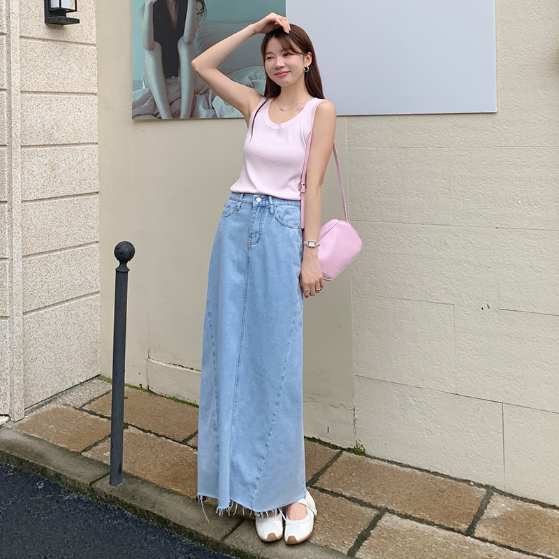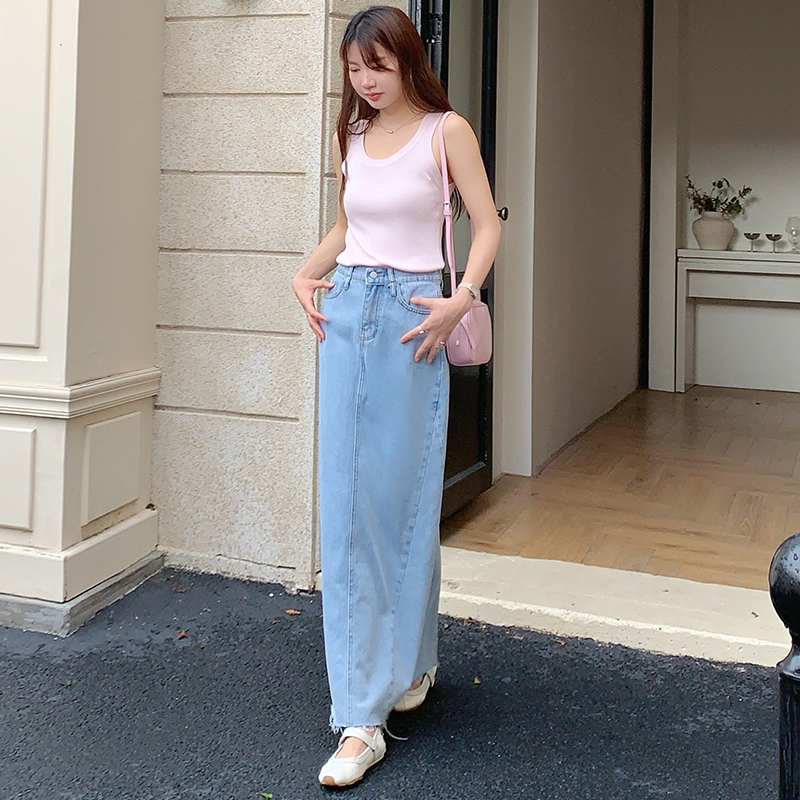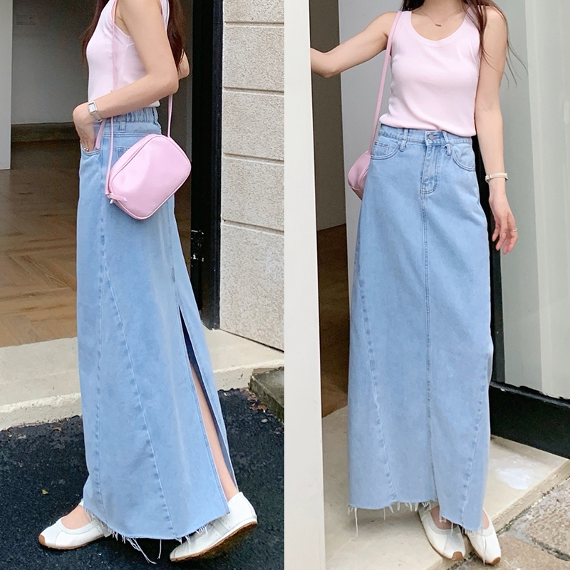 【HARPER】顯瘦百搭後開衩牛仔長裙 | 現貨 牛仔裙 中長裙 裙子【SKD75329J】藍,S|藍,M|藍,L|藍,XLHARPER