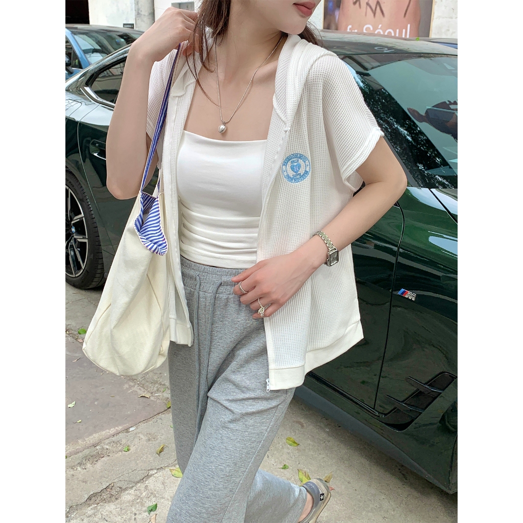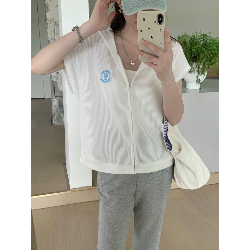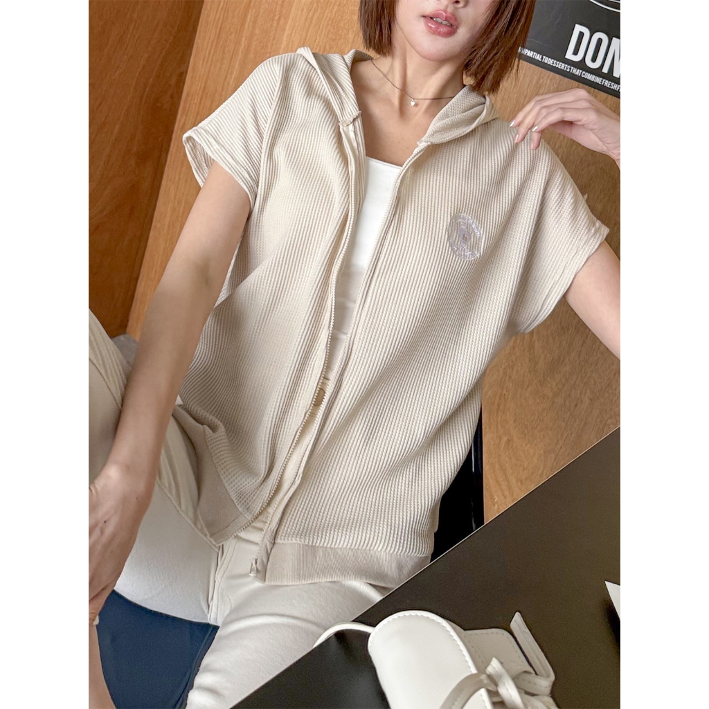【HARPER】品牌自訂愛心刺繡華夫格連帽外套 | 現貨 連帽外套 短袖外套【JTE97712J】