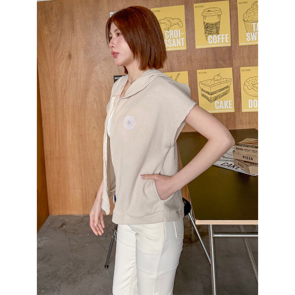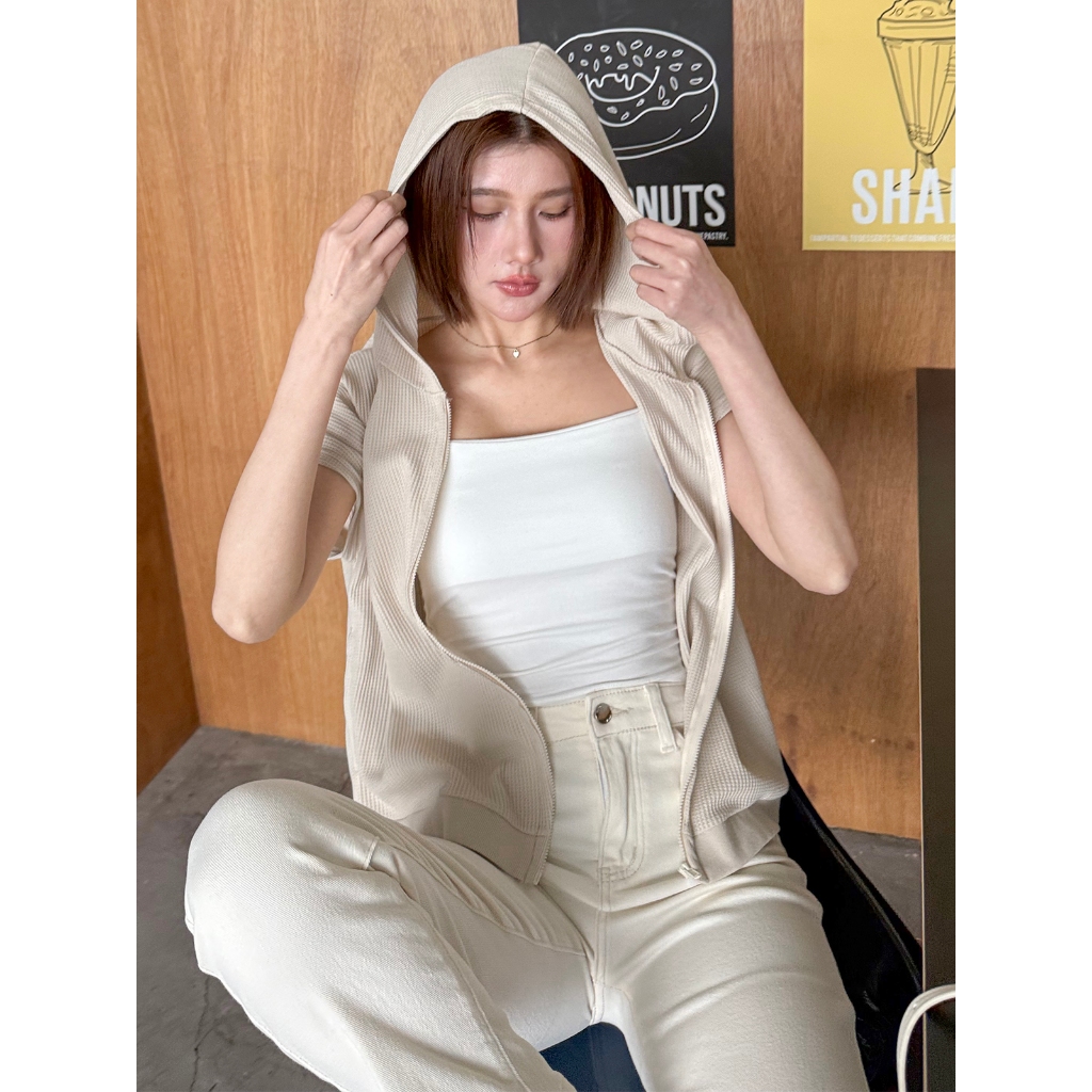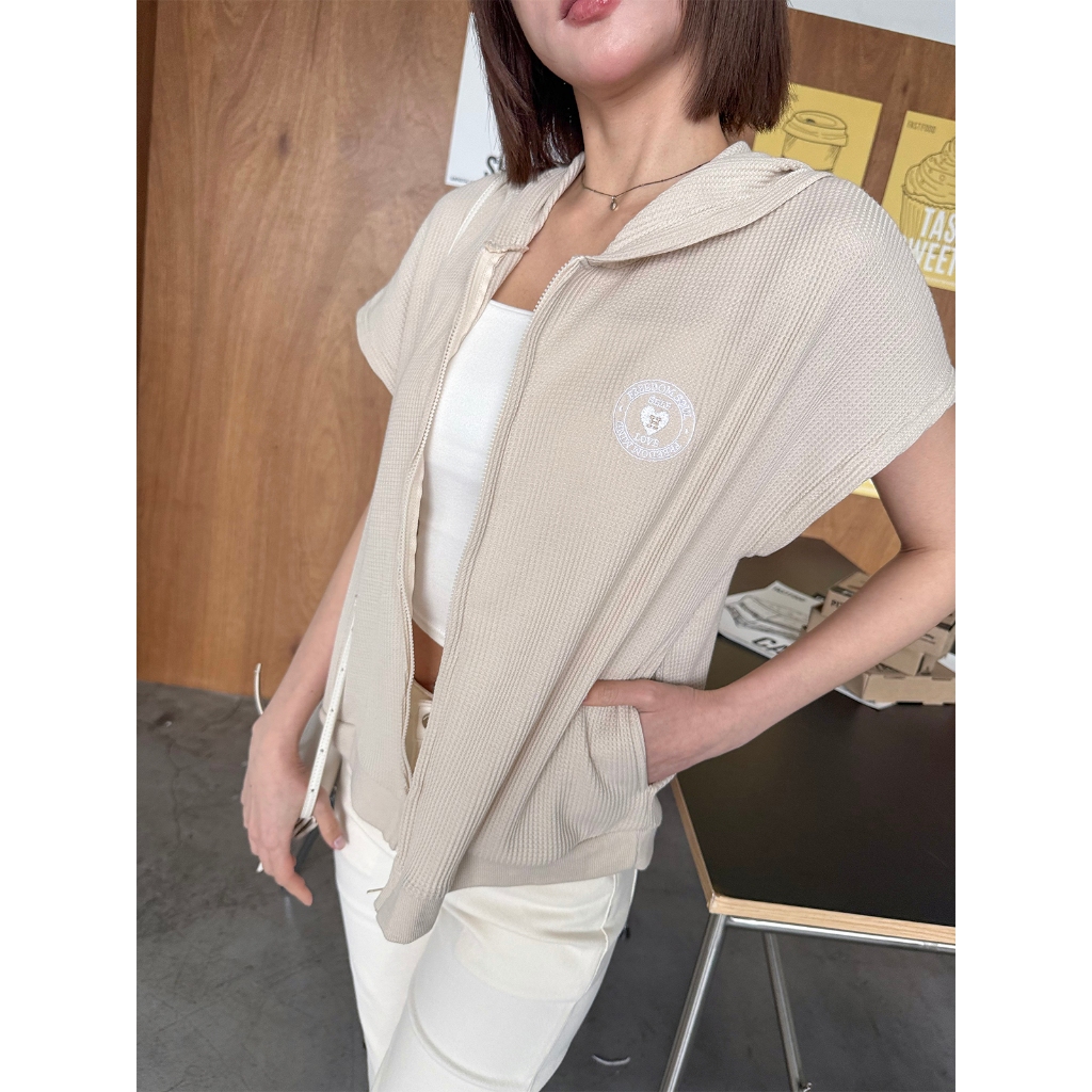 【HARPER】品牌自訂愛心刺繡華夫格連帽外套 | 現貨 連帽外套 短袖外套【JTE97712J】奶茶,F|白,FJacketsHARPER