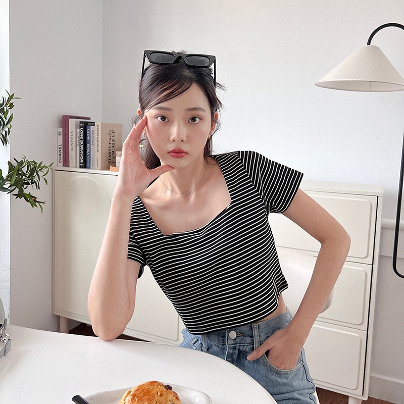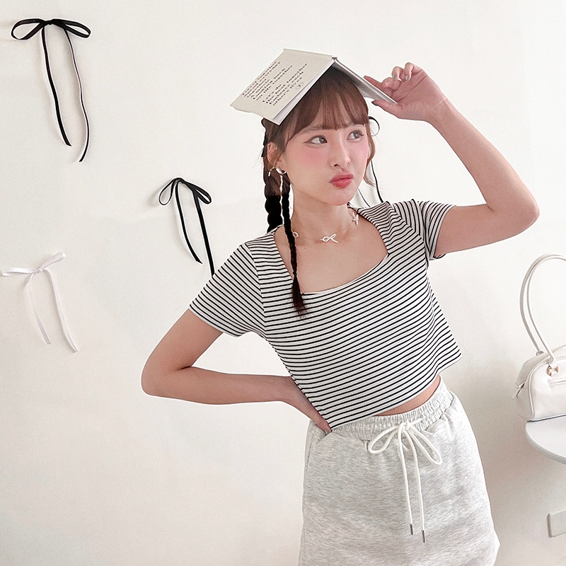 【HARPER】品牌自訂彈性坑條短版上衣 | 現貨 短袖 短版 上衣 T恤【CLF10222H】白,L~XL|白底黑條,S~M|白底黑條,L~XL|黑底白條,S~M|黑底白條,L~XL|黑,S~M|黑,L~XL|白,S~MT-shirtsHARPER