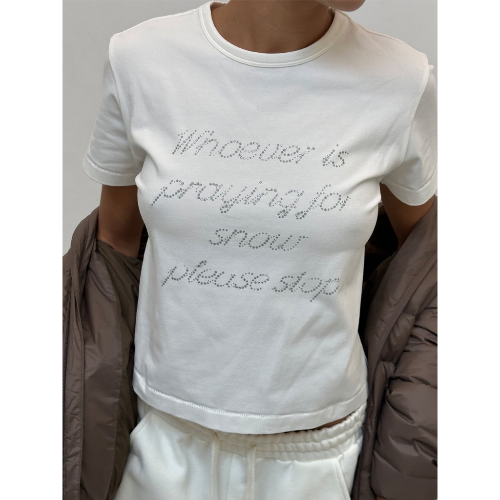 【MATIN KIM】閃粉縫線字母上衣 白色白色,S|白色,MT-shirtsMATIN KIM 官方旗艦店