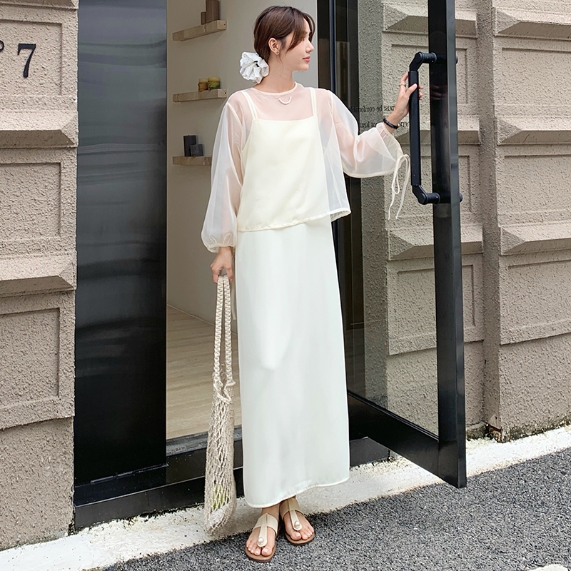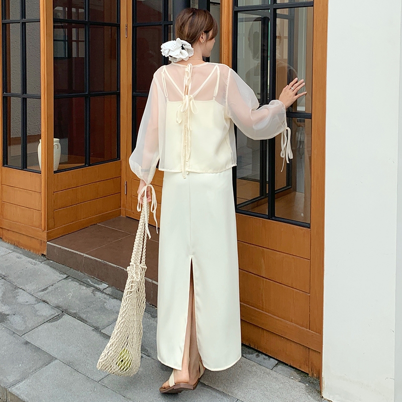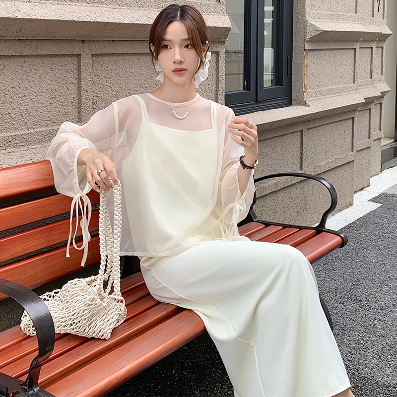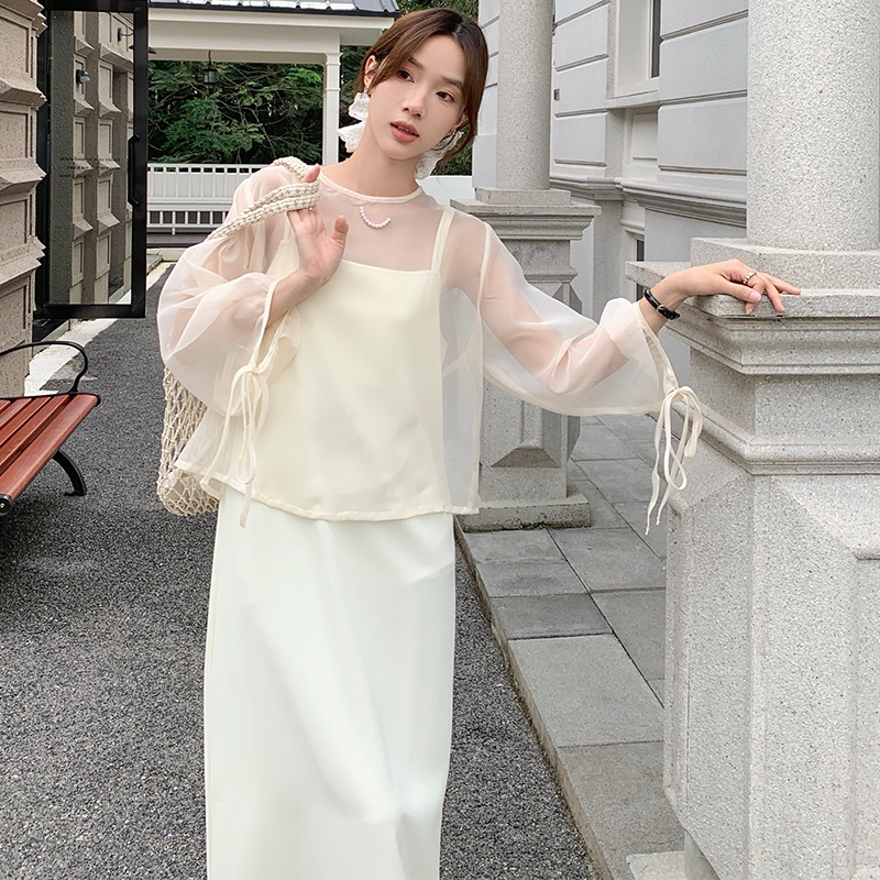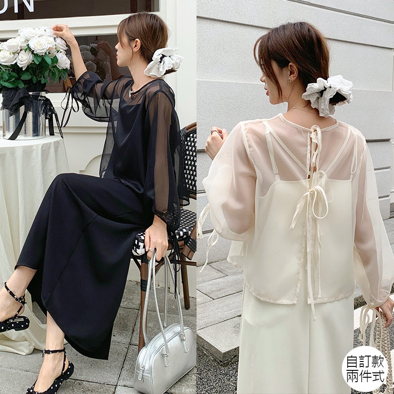 【HARPER】品牌自訂日系微透肌上衣+綁帶洋裝 | 現貨 兩件式 透肌 洋裝 婚禮【DSB42824J】