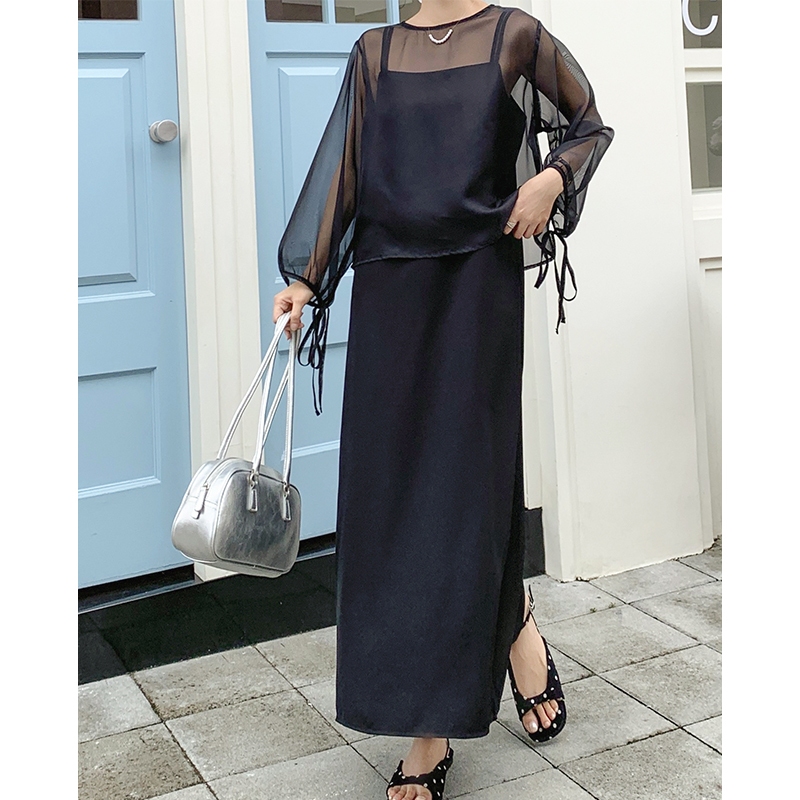 【HARPER】品牌自訂日系微透肌上衣+綁帶洋裝 | 現貨 兩件式 透肌 洋裝 婚禮【DSB42824J】杏,F|黑,FHARPER