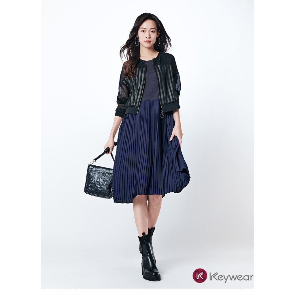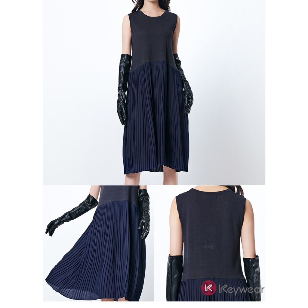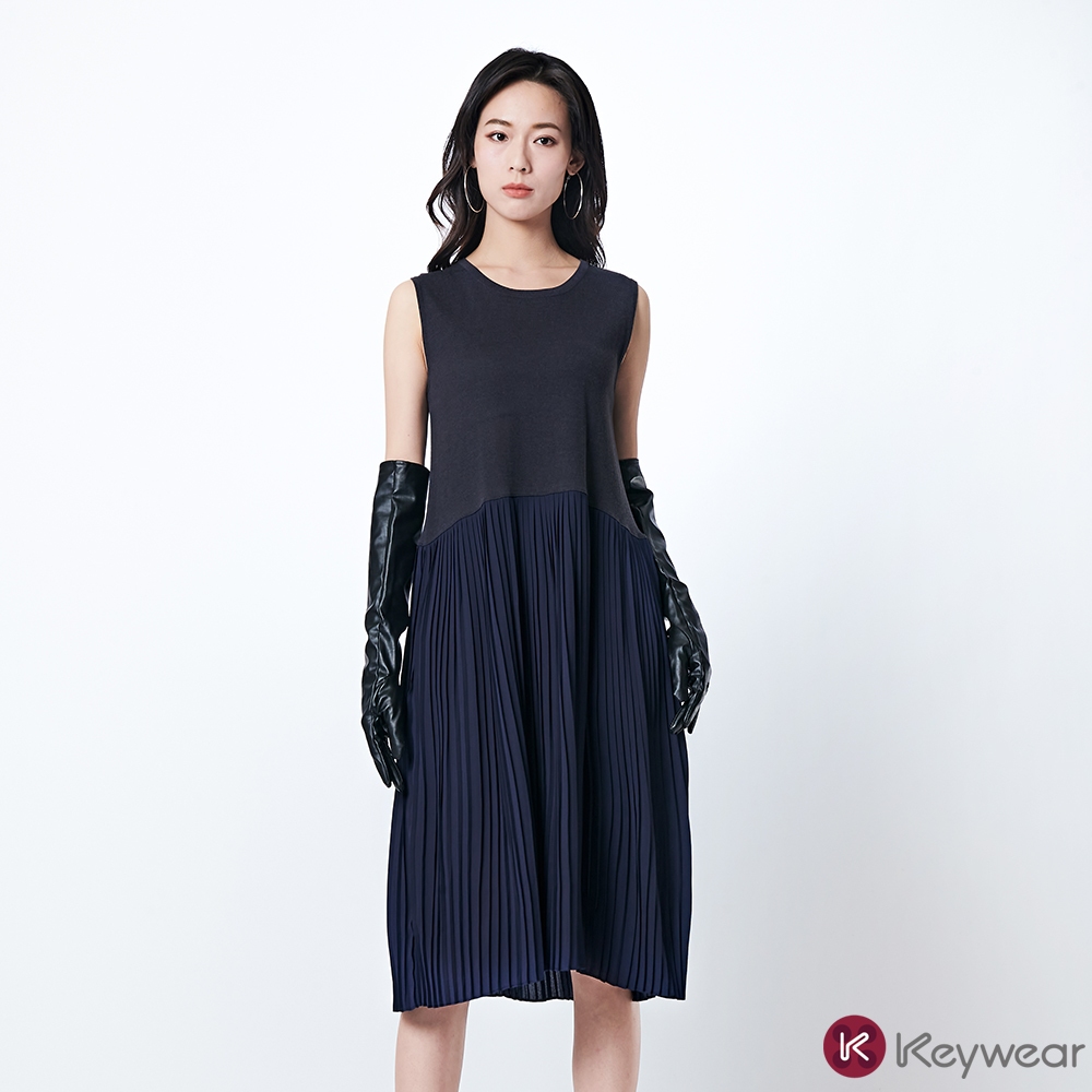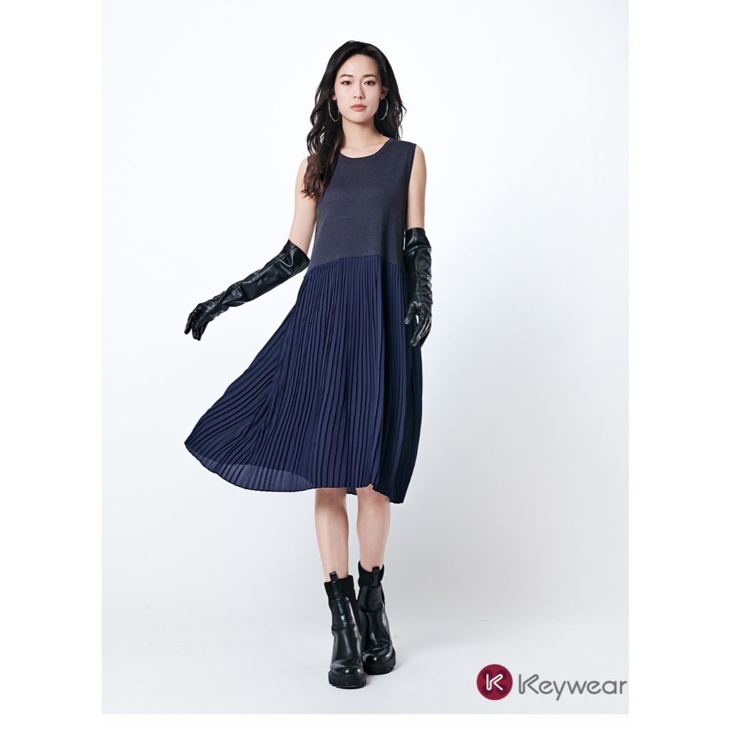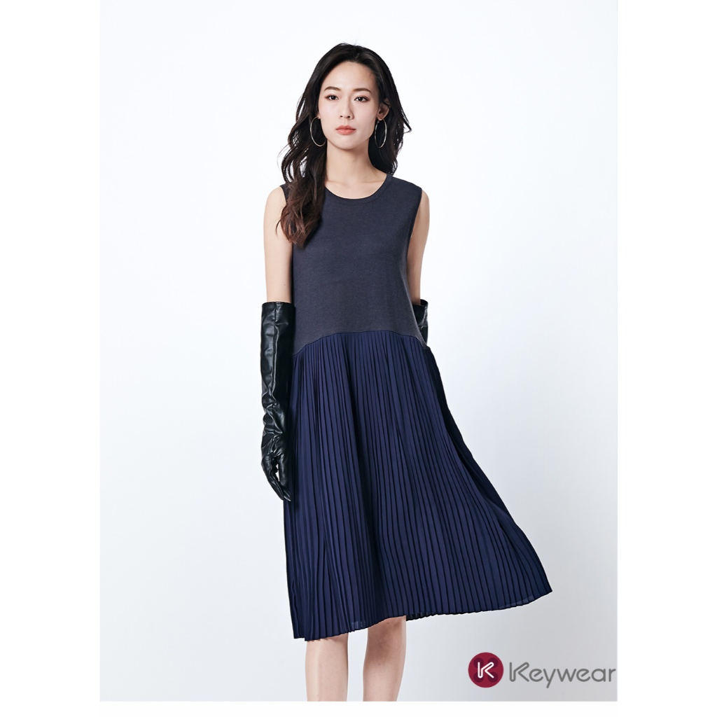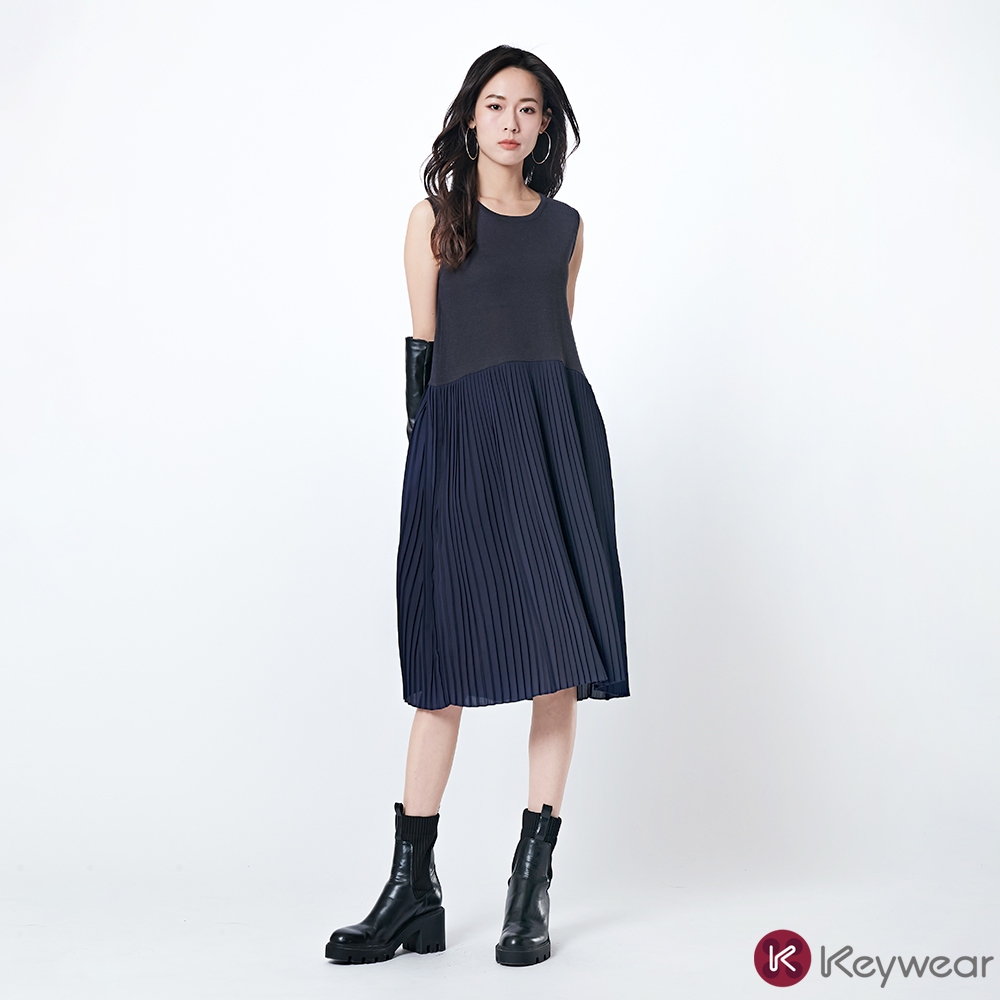 【KeyWear 奇威名品】百褶裙襬針織無袖洋裝 灰色M|LKeywear奇威官方旗艦店
