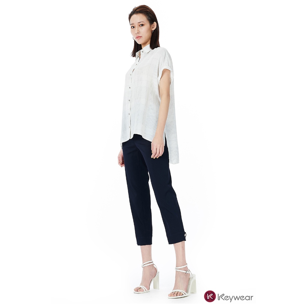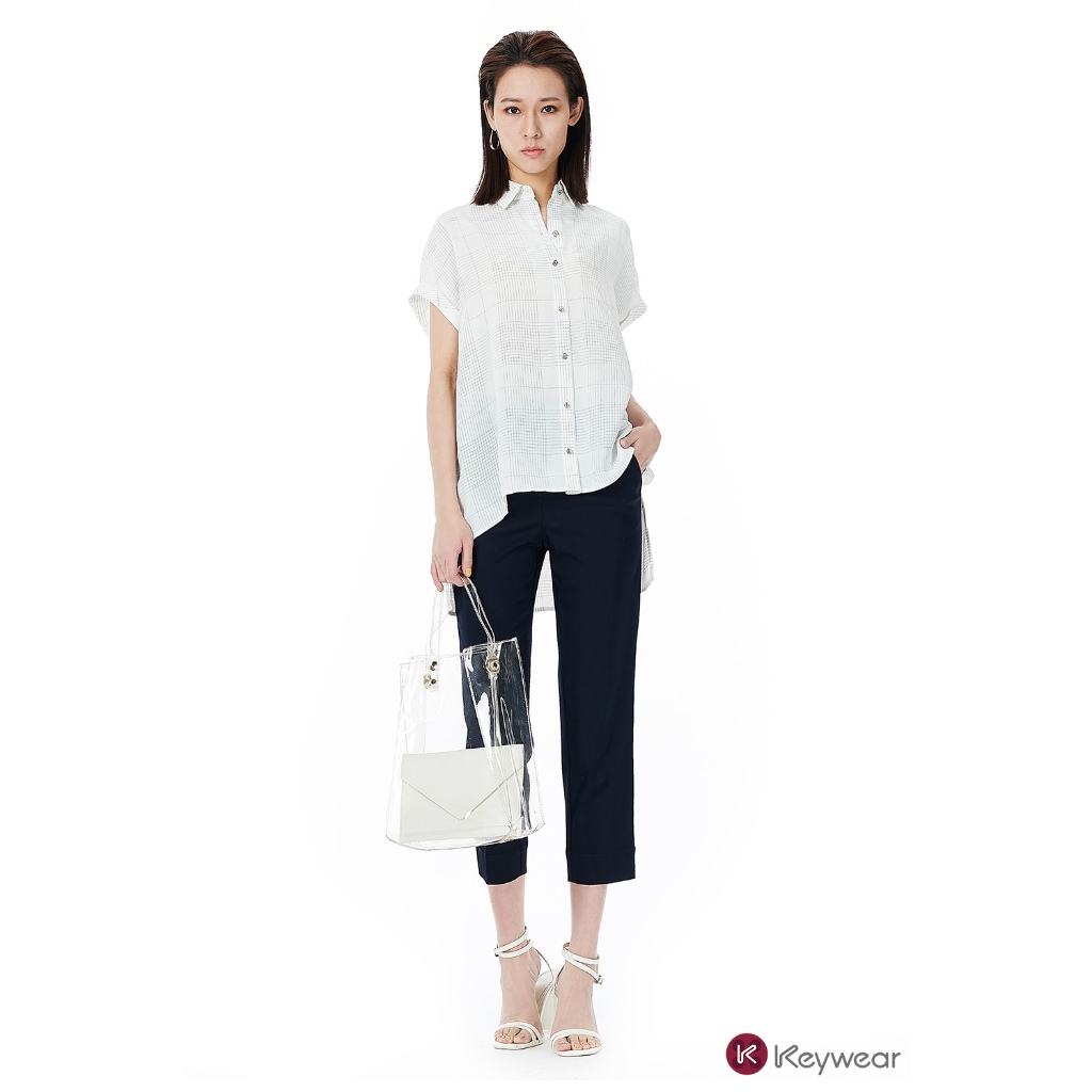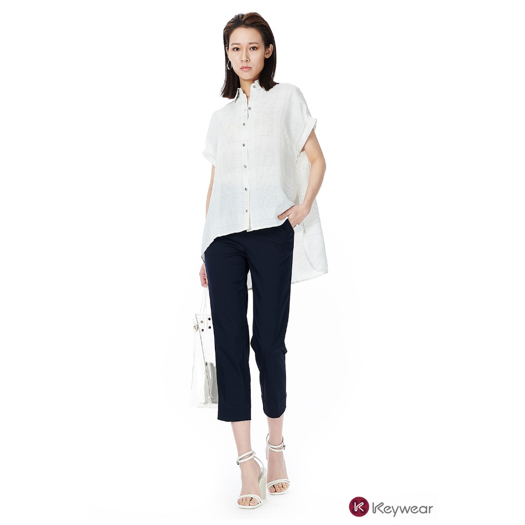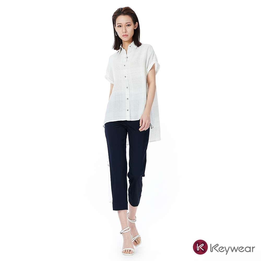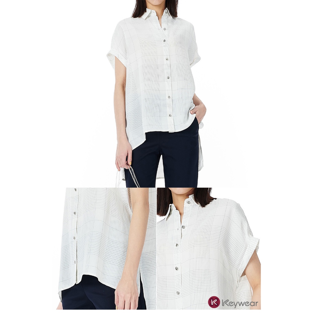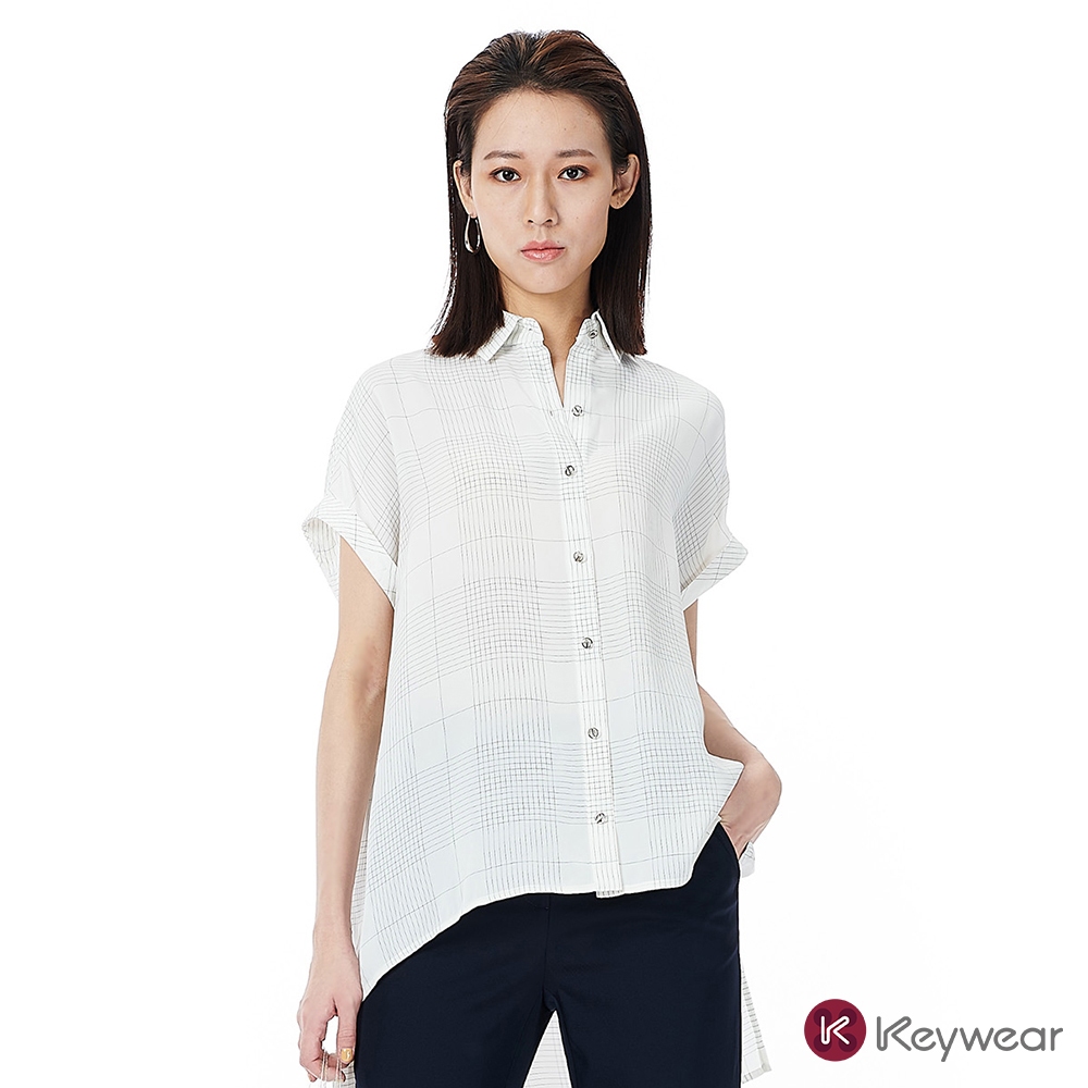 【KeyWear 奇威名品】百搭黑白格紋垂袖襯衫 白色S|M|LShirts & BlousesKeywear奇威官方旗艦店