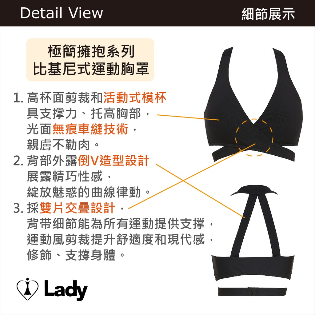 Lady 極簡擁抱系列 比基尼 素面 運動 內衣 (極簡黑)M|L|XL|XXLOthersLady內衣官方直營旗艦店