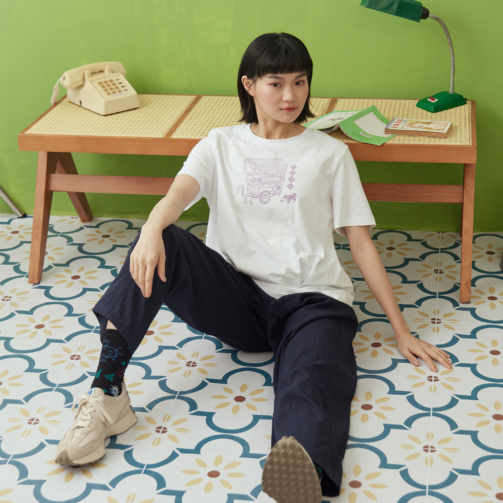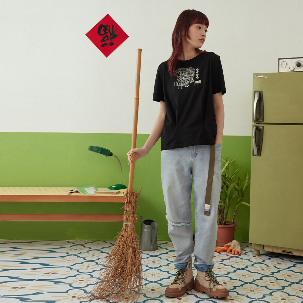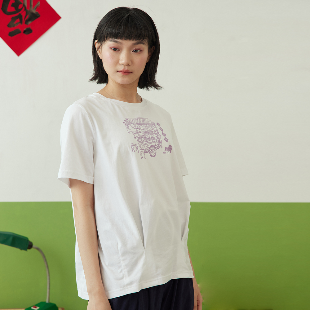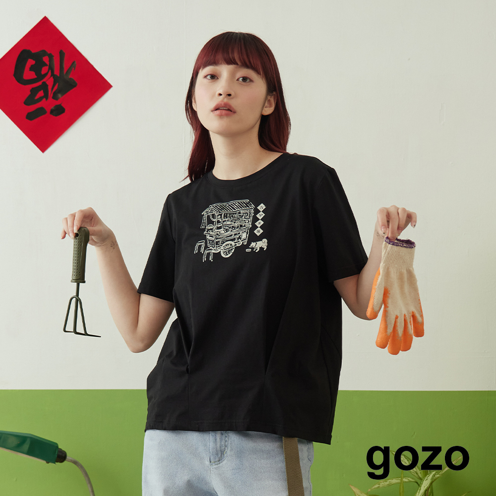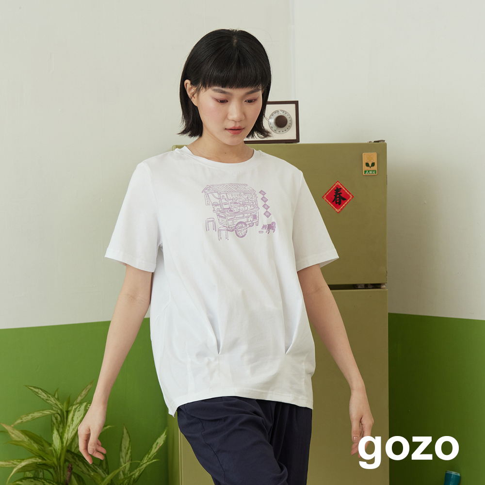 【gozo】➤手繪古早味餐車下擺收邊T恤(黑色/白色_M/L) | 女裝 圓領 休閒白色,L|黑色,M|黑色,L|白色,MT-shirtsgozo 品牌旗艦店