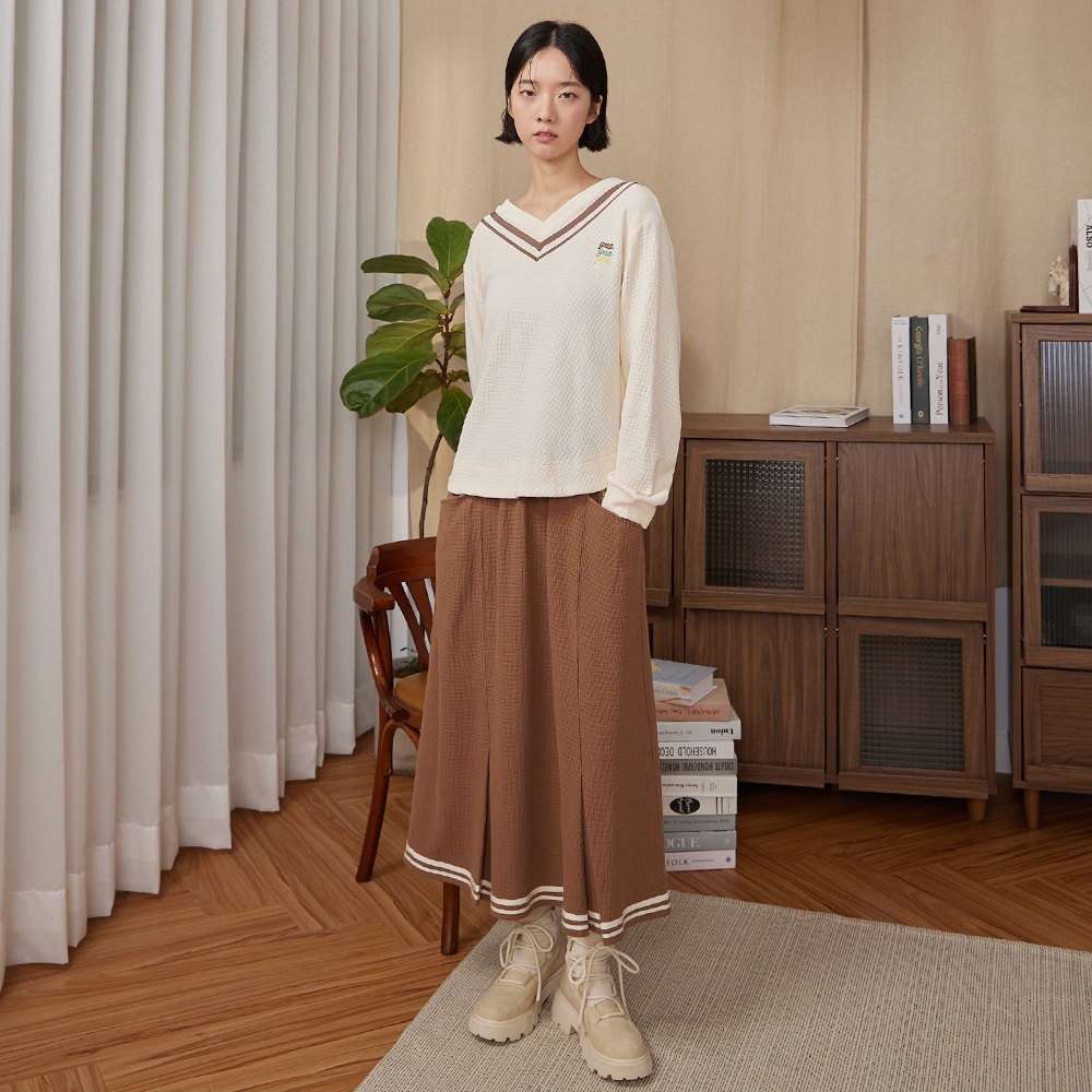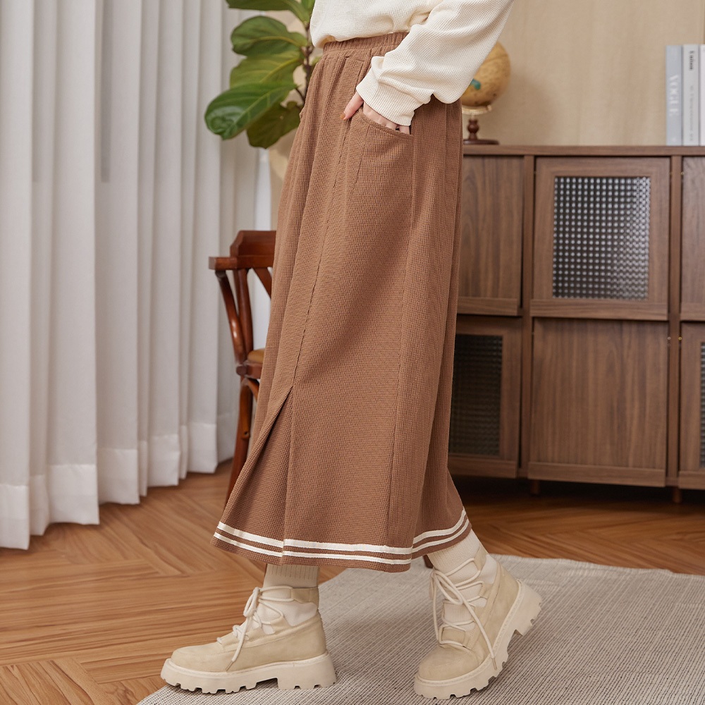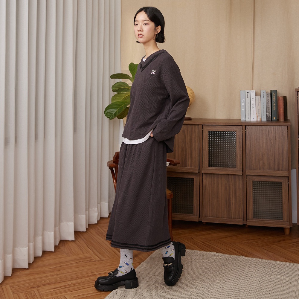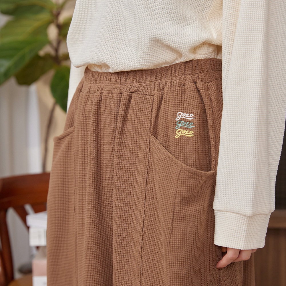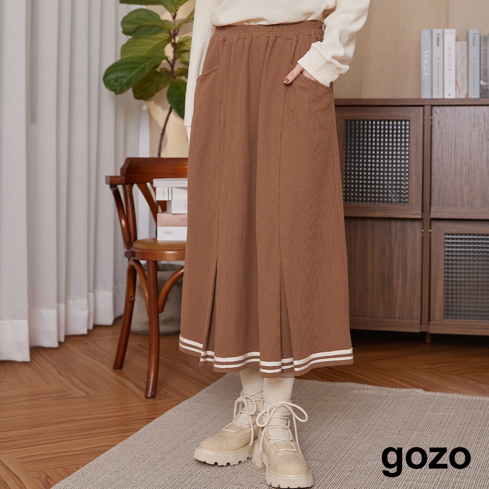 【gozo】gozo三次方華夫格學院風圓裙(深灰/咖啡_F) | 女裝 修身 百搭