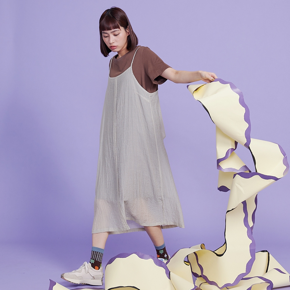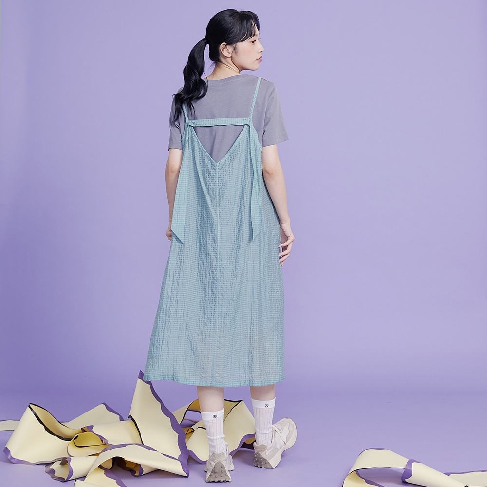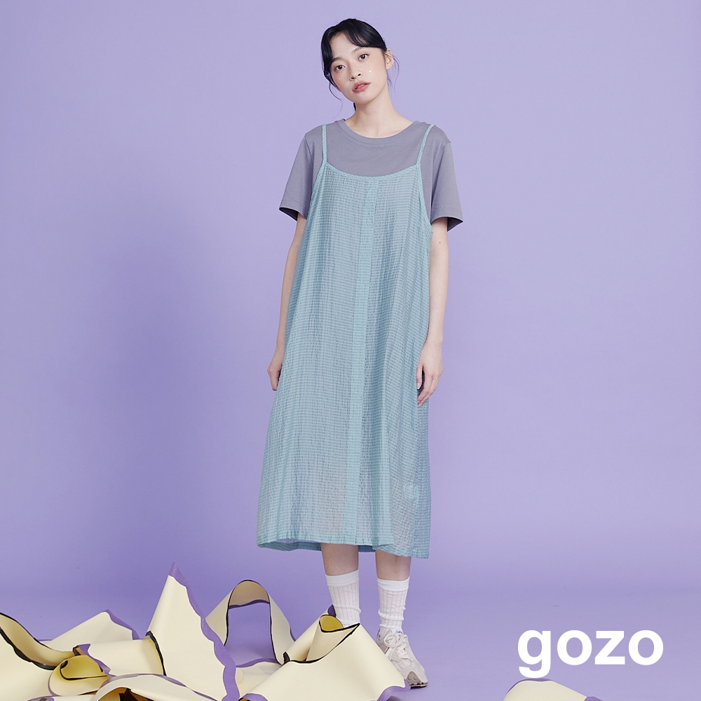 【gozo】涼感天絲透膚兩件式細肩帶洋裝(藍色/淺綠_F) | 女裝 修身 百搭藍色,F|淺綠,Fgozo 品牌旗艦店