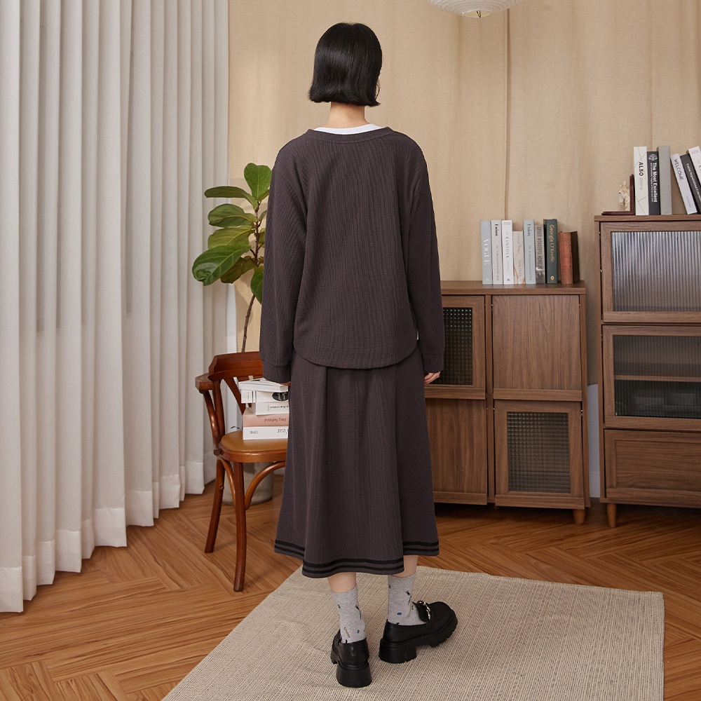 【gozo】gozo三次方華夫格學院風圓裙(深灰/咖啡_F) | 女裝 修身 百搭深灰,F|咖啡,Fgozo 品牌旗艦店