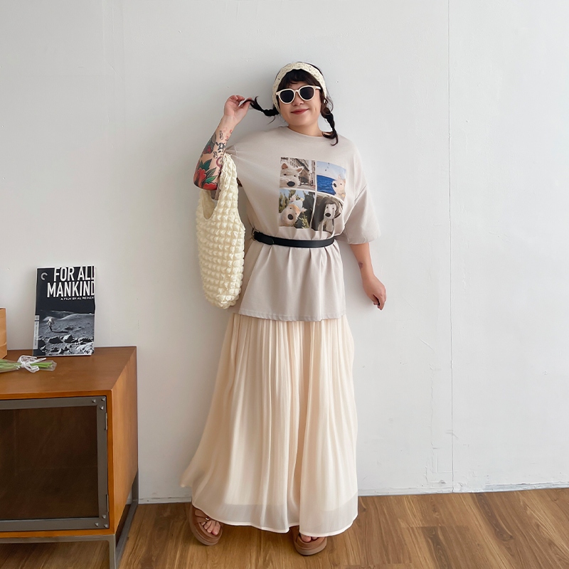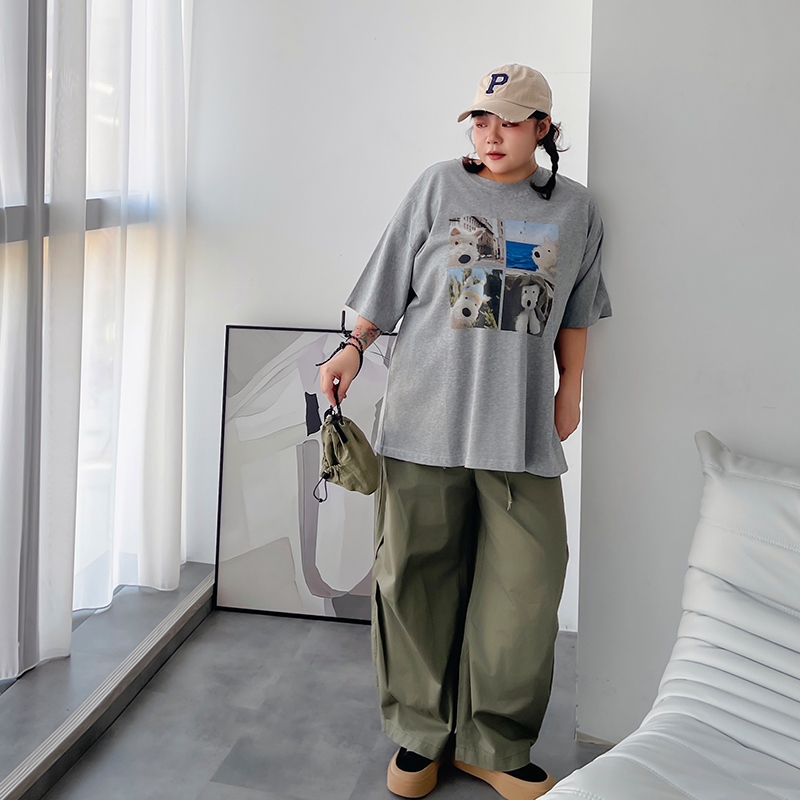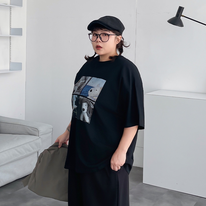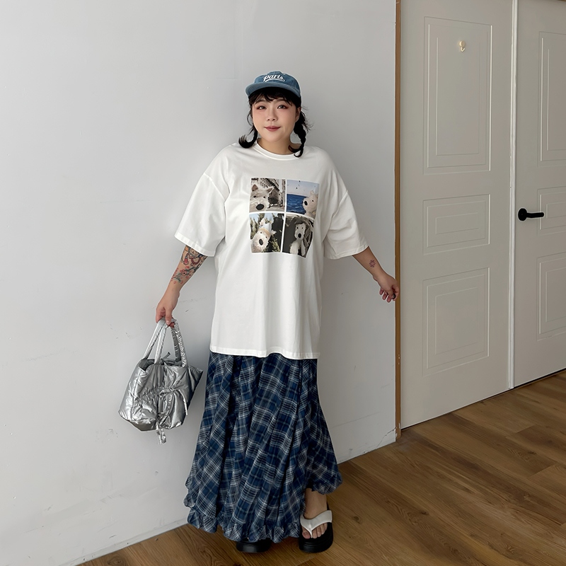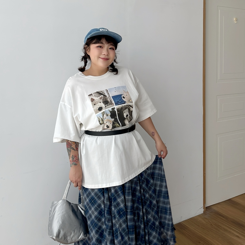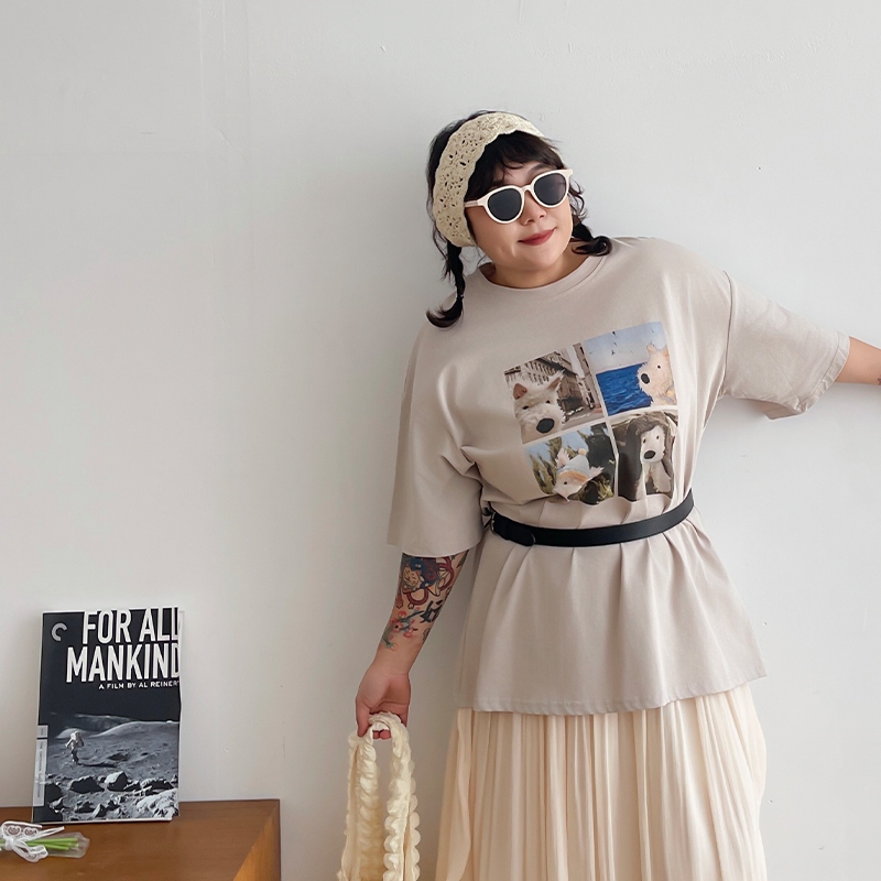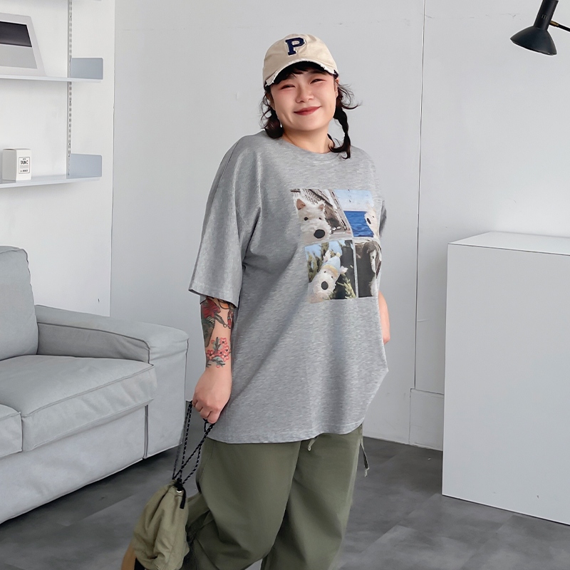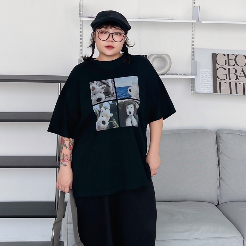 LULUS/PLUS/中大尺碼/布偶狗狗四宮格寬鬆T恤4色【A01250357】花灰|黑|白|奶灰T-shirtsLULUS