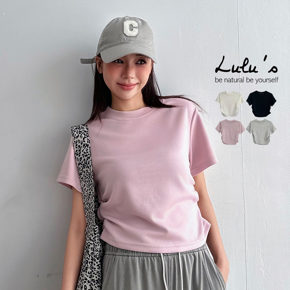 LULUS/側抓皺輕柔棉上衣4色【A01250426】250702花灰|粉|黑|白T-shirtsLULUS