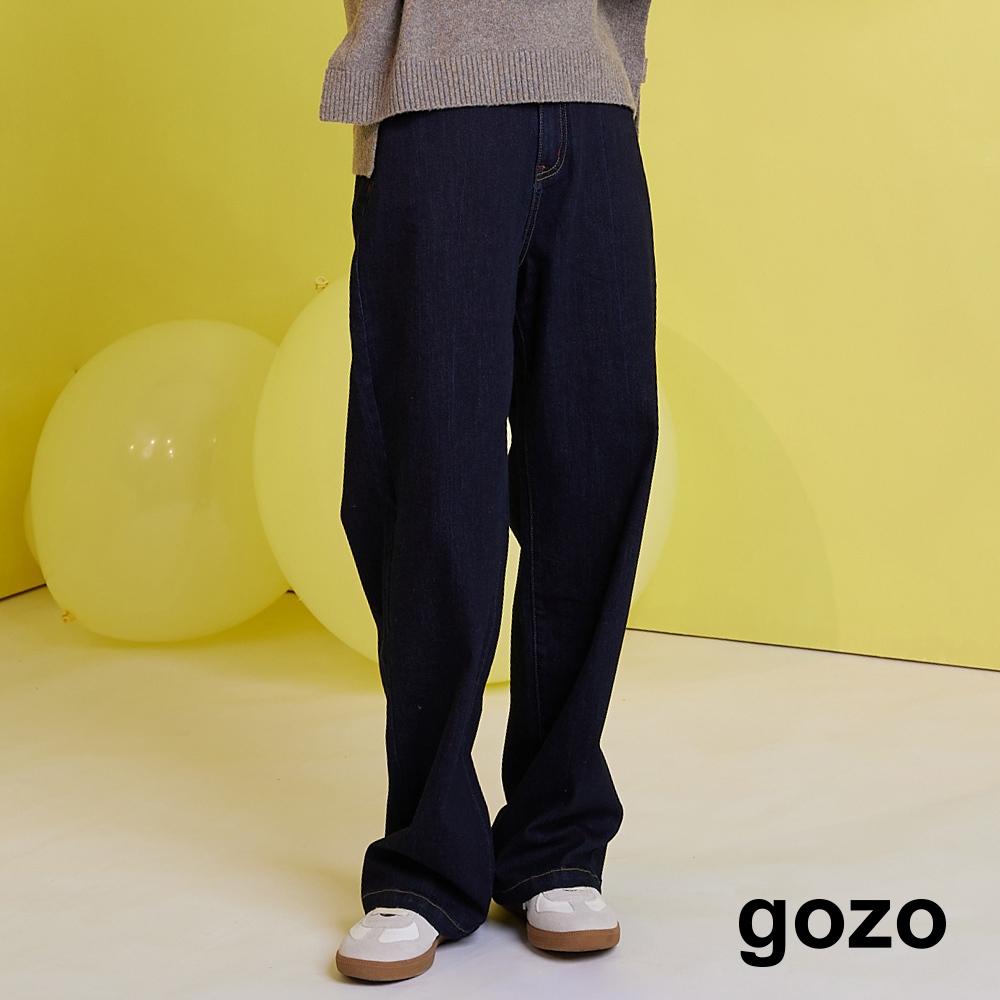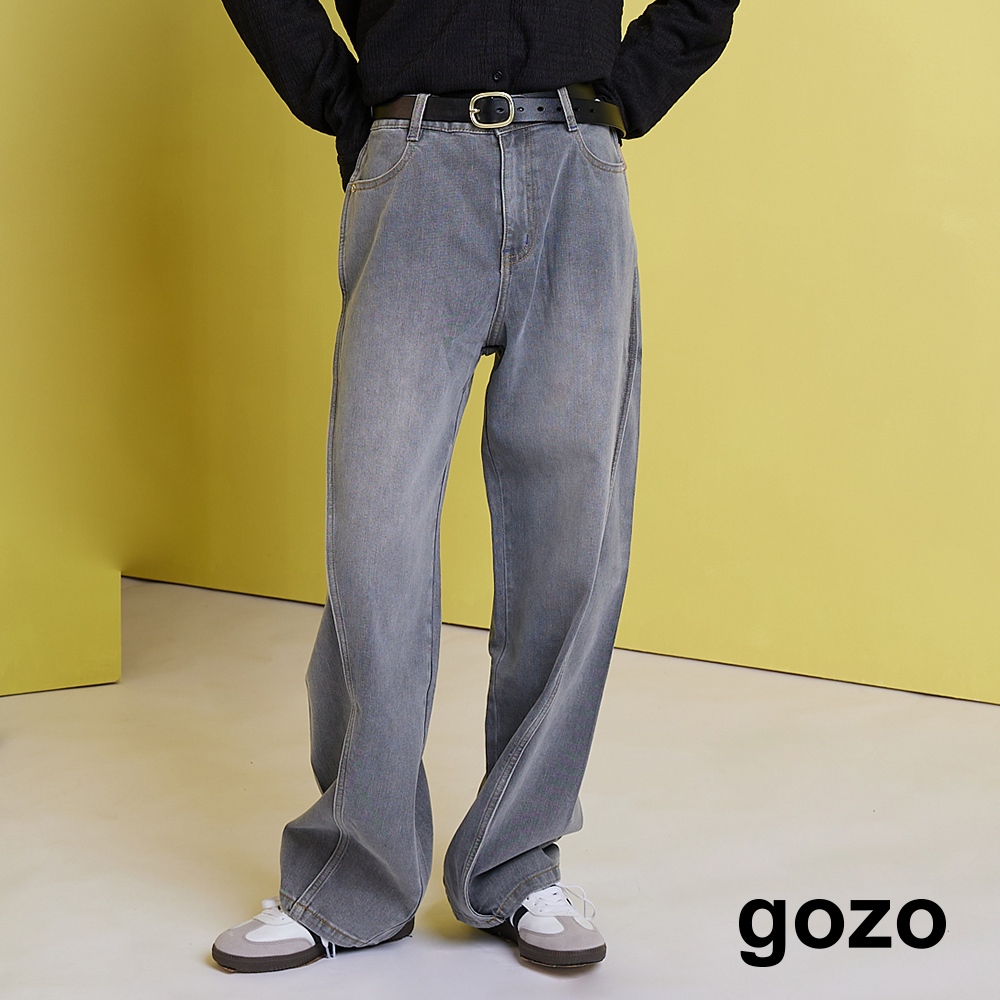 【gozo】壓印水洗彈性直筒牛仔褲(深藍/灰色_S/M/L) | 女裝 修身 休閒深藍,S|深藍,M|深藍,L|灰色,S|灰色,M|灰色,Lgozo 品牌旗艦店