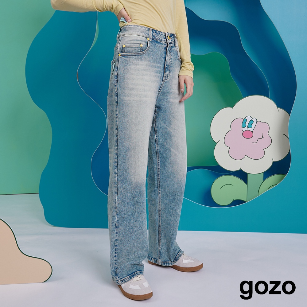 【gozo】gozoxKINGJUN蠢兔在口袋水洗直筒牛仔褲(藍色_S/M/L) | 女裝 顯瘦 百搭 牛仔褲藍色,S|藍色,M|藍色,Lgozo 品牌旗艦店
