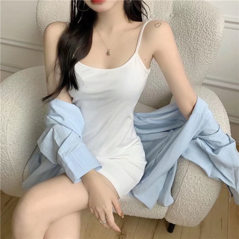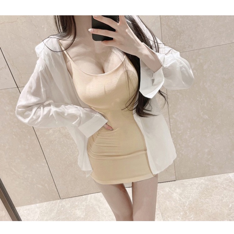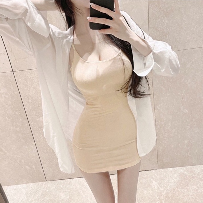 細肩夏天洋裝 貼身連身裙 女生夏天洋裝 低胸性感洋裝 百搭包臀收腰吊帶連衣裙 062905黑|白(淺色會微透)|杏(淺色會微透)LeenaSui ~台灣賣家 隔日到貨